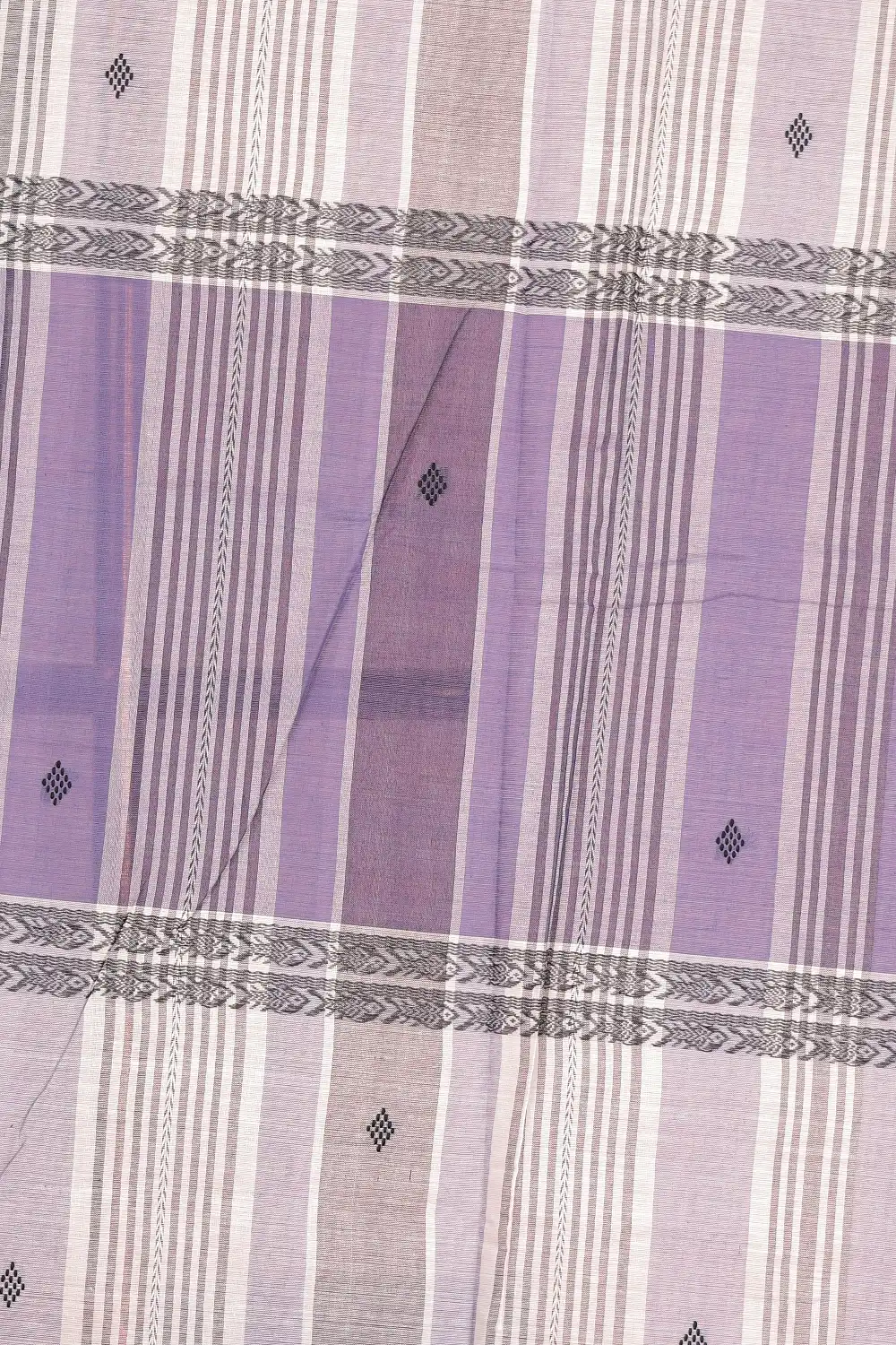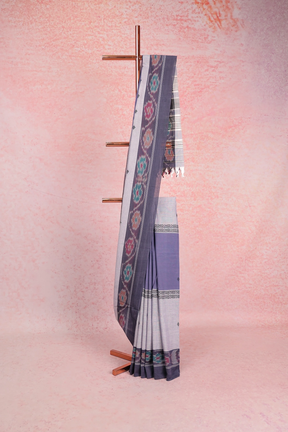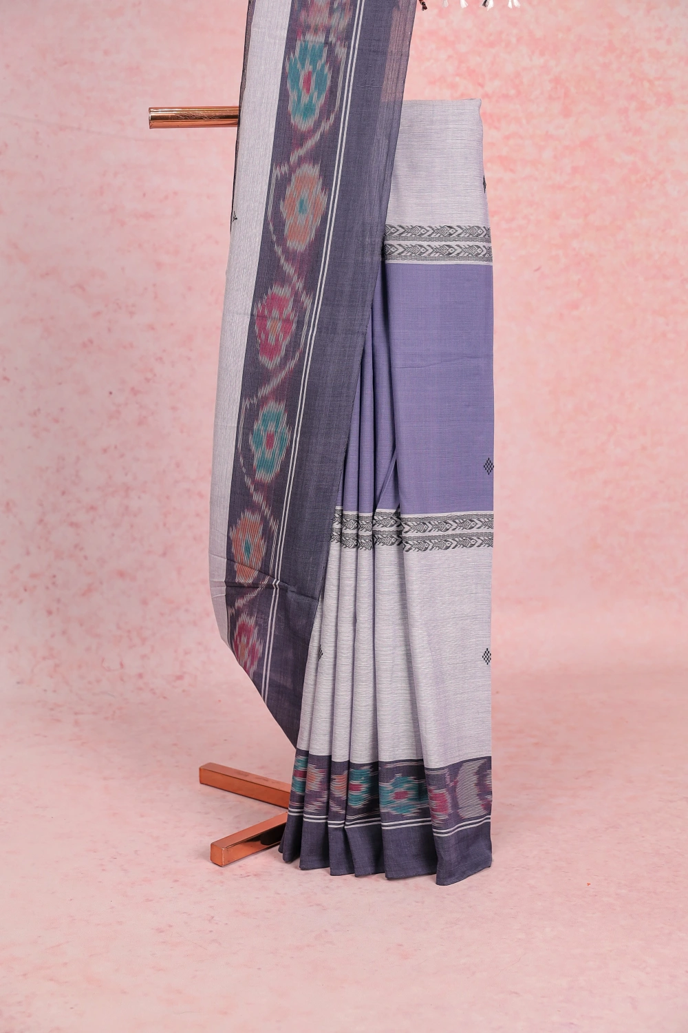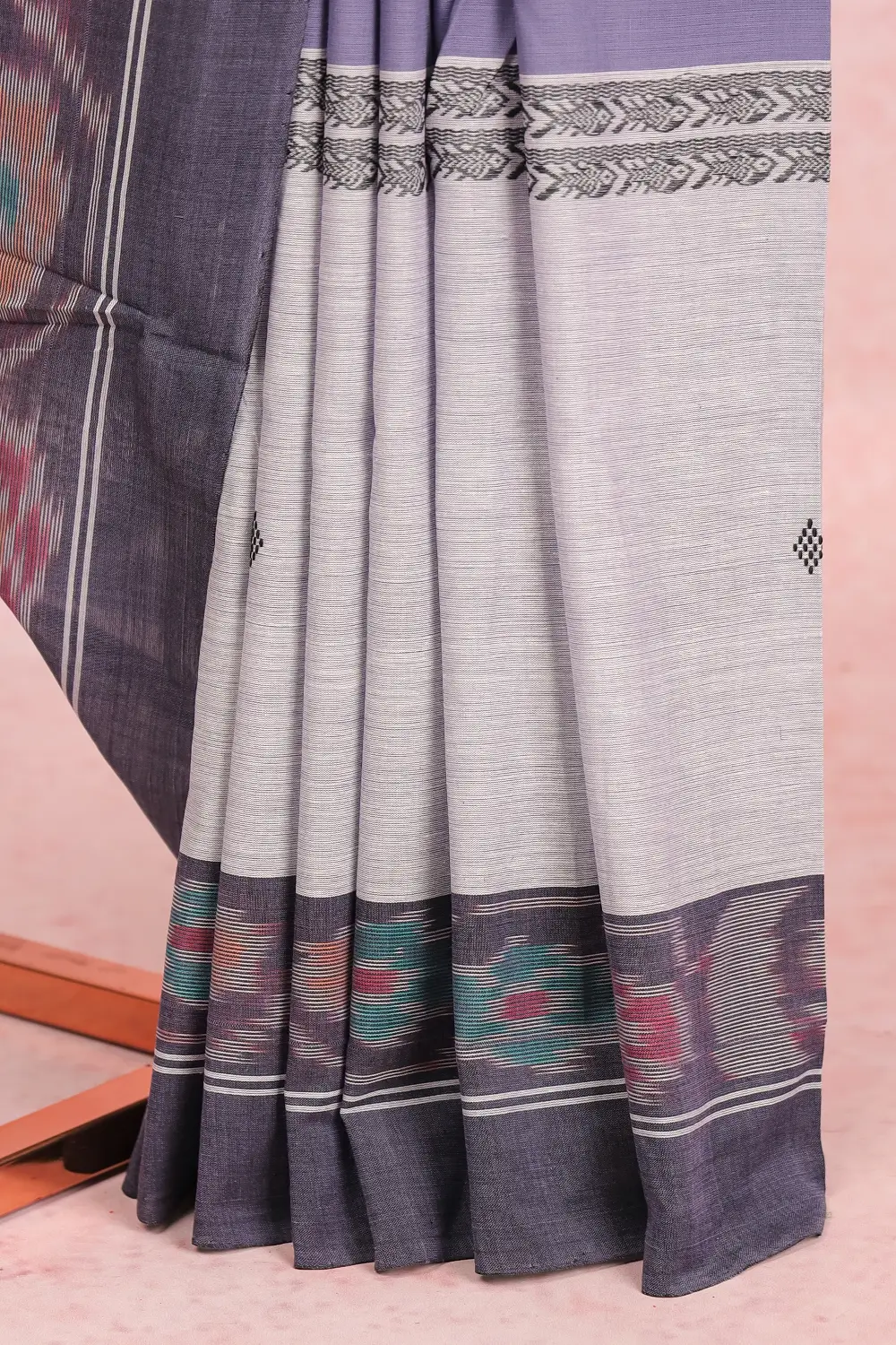 Ash And Blue Linen Cotton Butta Saree With Thread Border. Includes Unstitched Blouse