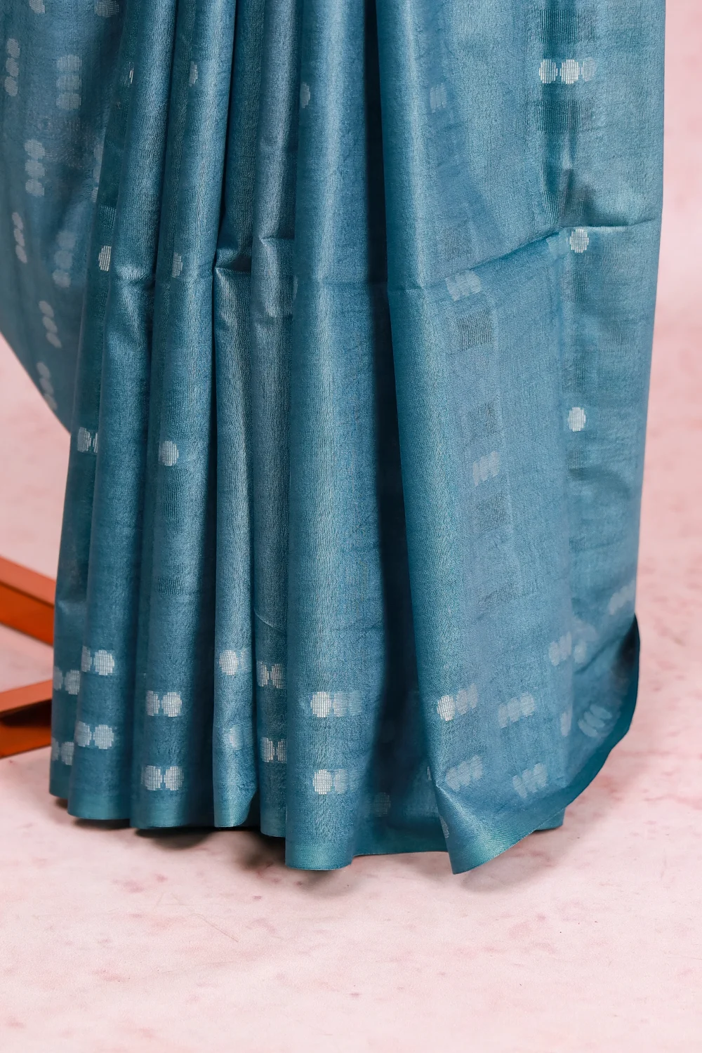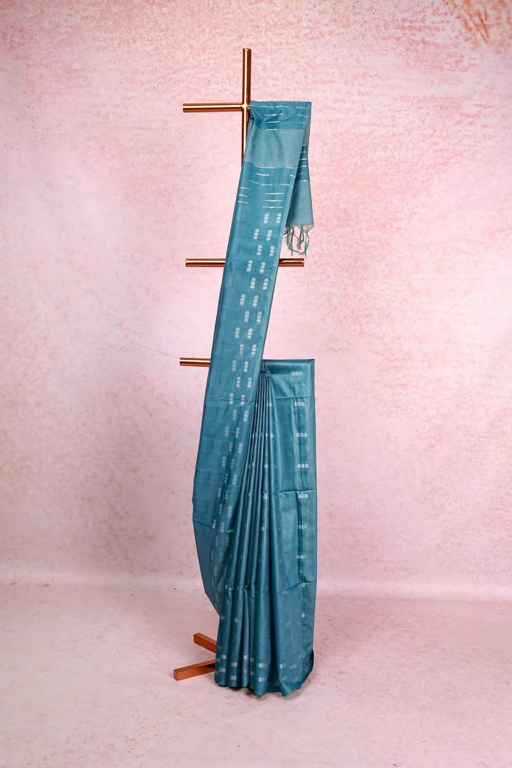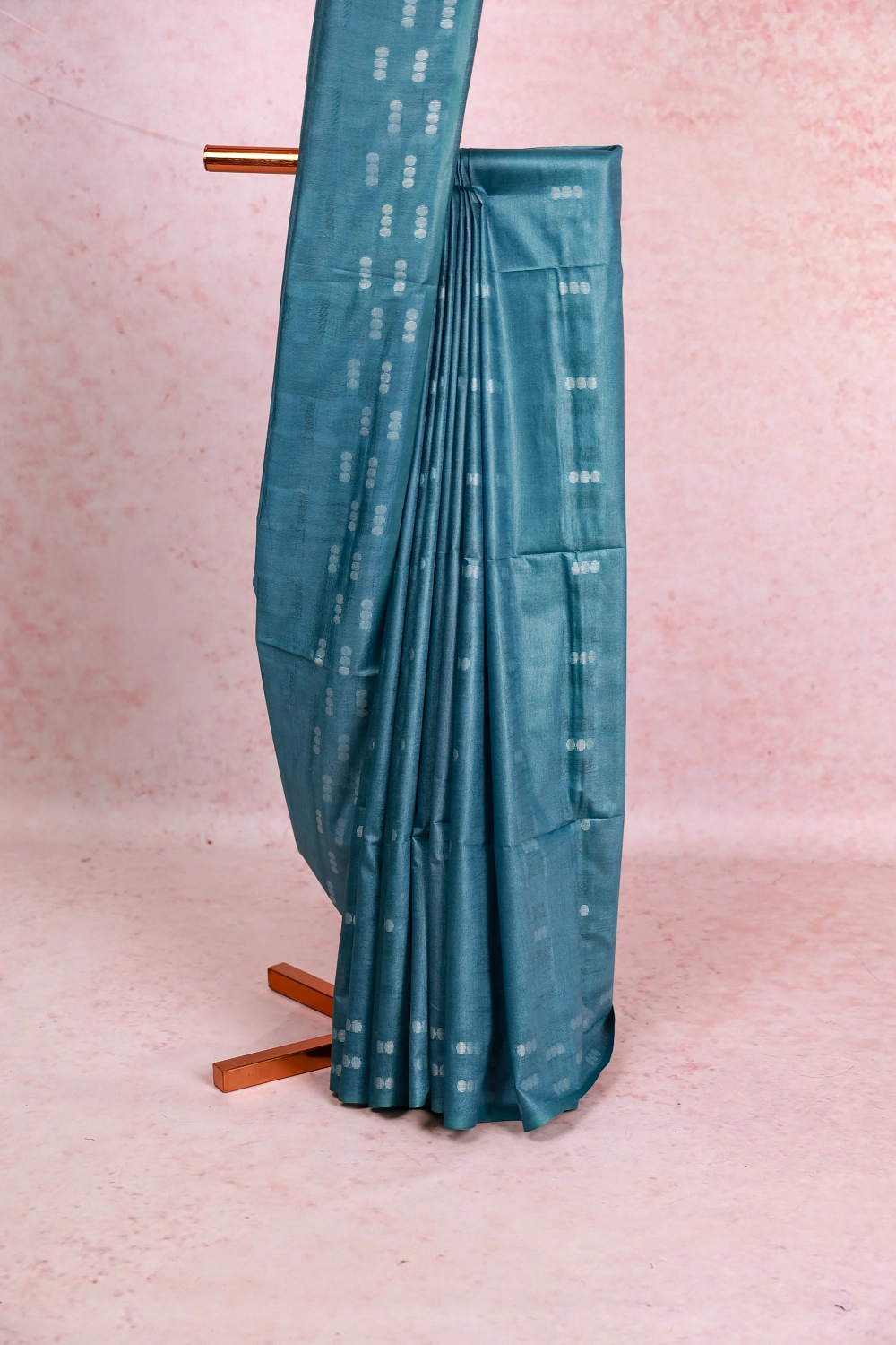 Ash Blue Semi Tussar Butta Saree With Without Border. Includes Un Stitched Blouse