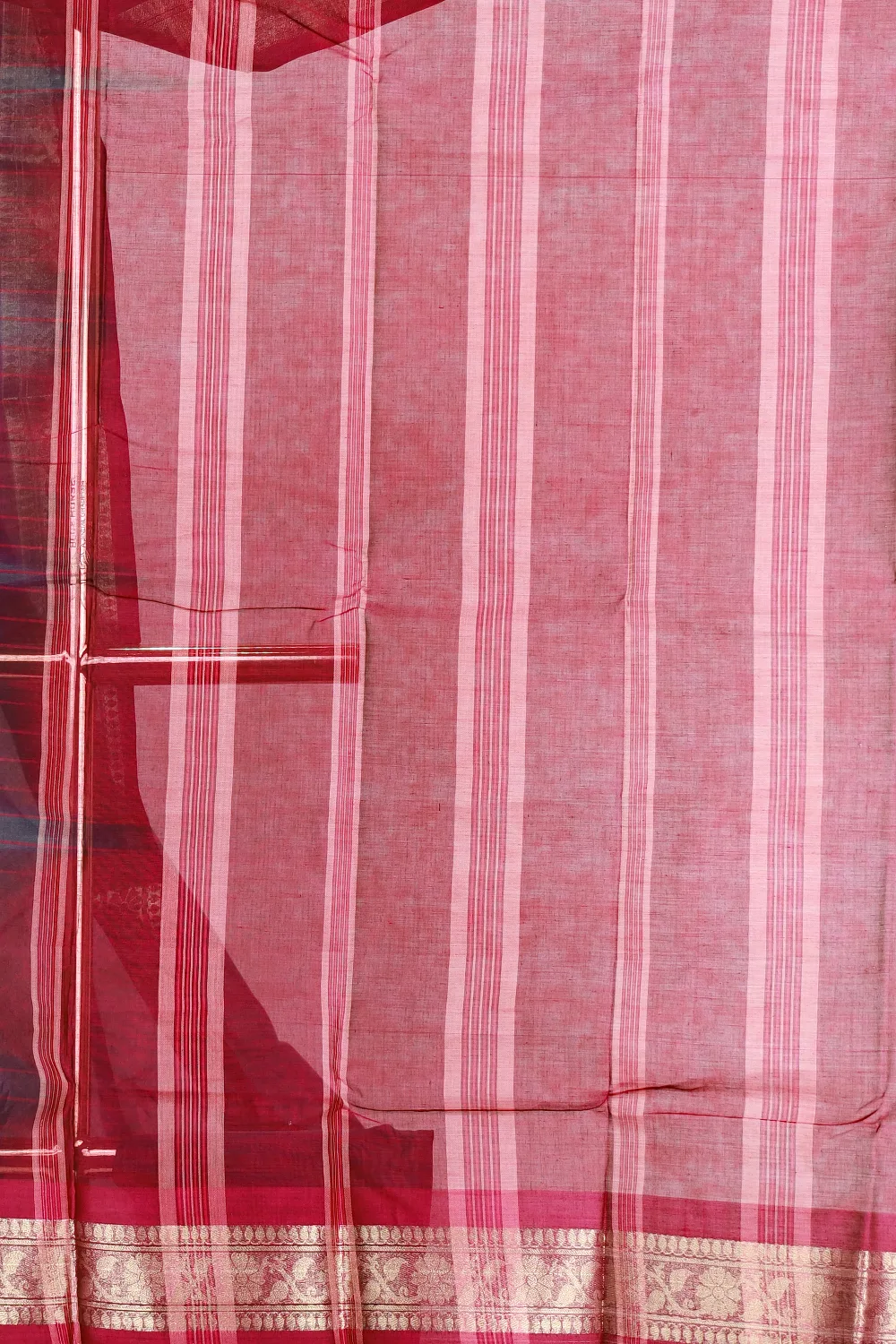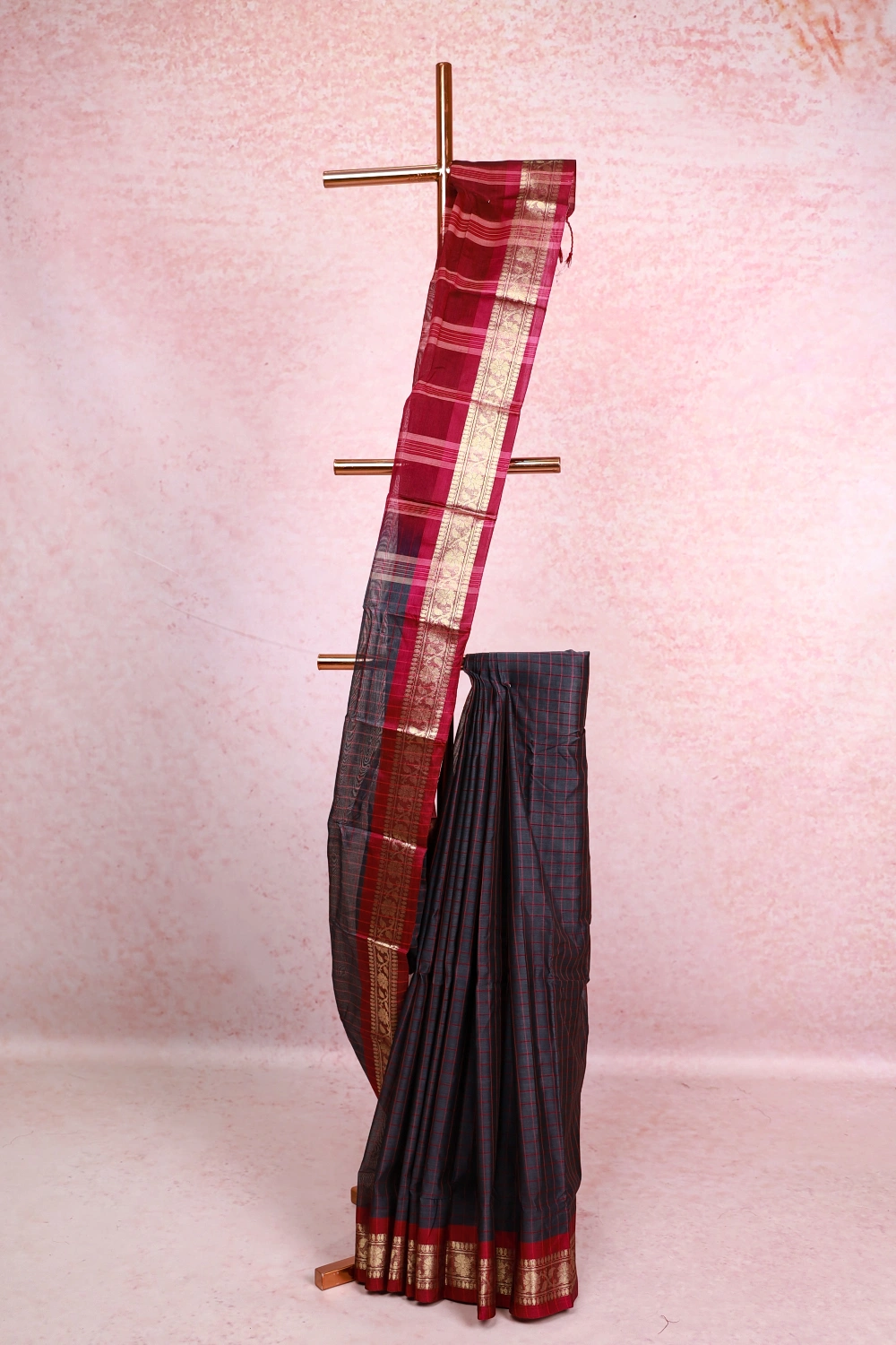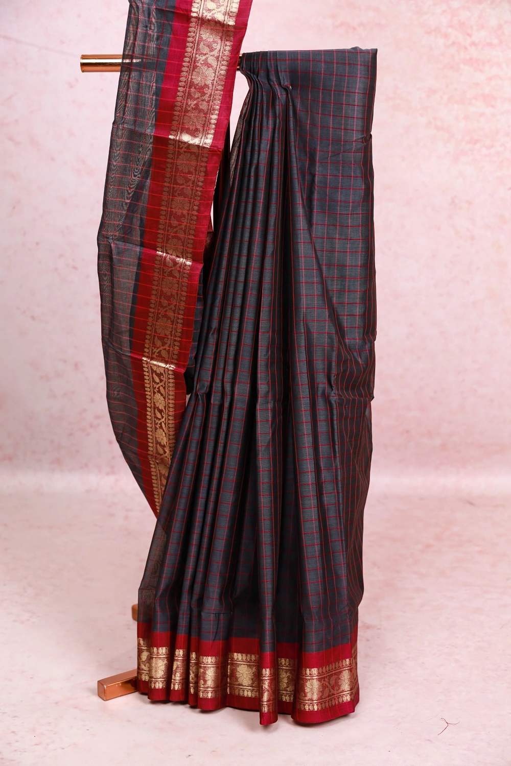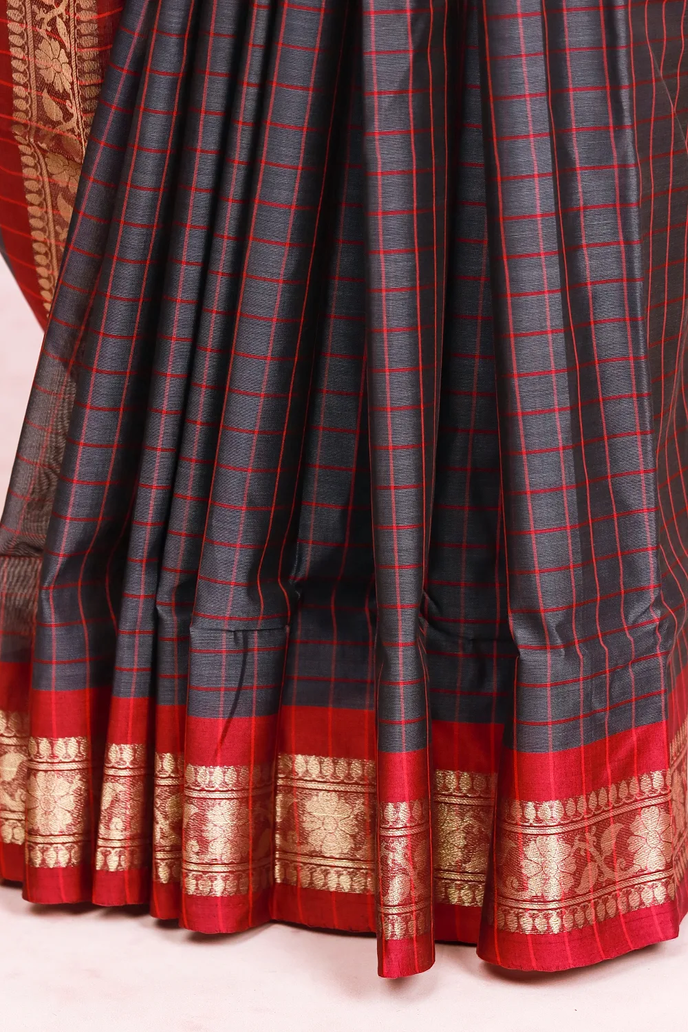 Ash Cotton Check Saree With Designer Border. Includes Un Stitched Blouse