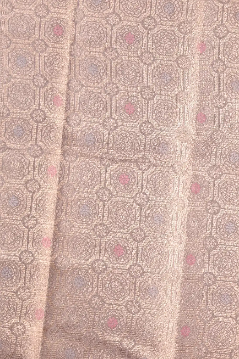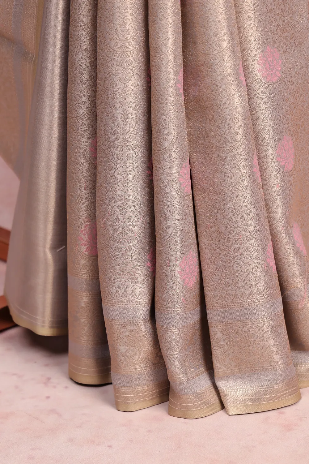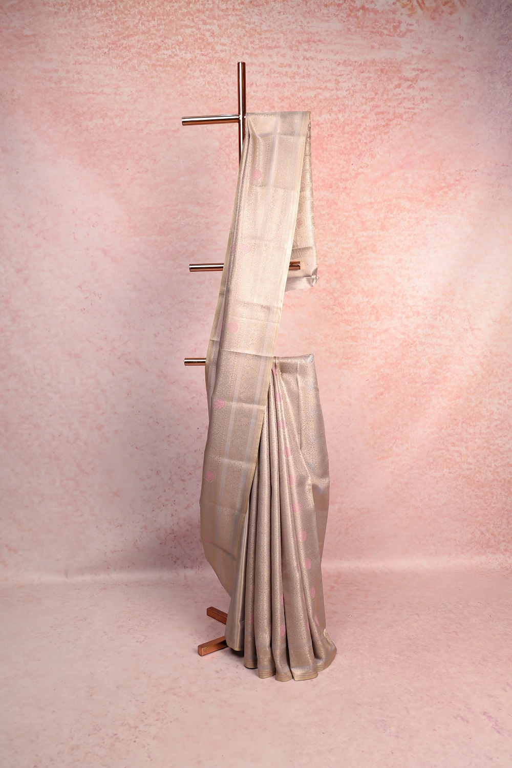 Ash Kancheepuram Semi Tissue Silk Brocade Saree with Designer Border. Includes Unstitched Blouse