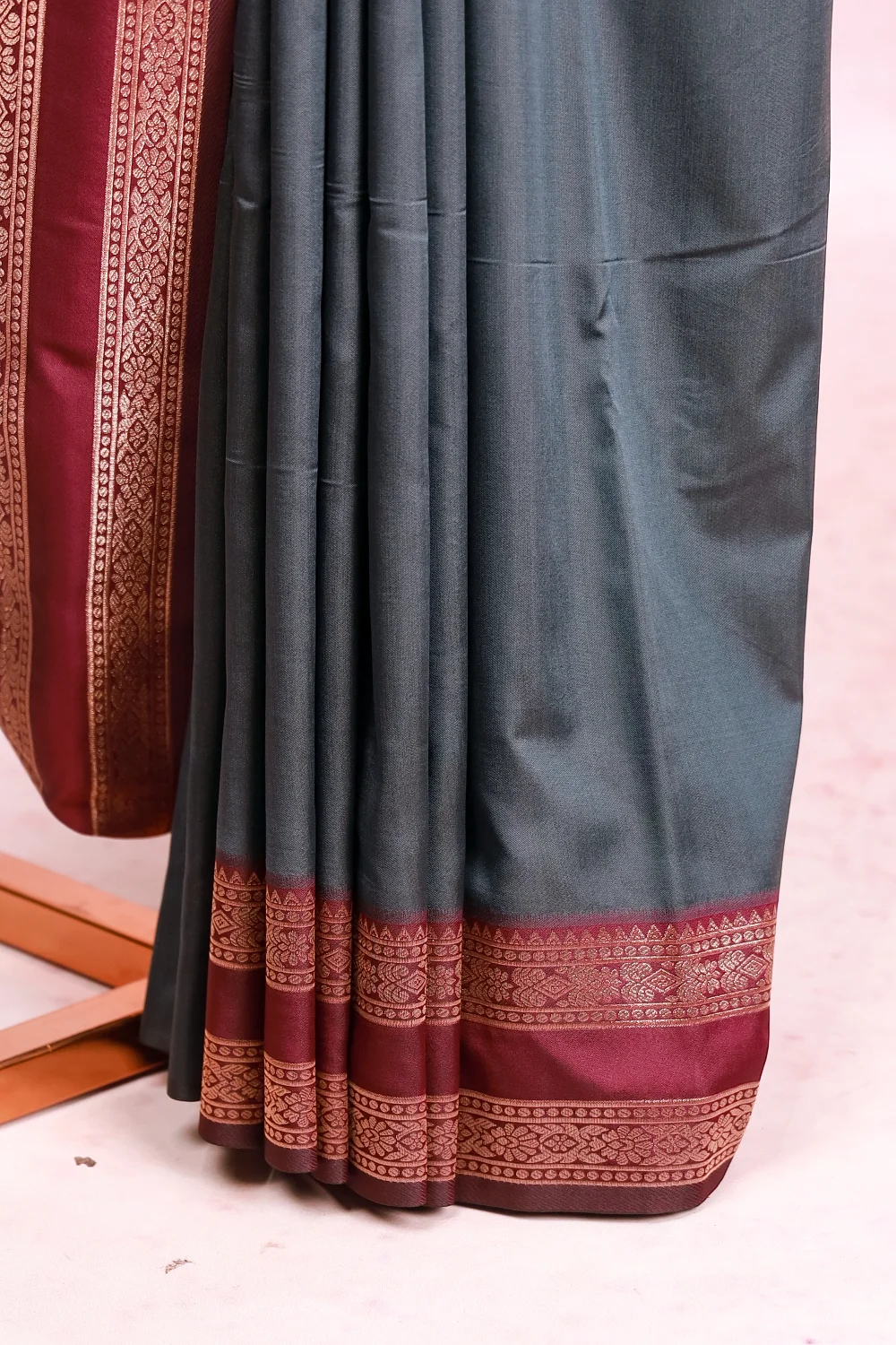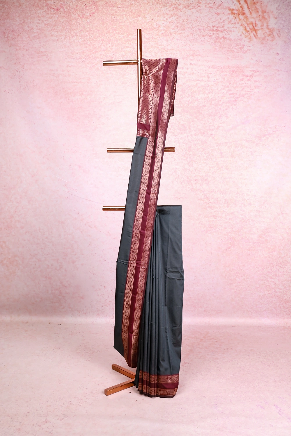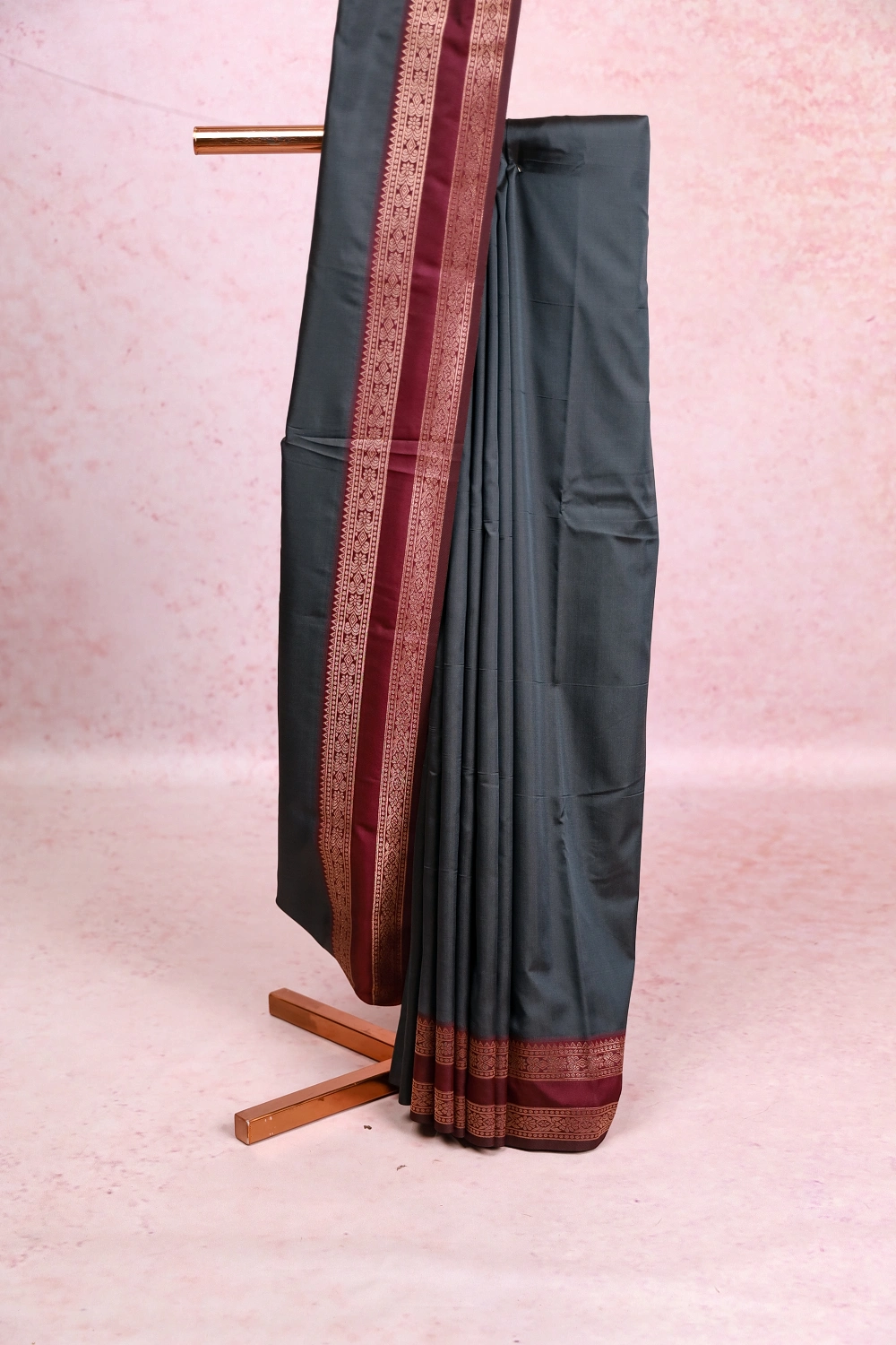Ash Semi Silk Plain Body Saree With Designer Border. Includes Un Stitched Blouse