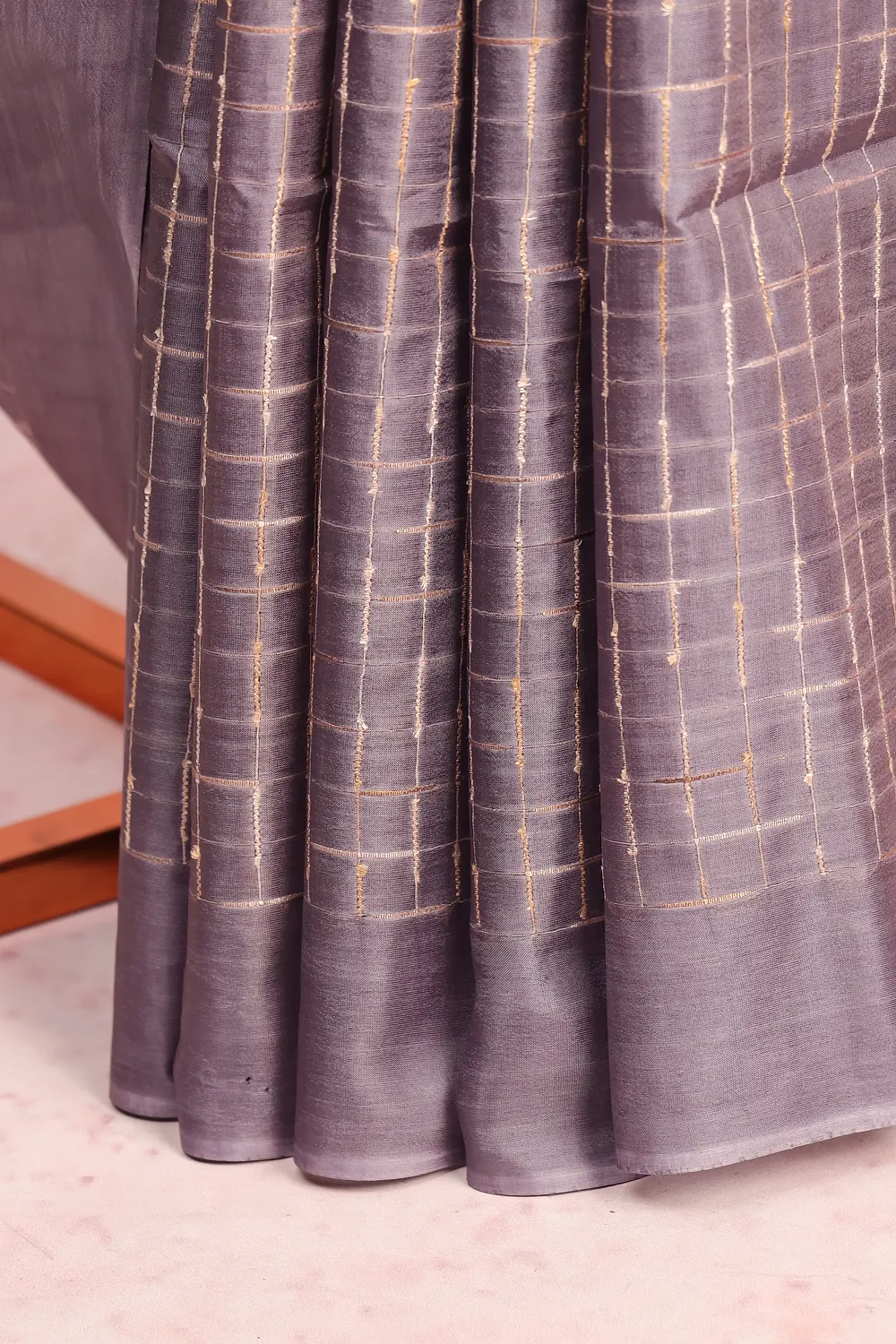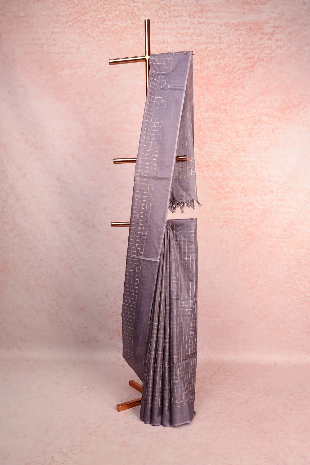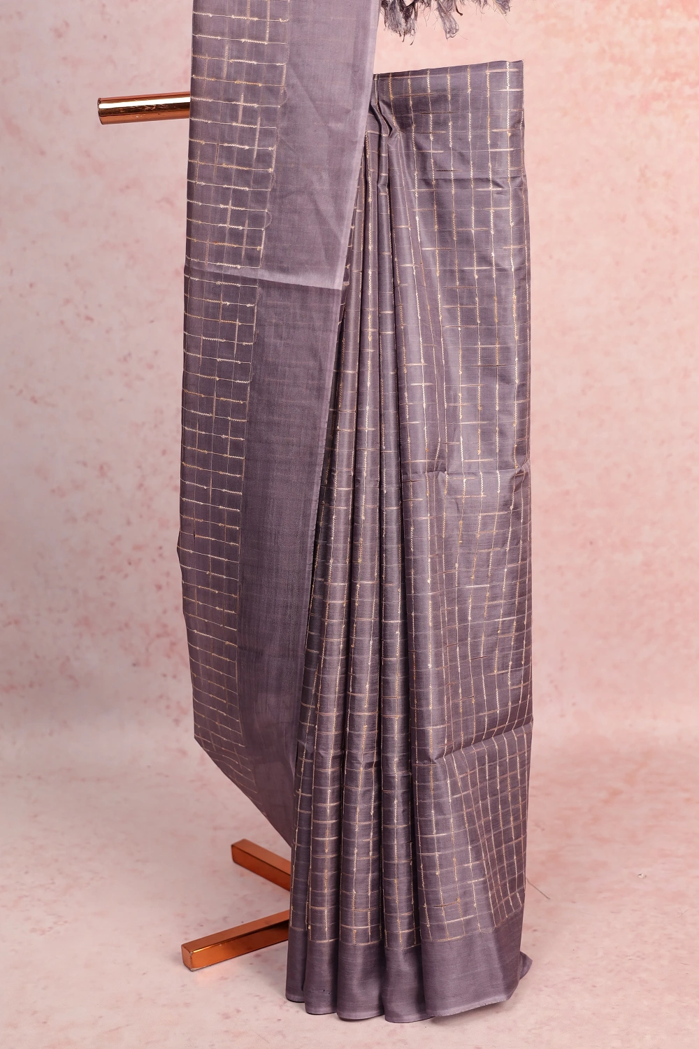 Ash Semi Tussar Check Saree with Without Border. Includes Un stitched Blouse