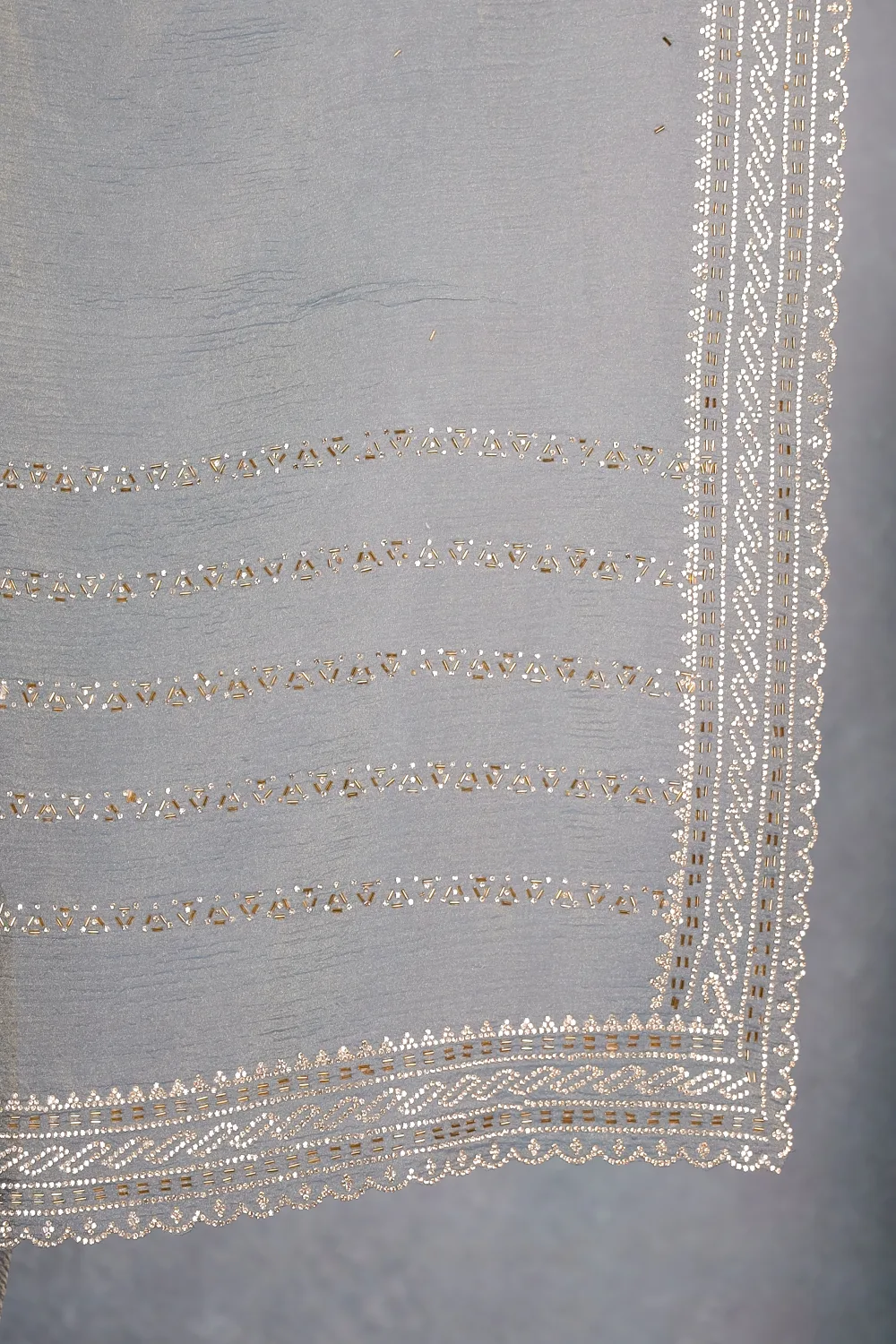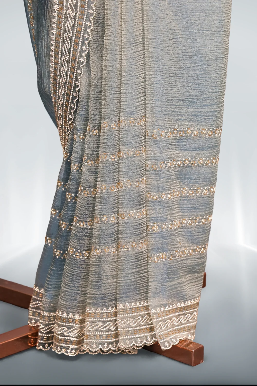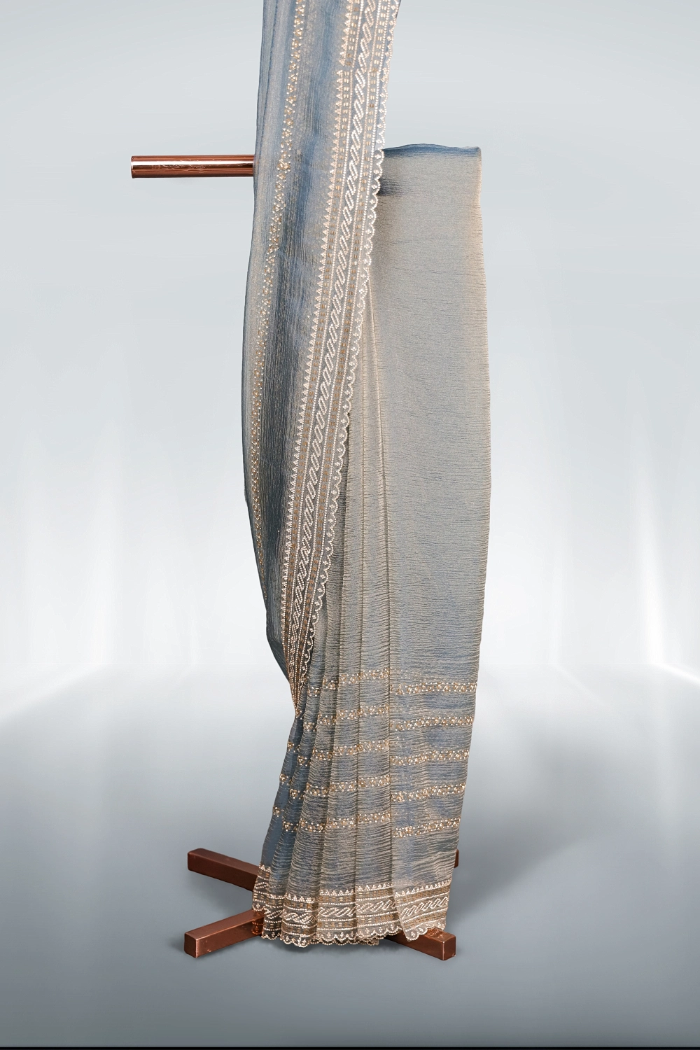 Ash Tissue Organza Plain Saree With Scallop Border. Includes Un Stitched Blouse