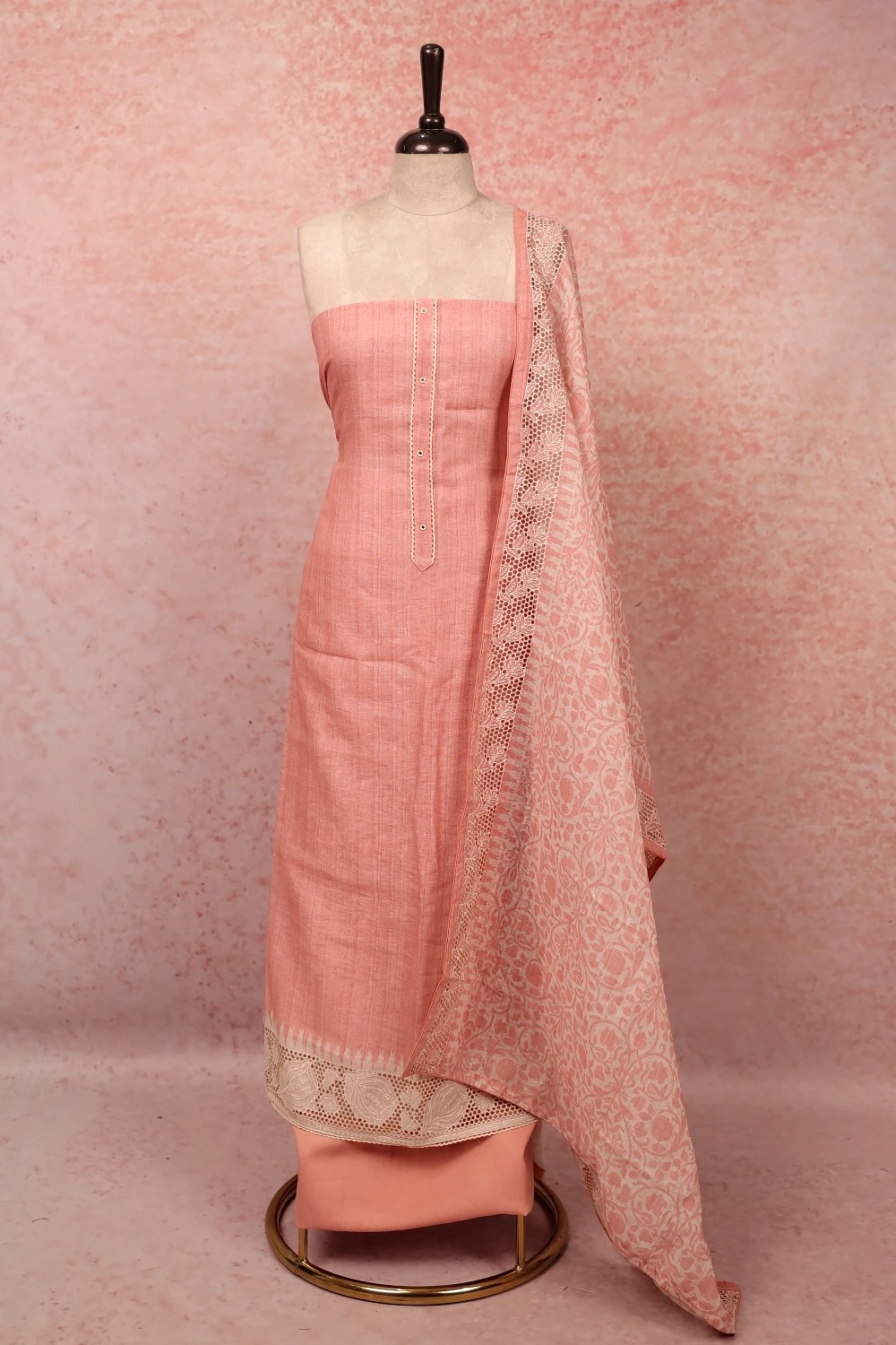 Baby Pink Linen Plain Body Unstitched Churidar Material. Includes Dupatta.