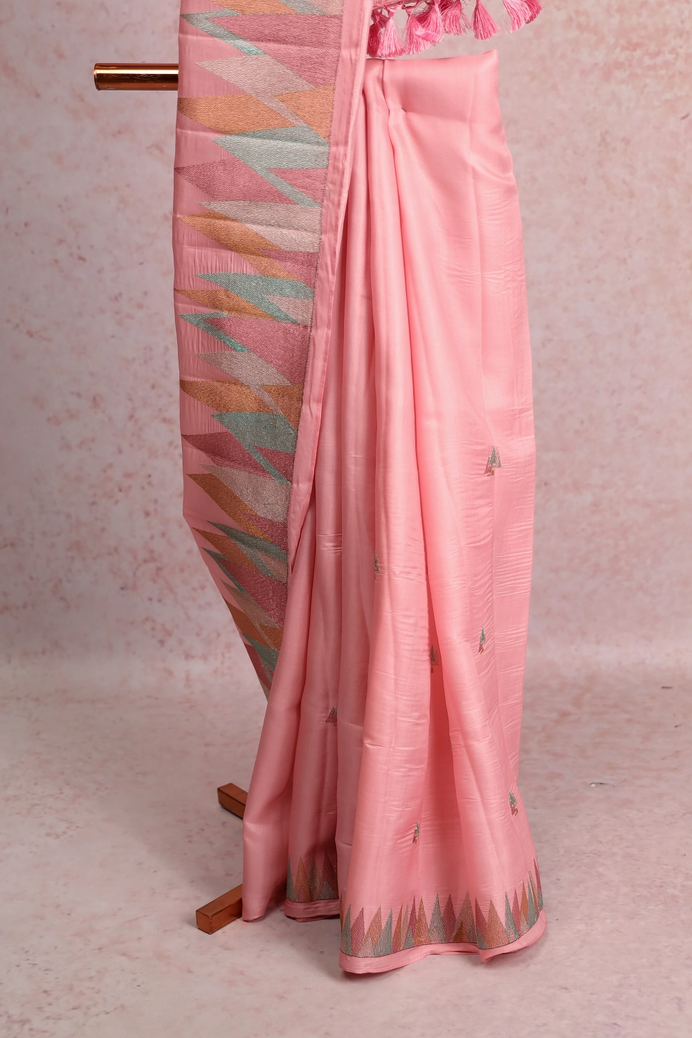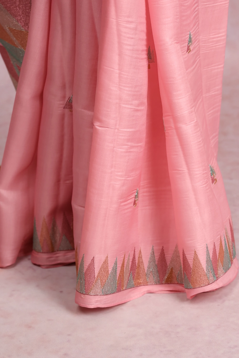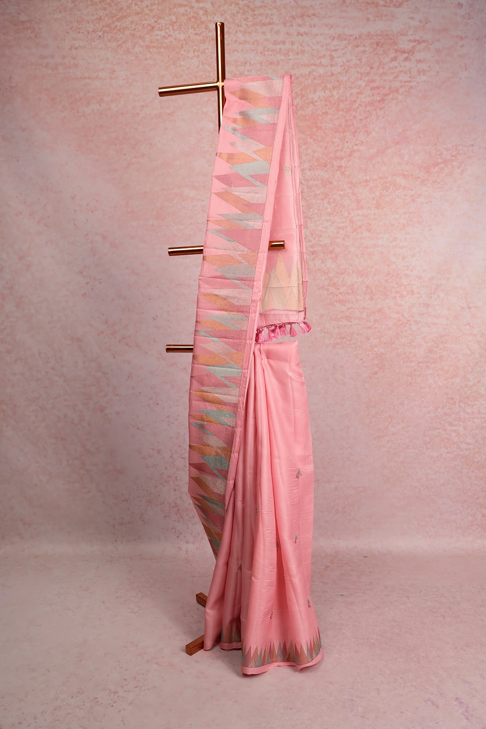Baby Pink Semi Tussar Geometrical Design Saree With Thread Border. Includes Un Stitched Blouse