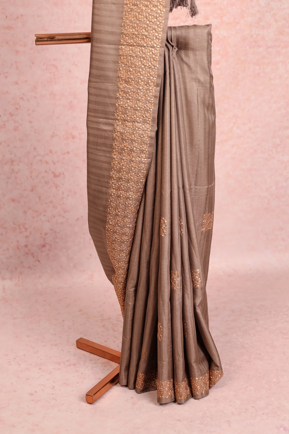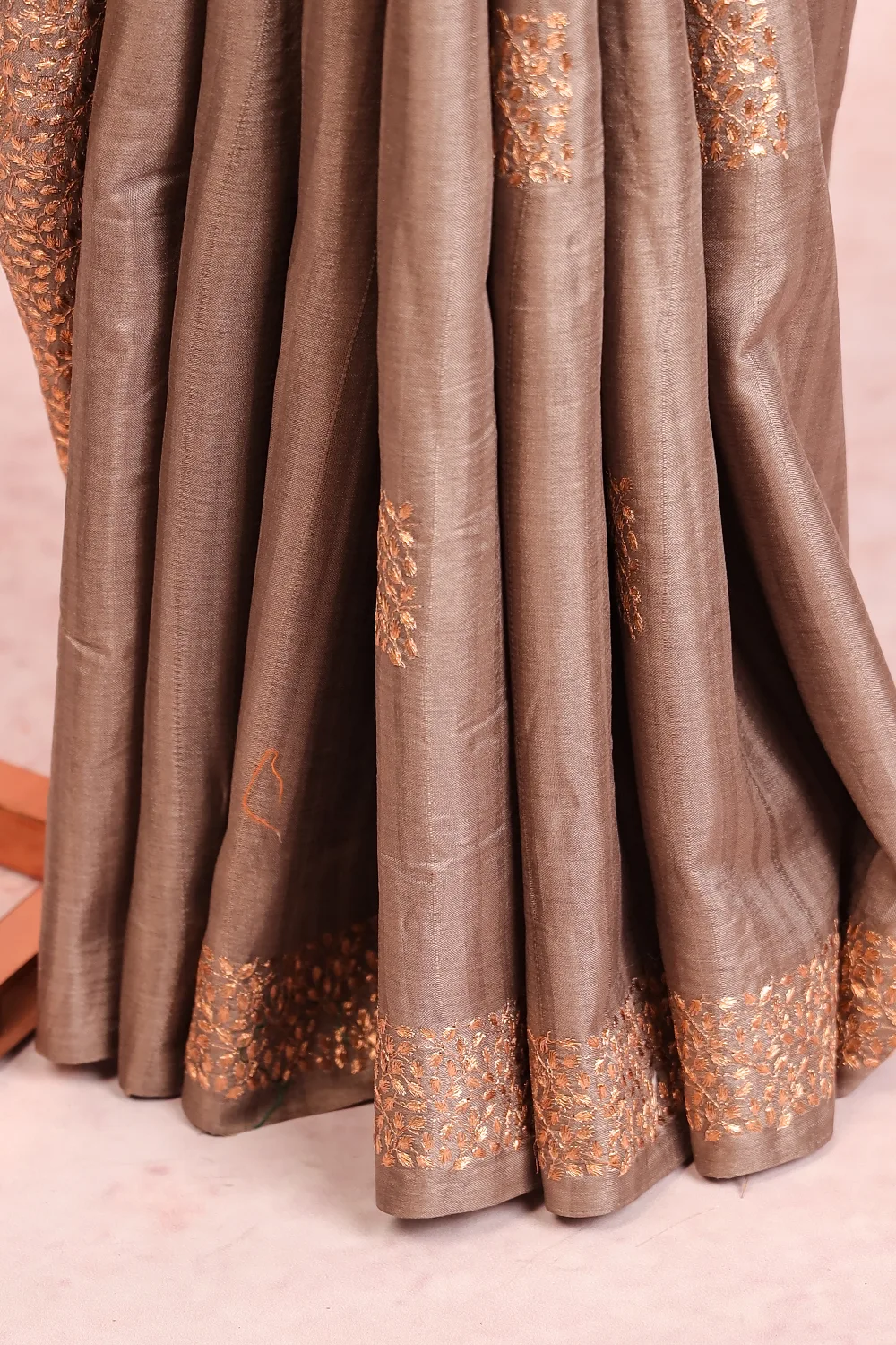 Biscuit Color Semi Tussar Box Design Saree with Designer Border. Includes Unstitched Blouse