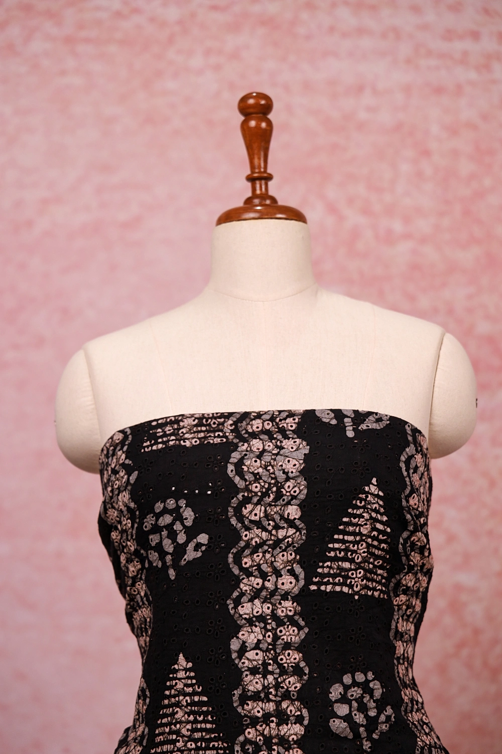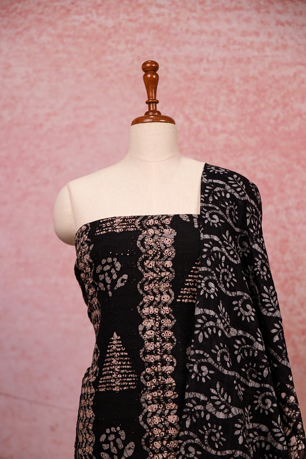 Black Hakoba Printed Unstitched Churidar Material. Includes Dupatta.
