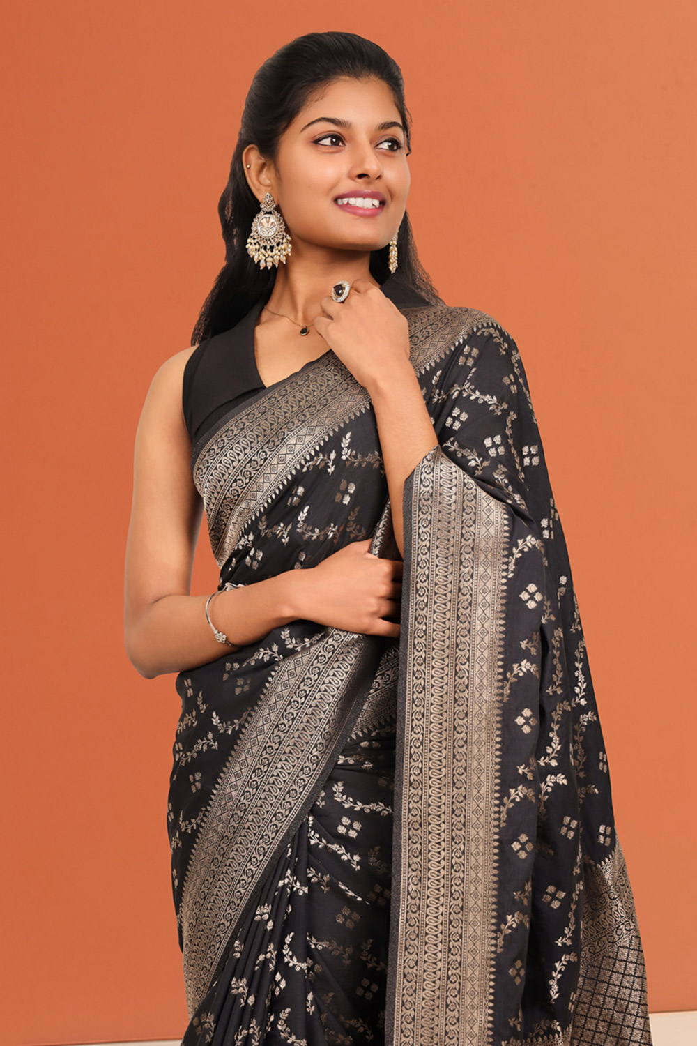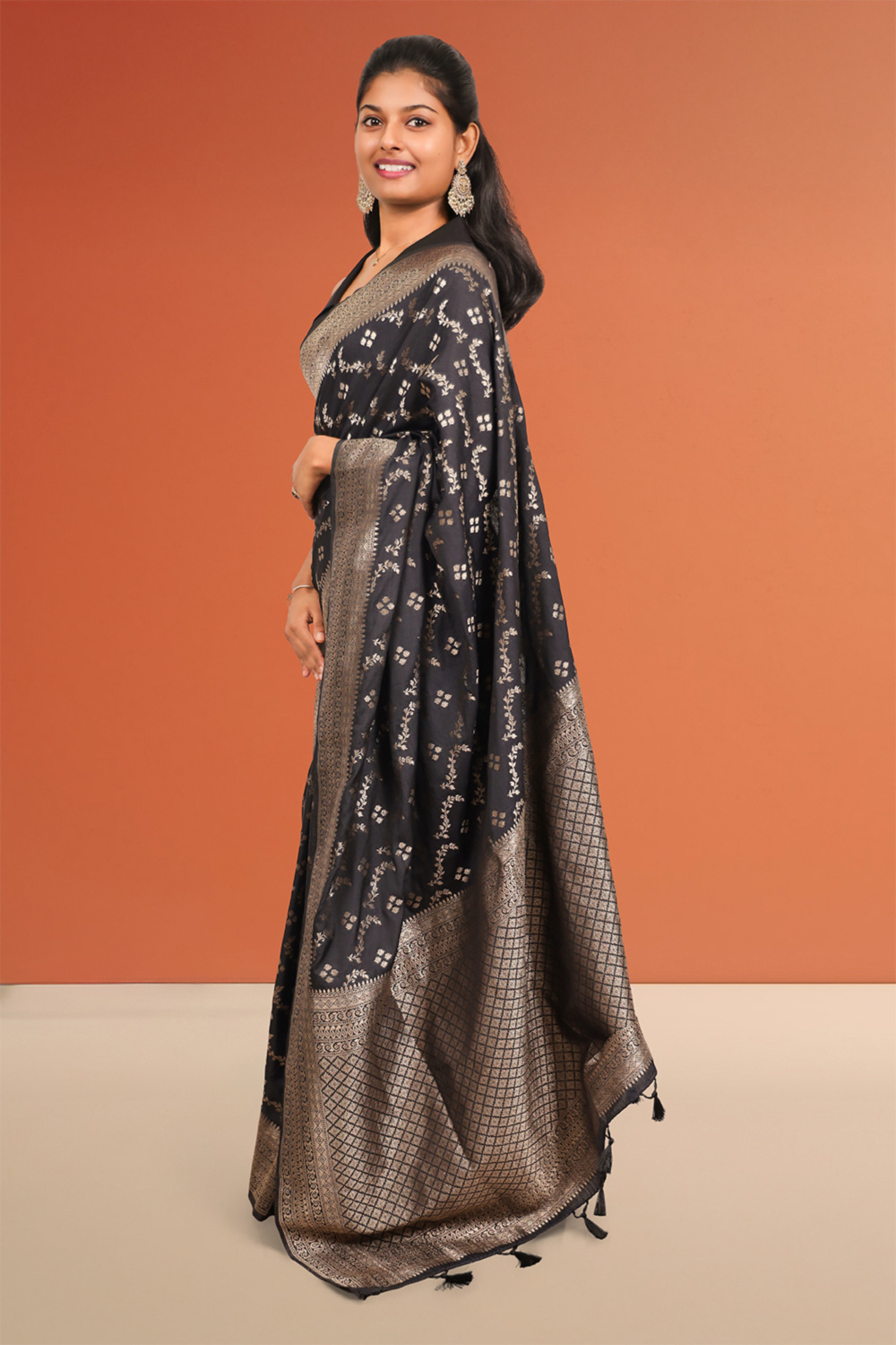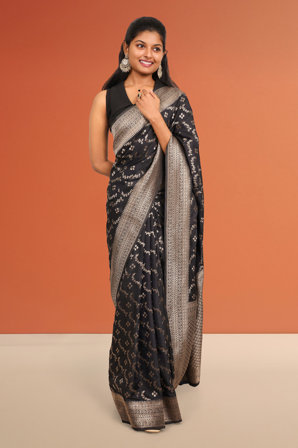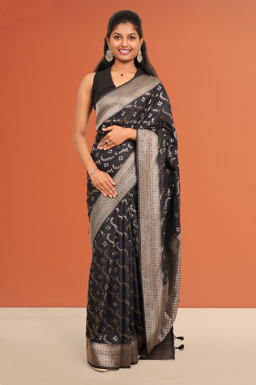 Black Semi Banarasi Saree