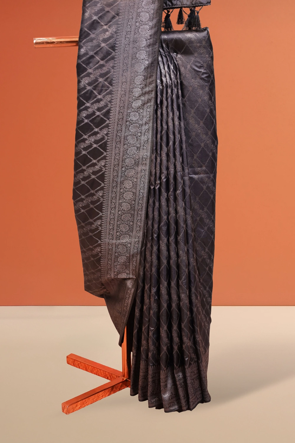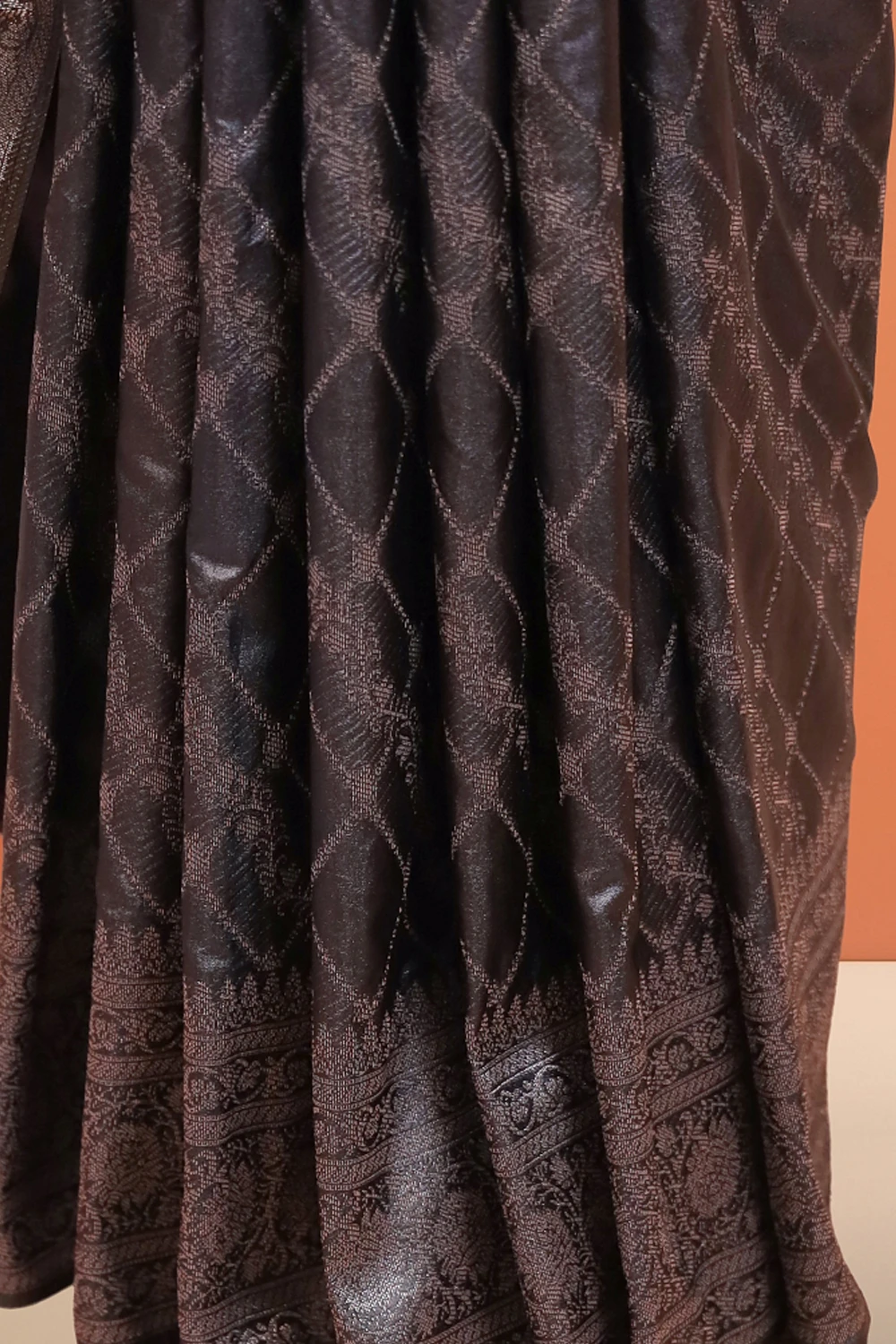 Black Semi Jute Banarasi Design Saree with Designer Border. Includes Unstitched Blouse