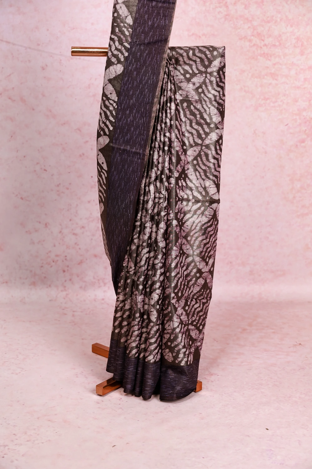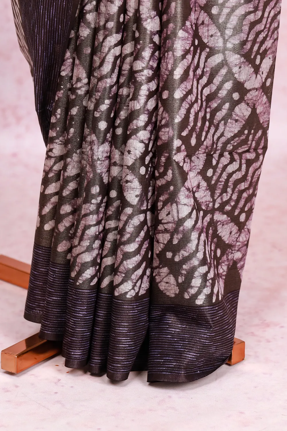Black Semi Tussar Bandhani Printed Saree With Thread Border. Includes Un Stitched Blouse