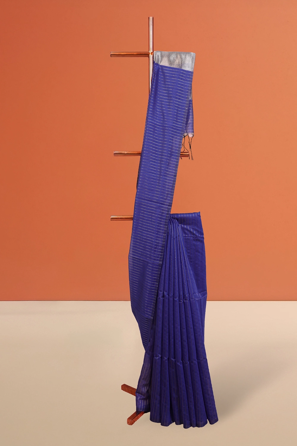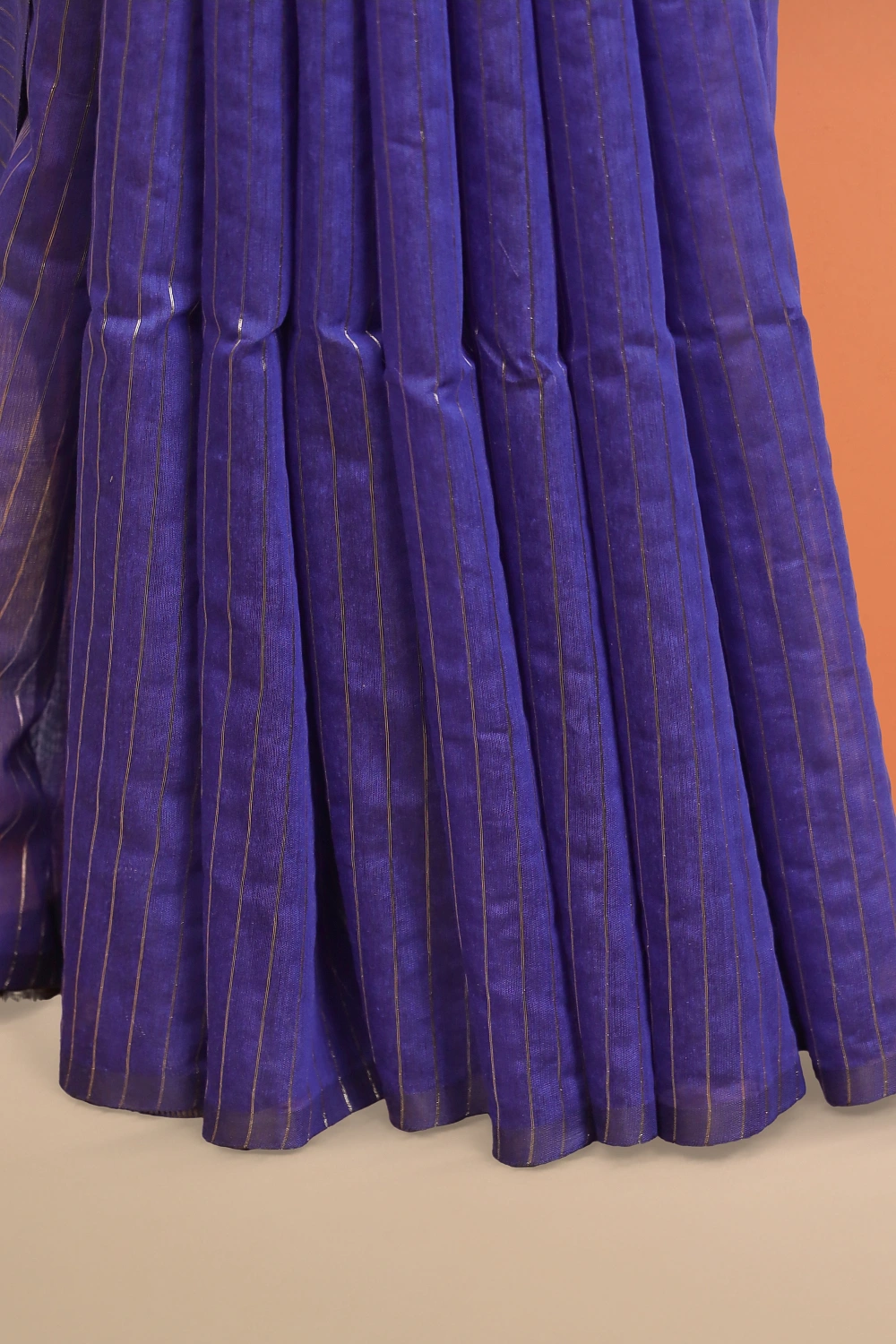 Blue Cotton Silk Line Design Saree without Border. Includes Unstitched Blouse