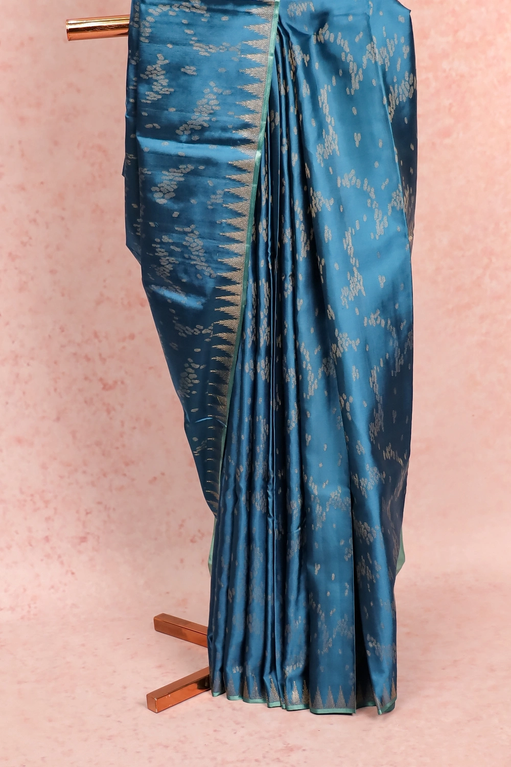 Blue Kancheepuram Silk Designer Body Saree with Temple Border. Includes Unstitched Blouse