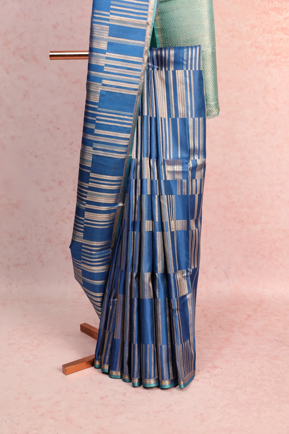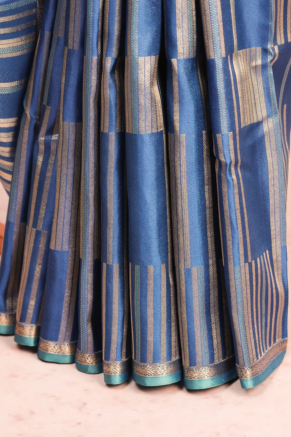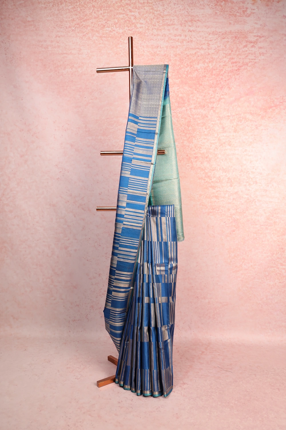 Blue Kancheepuram Silk Lines Saree with Without Border. Includes Un stitched Blouse