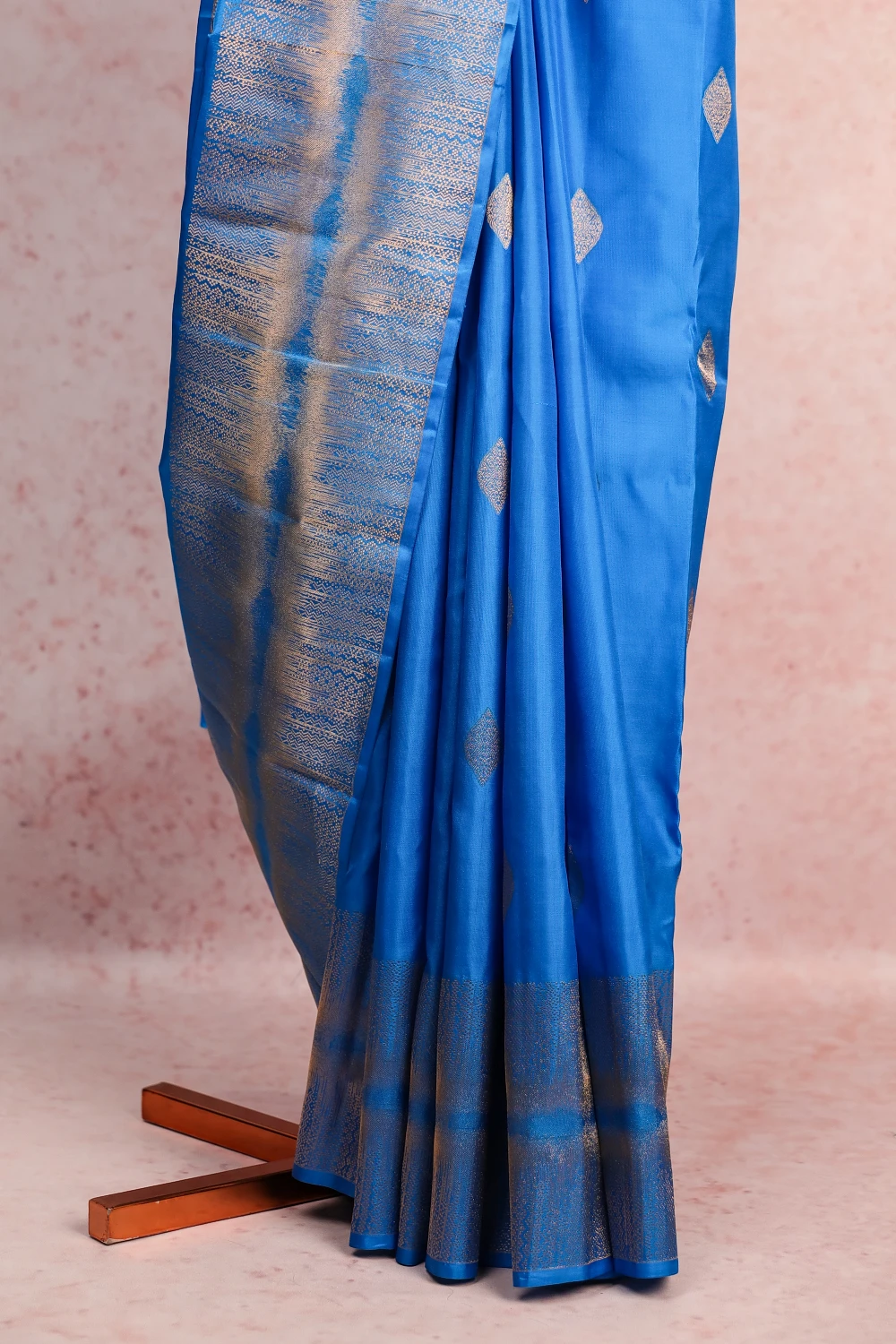 Blue Kancheepuram Soft Silk Butta Saree with Designer Border. Includes Unstitched Blouse