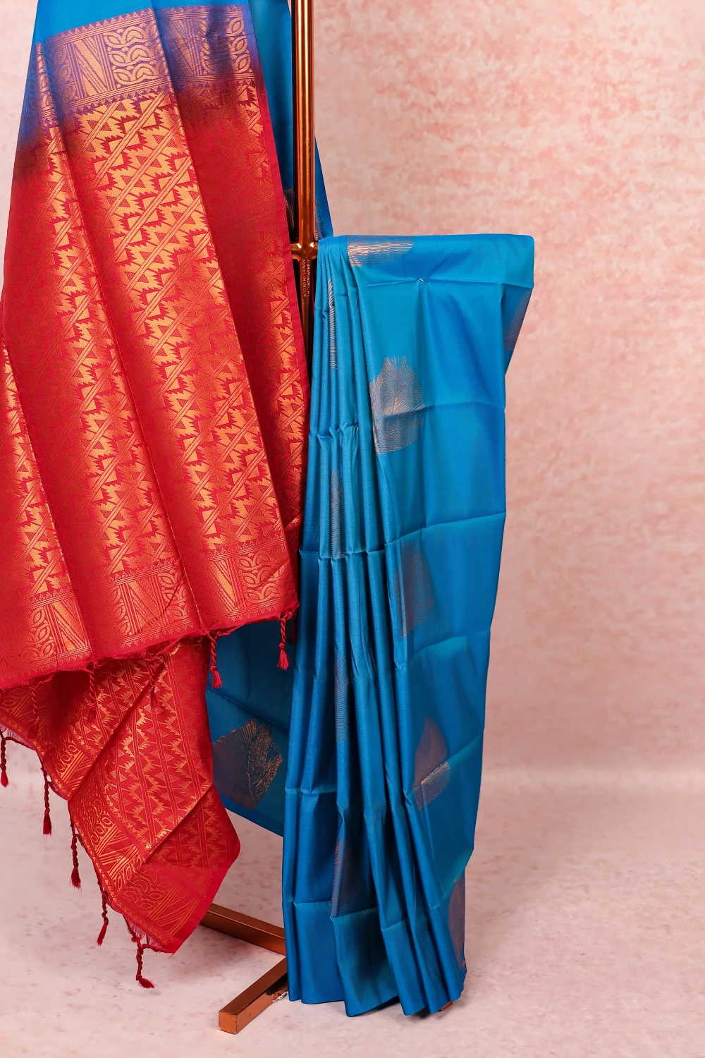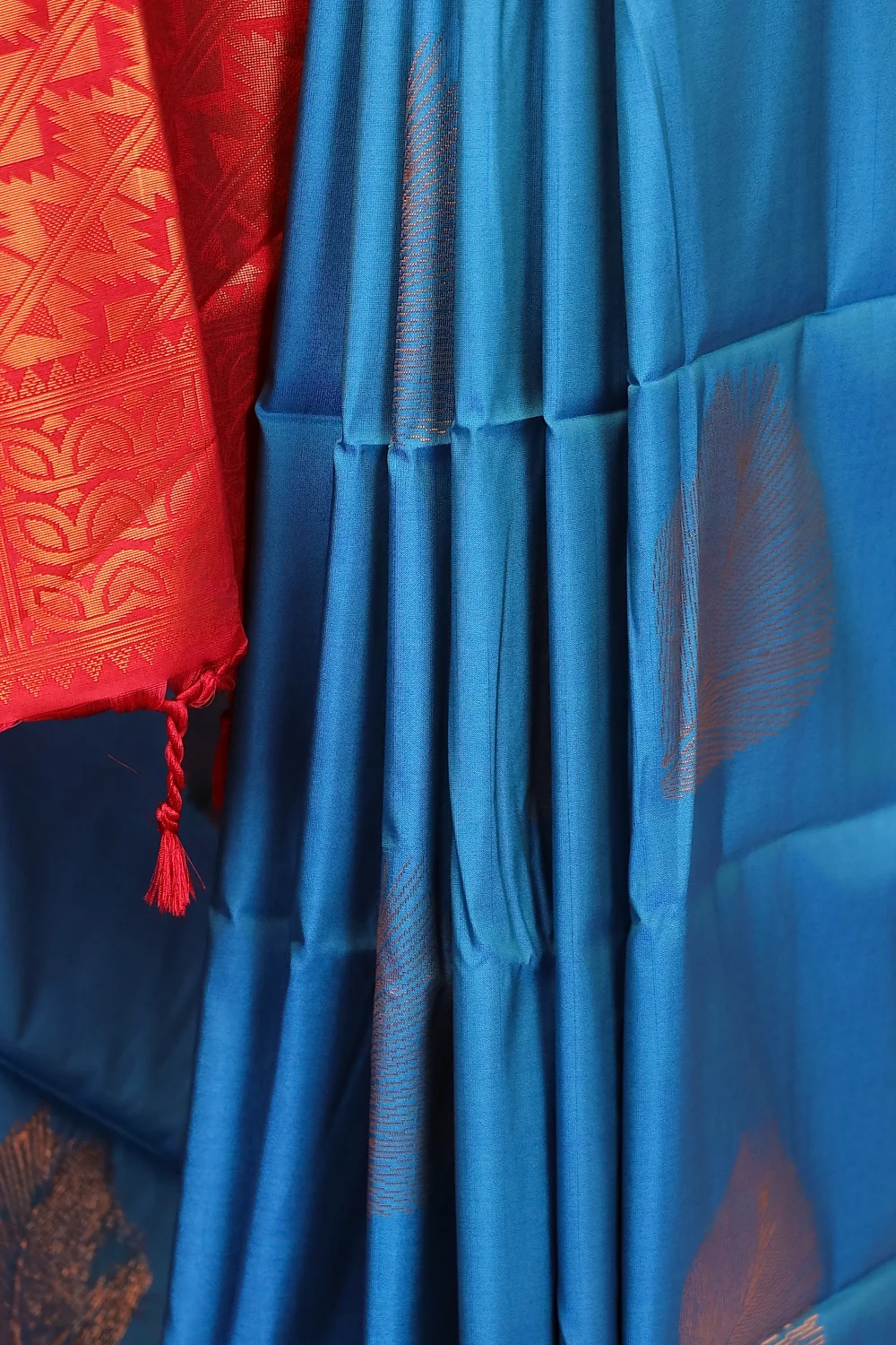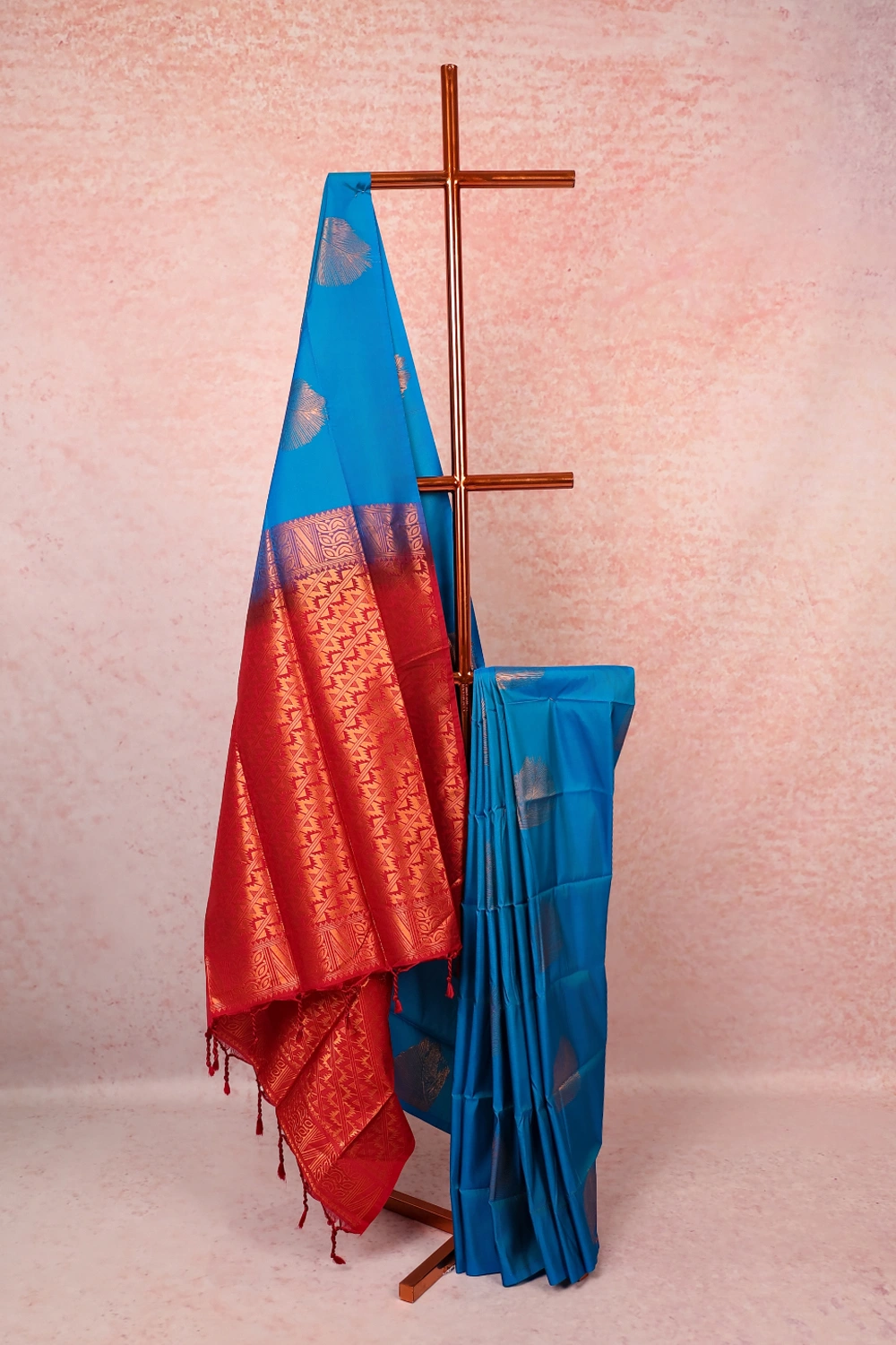 Blue Kanchi Soft Silk Leaf Butta Saree with Without border. Includes Unstitched Blouse