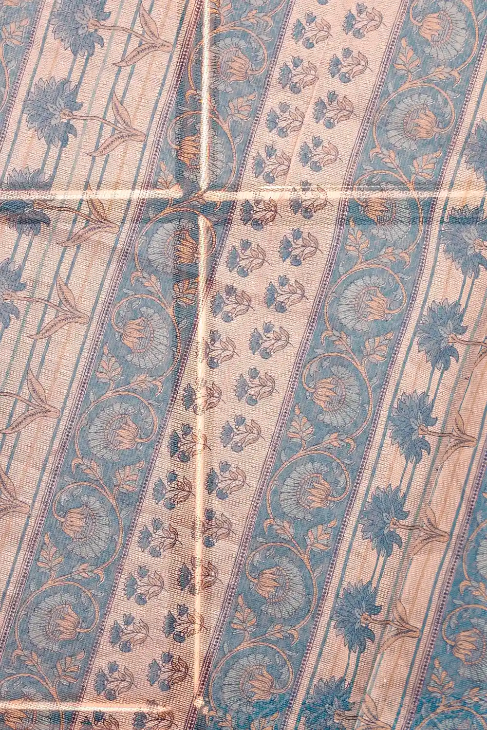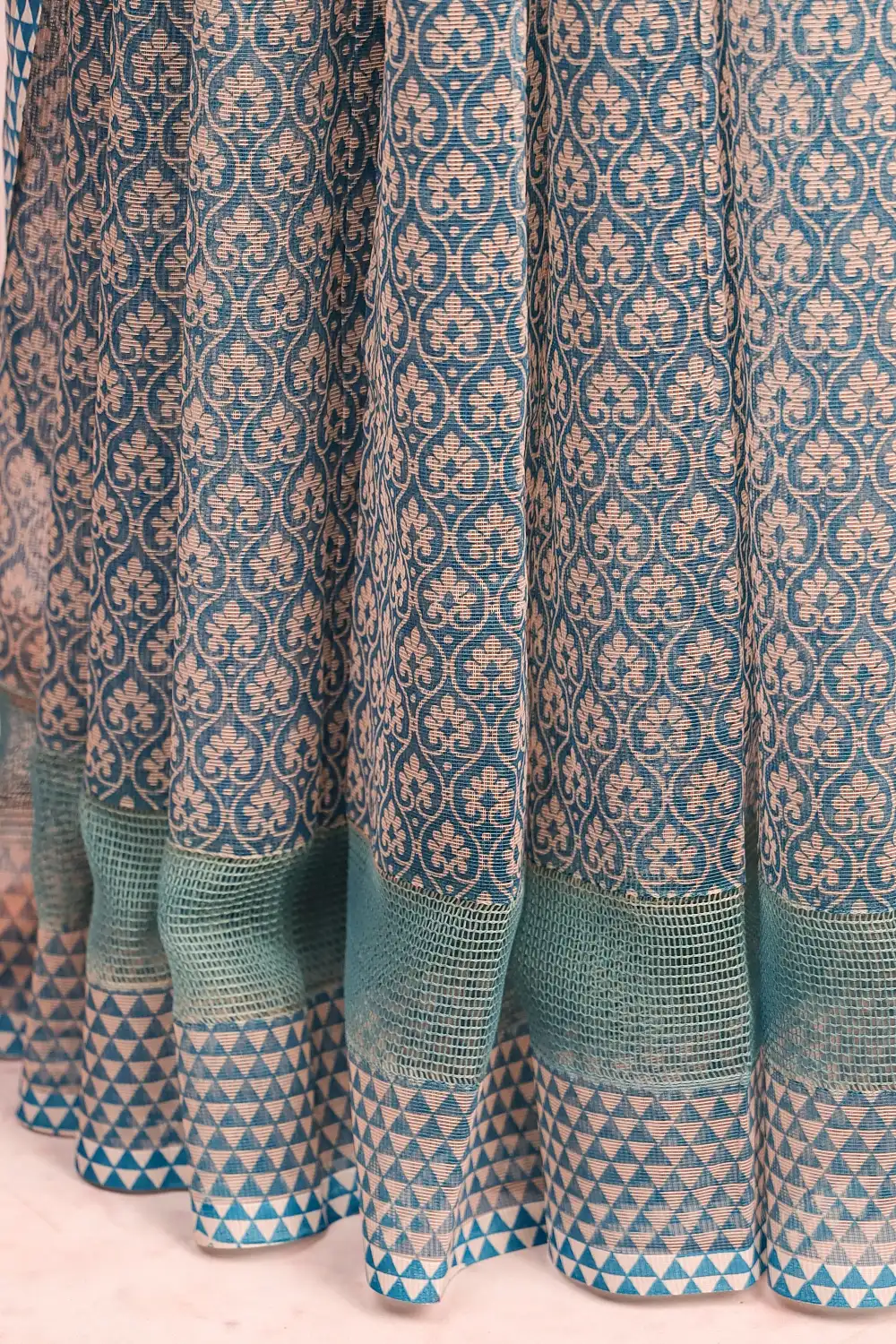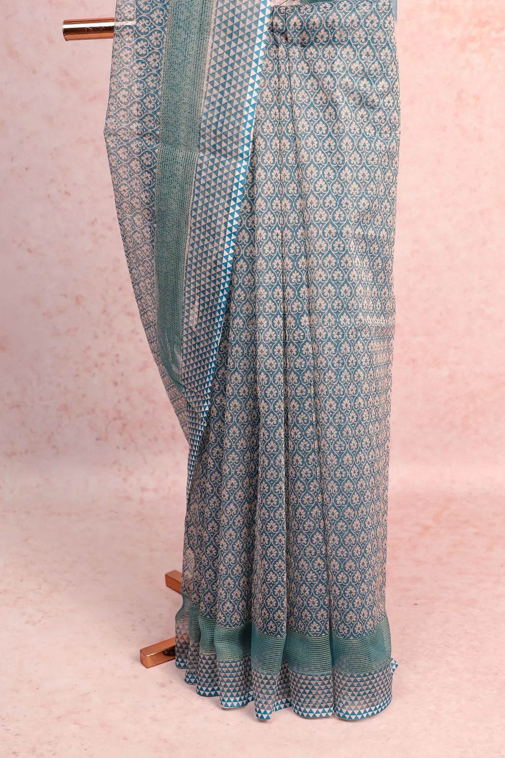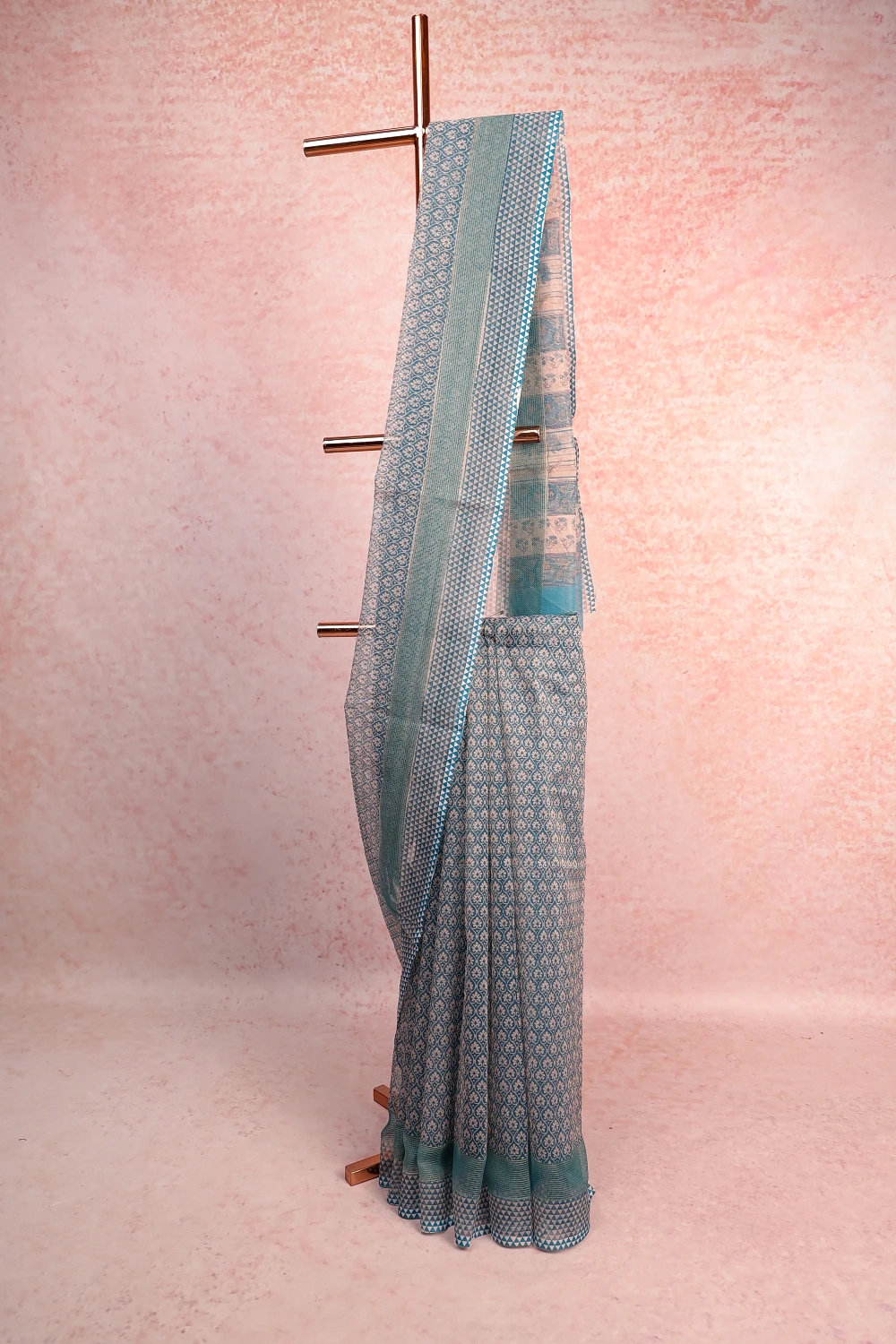 Blue Kota Prited with Self Border. Includes Un stitched Blouse