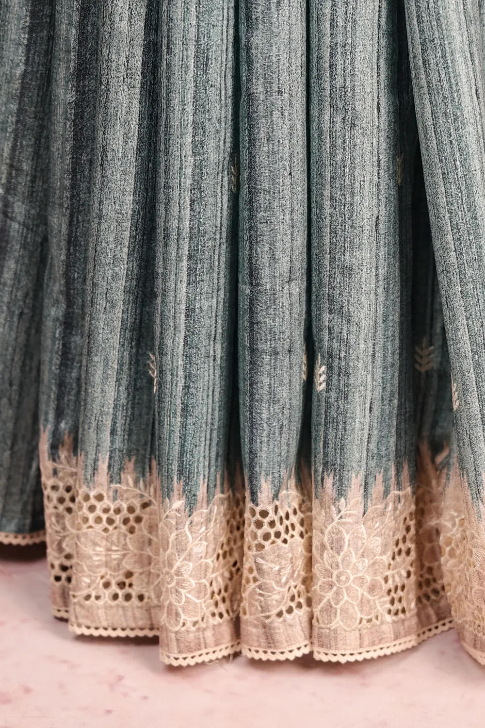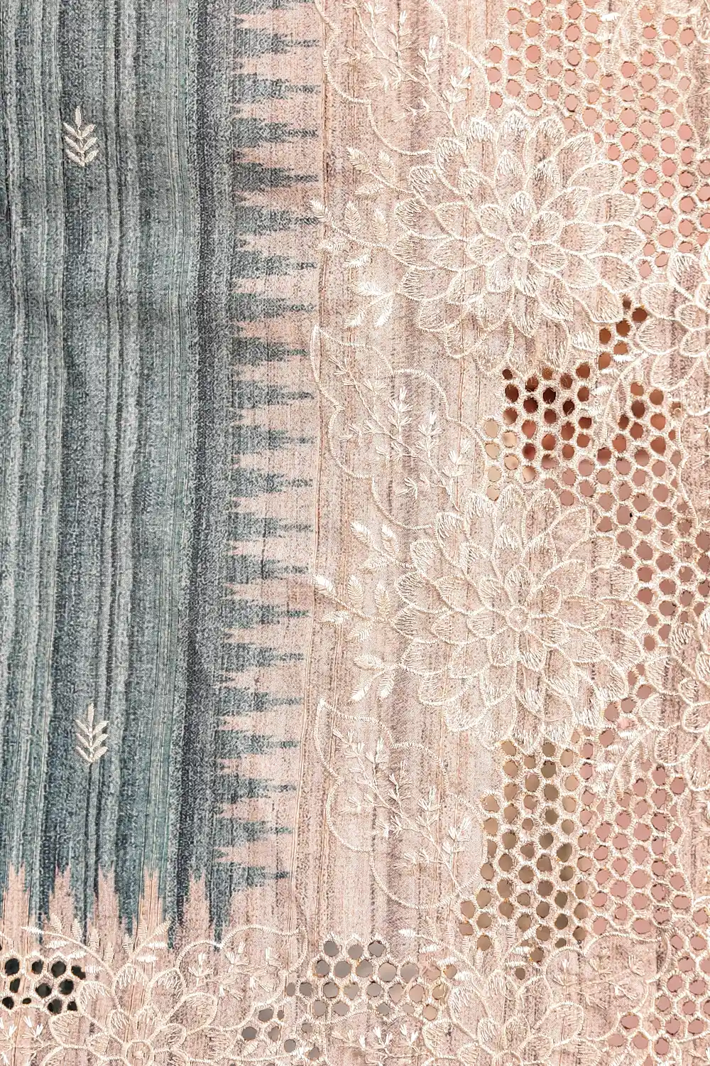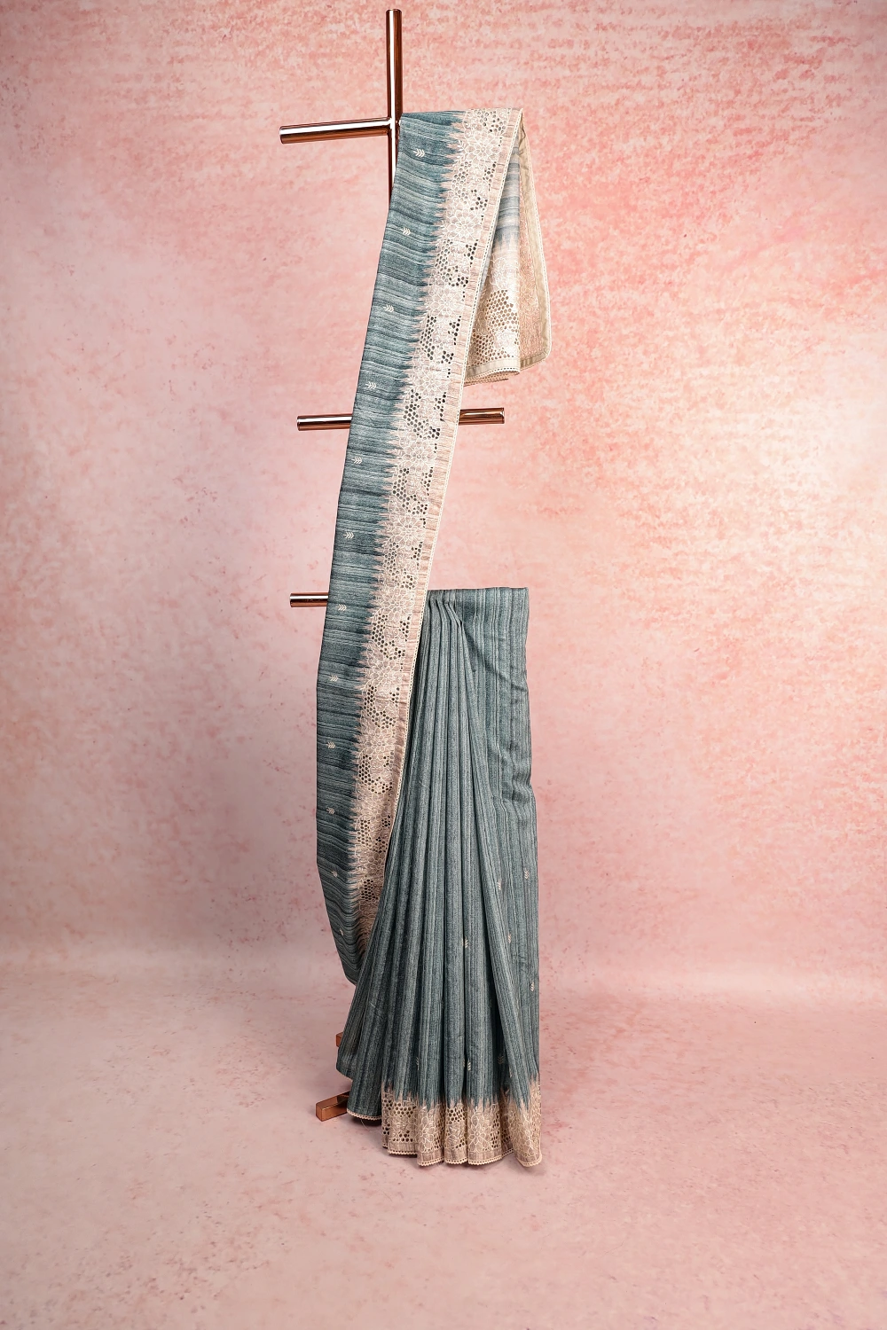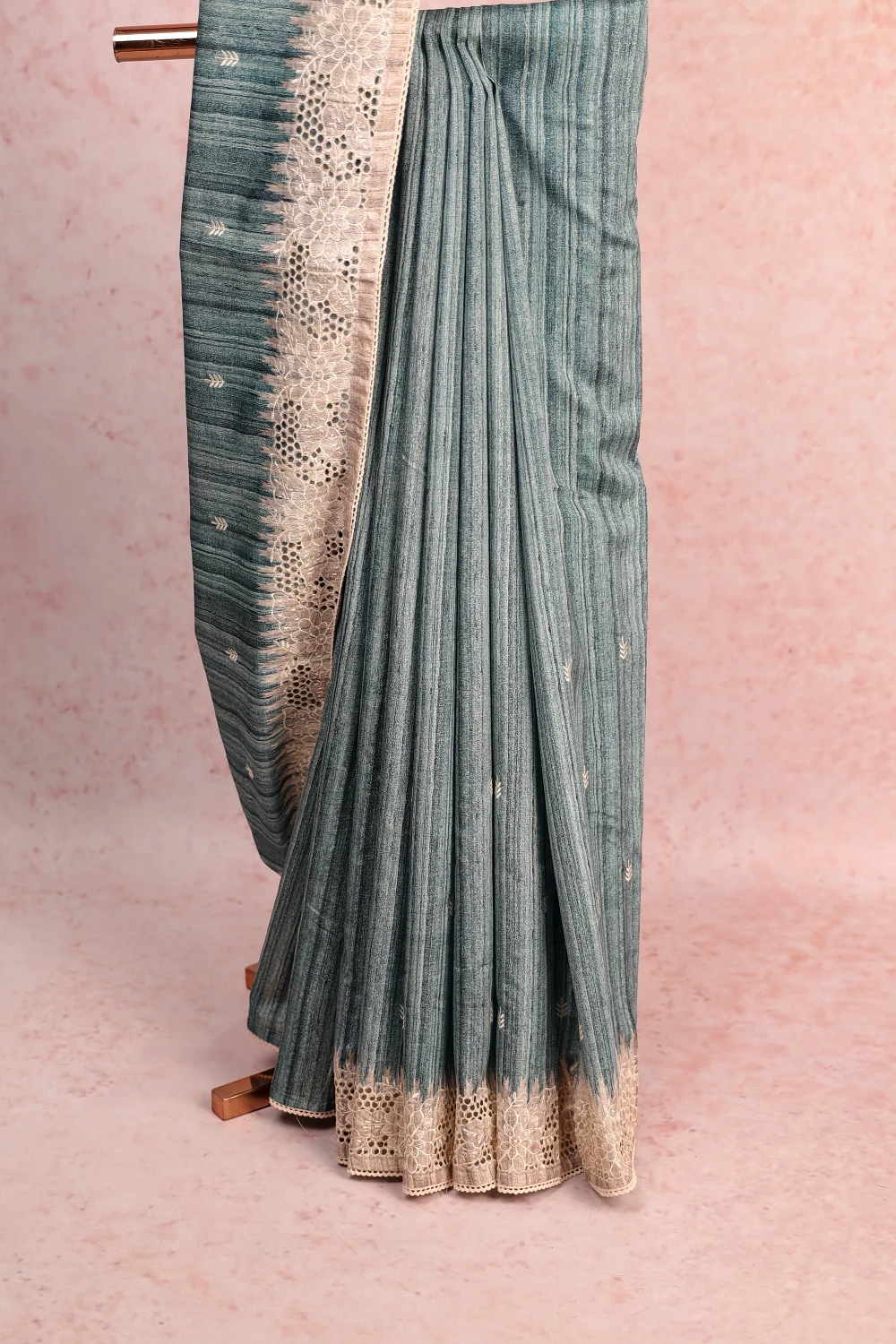 Blue Semi Jute Plain Body Saree with Cutt Work Border. Includes Un stitched Blouse