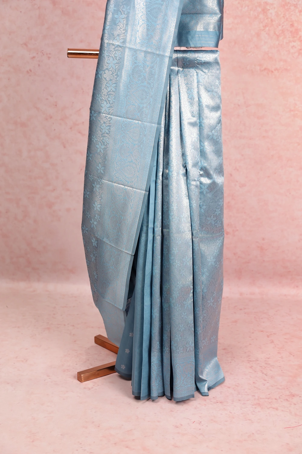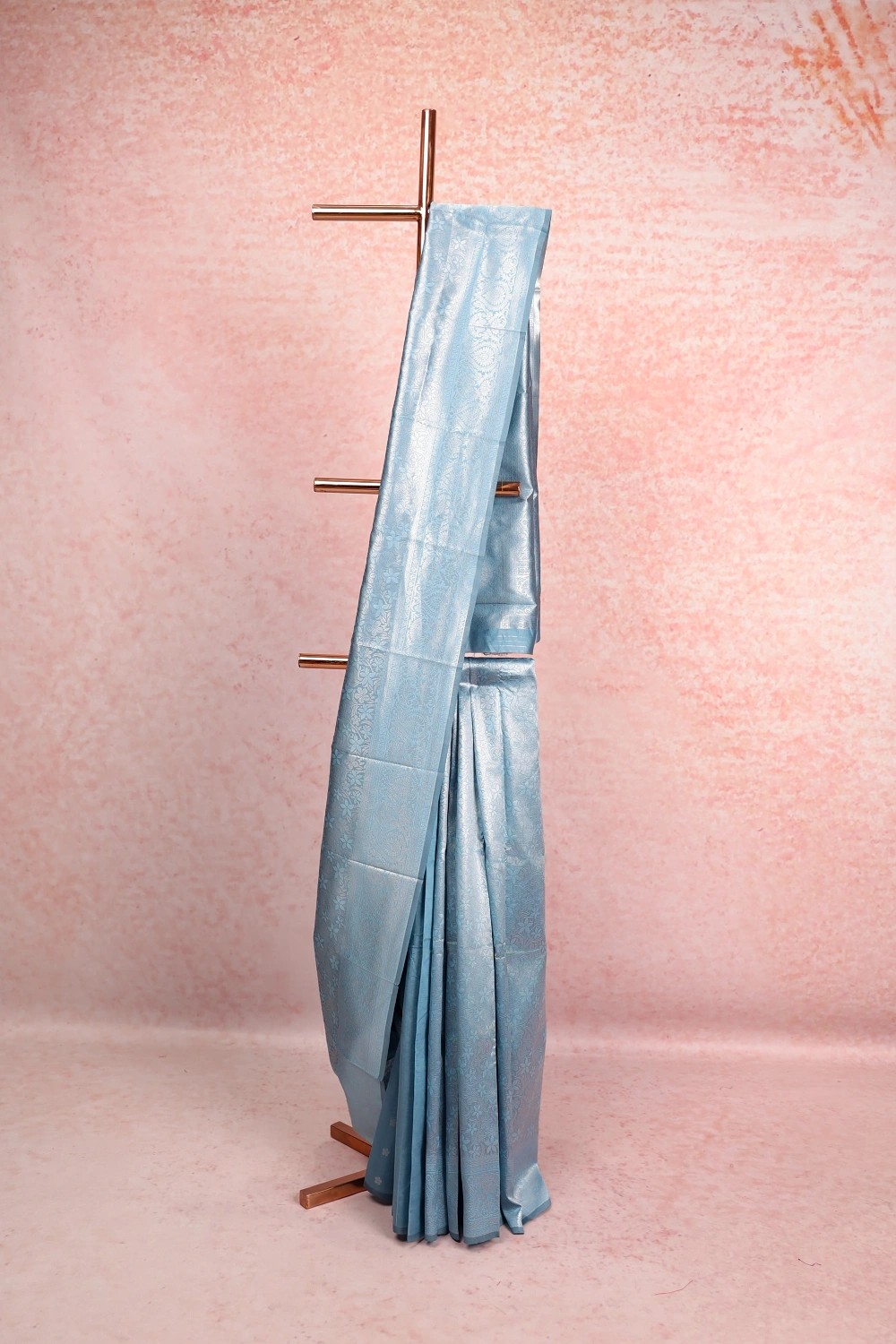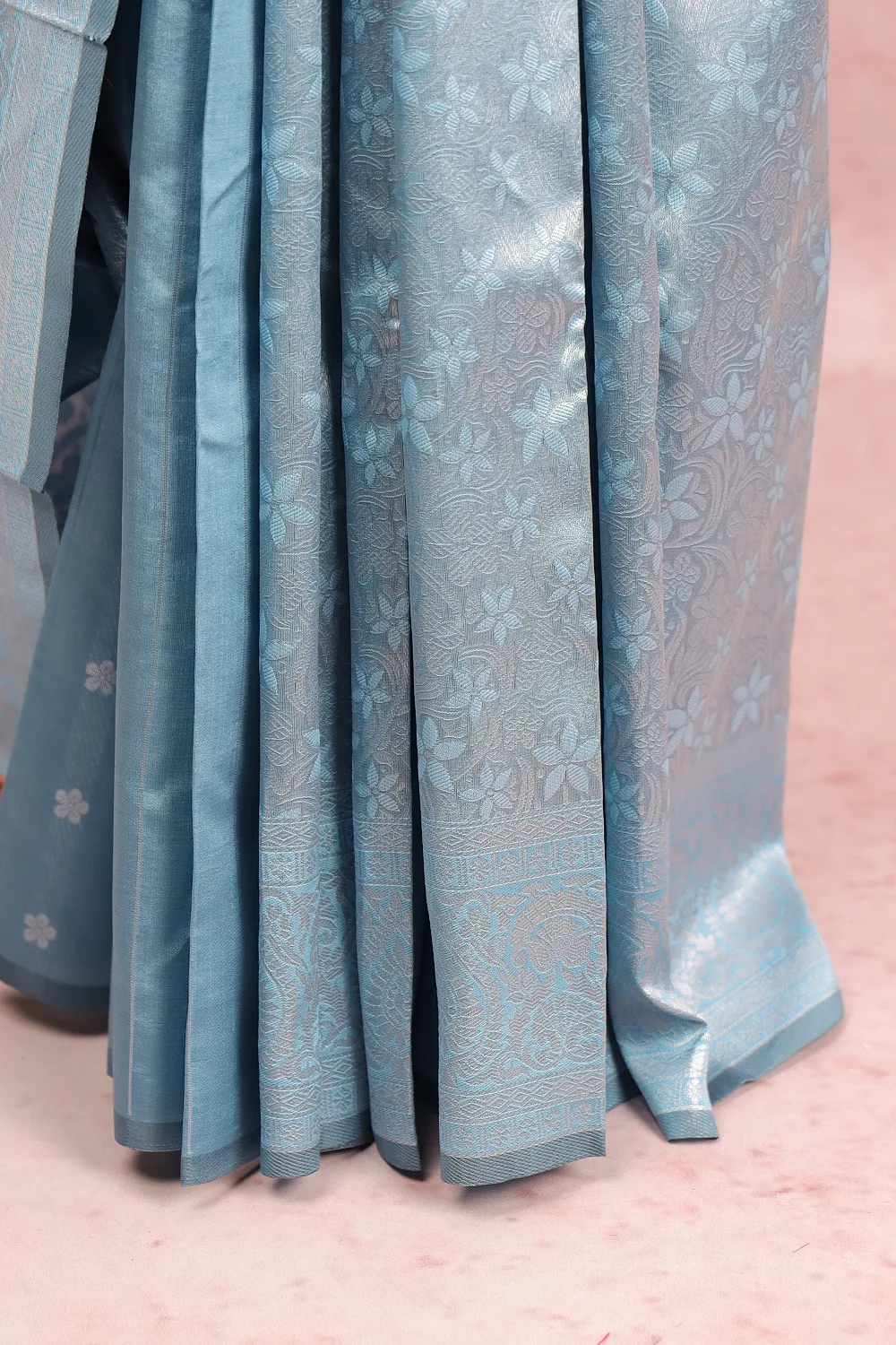 Blue Semi Silk Butta Saree With Designer Border. Includes Un Stitched Blouse