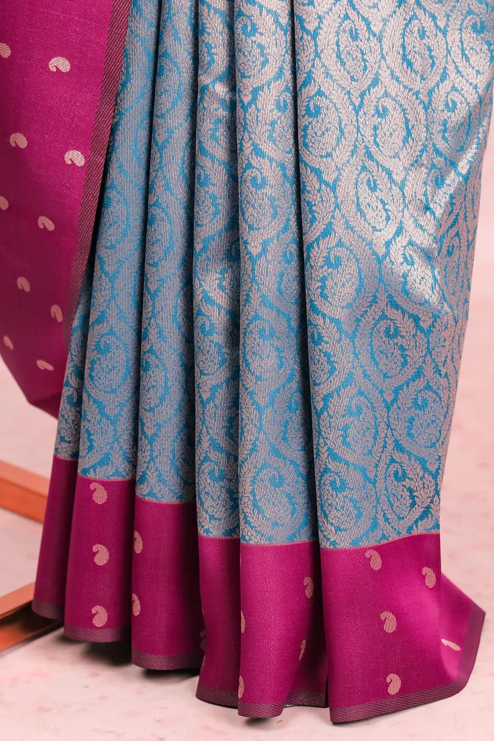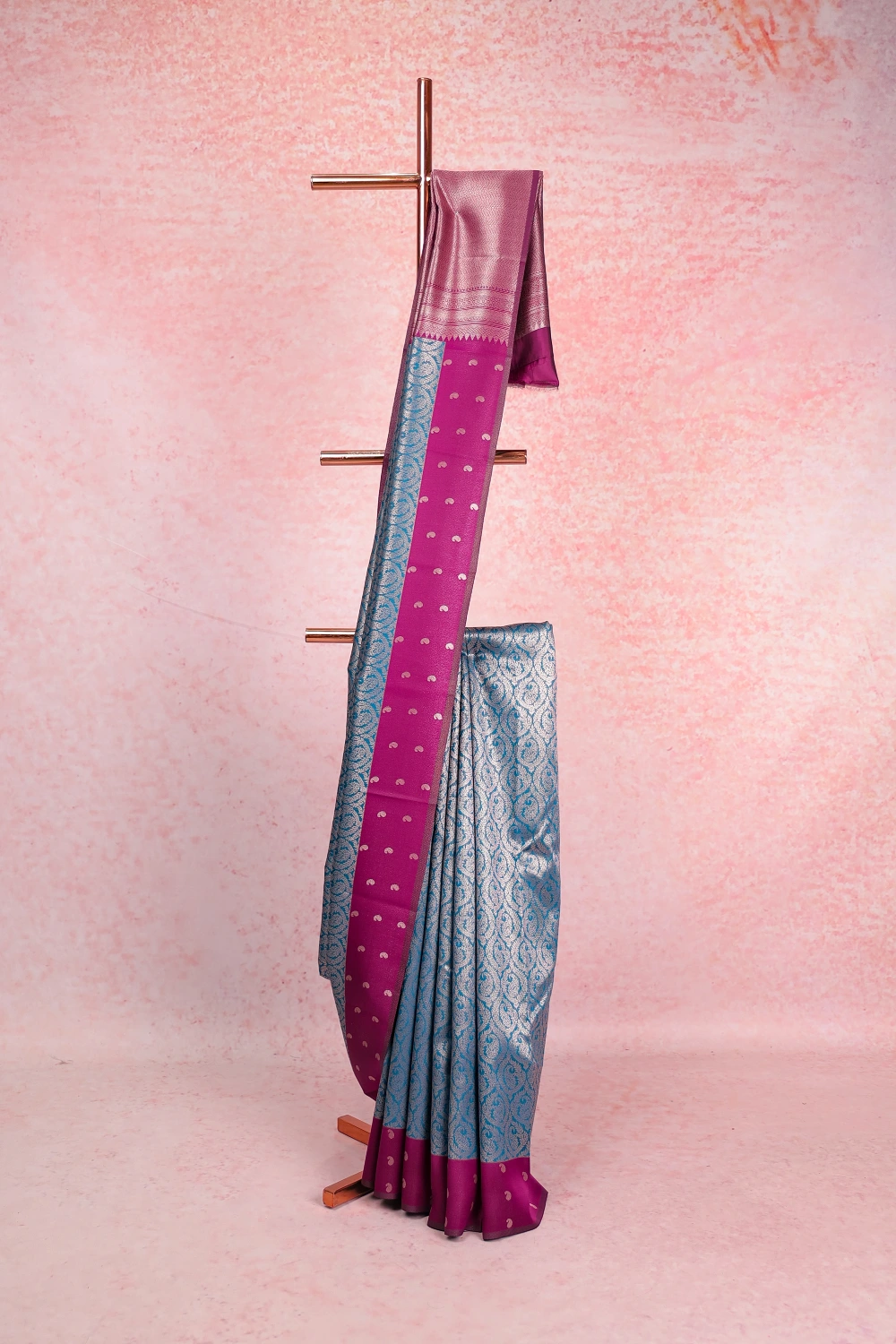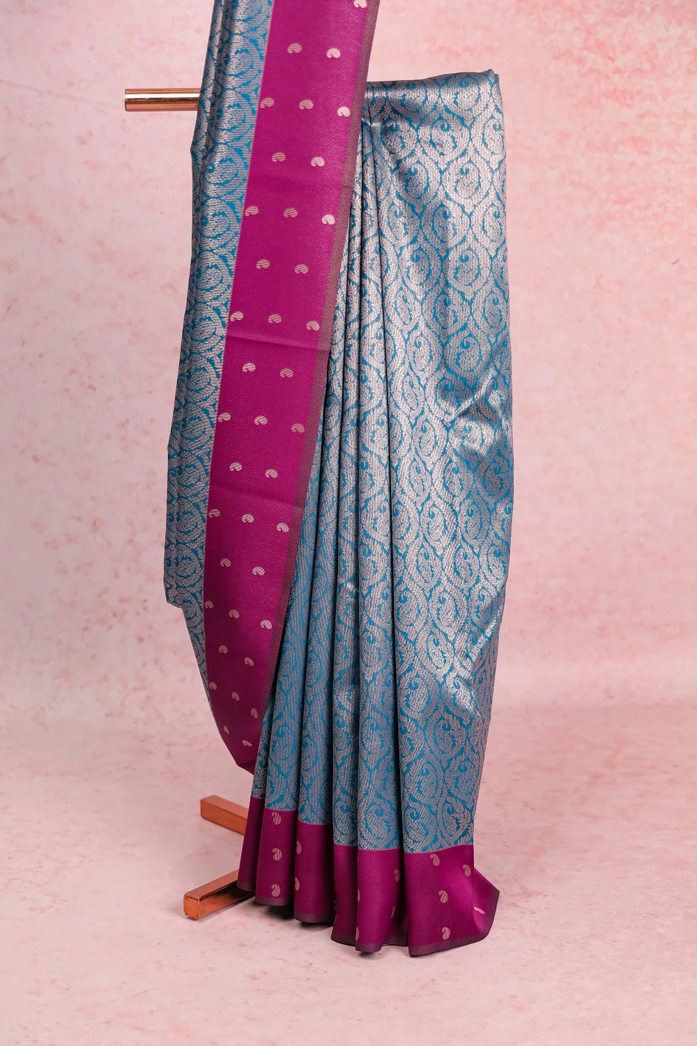 Blue Semi Silk Brocade Saree with Brocade Border. Includes Unstitched Blouse