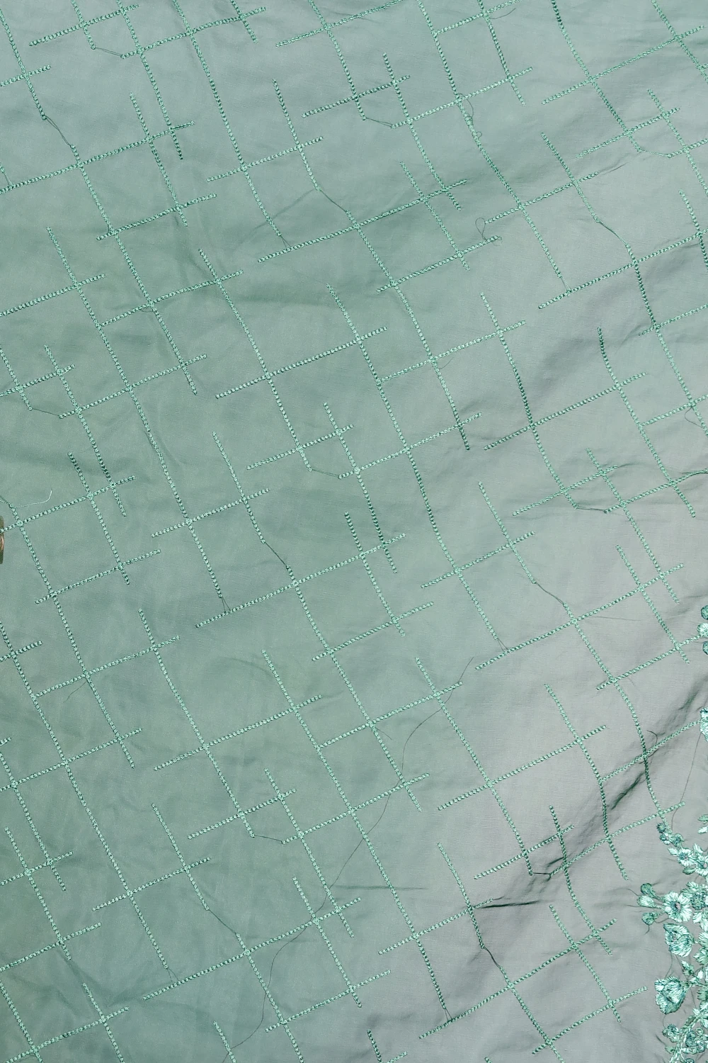 Bottle Green Organza Embroidary Saree With Thread Border. Includes Un Stitched Blouse