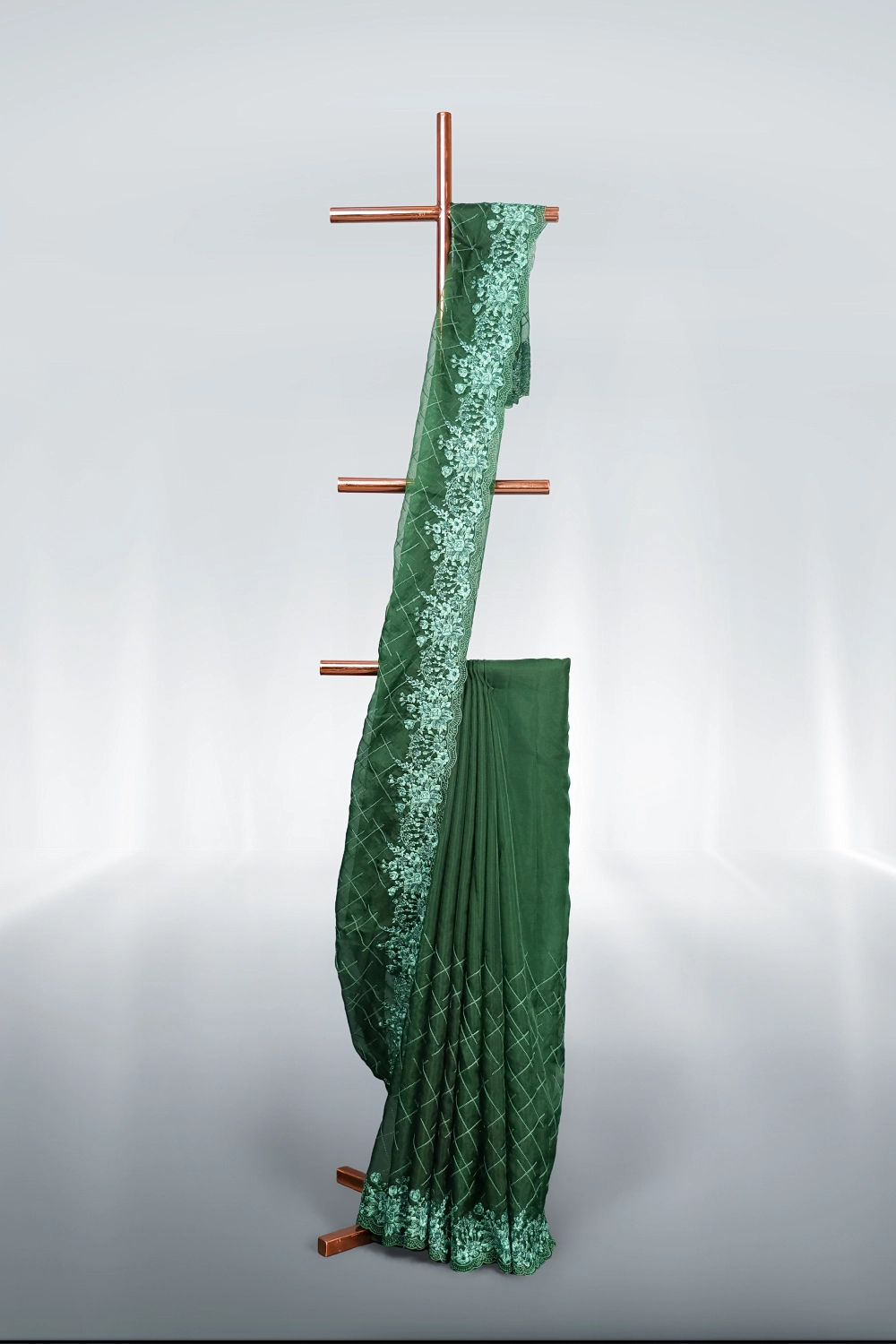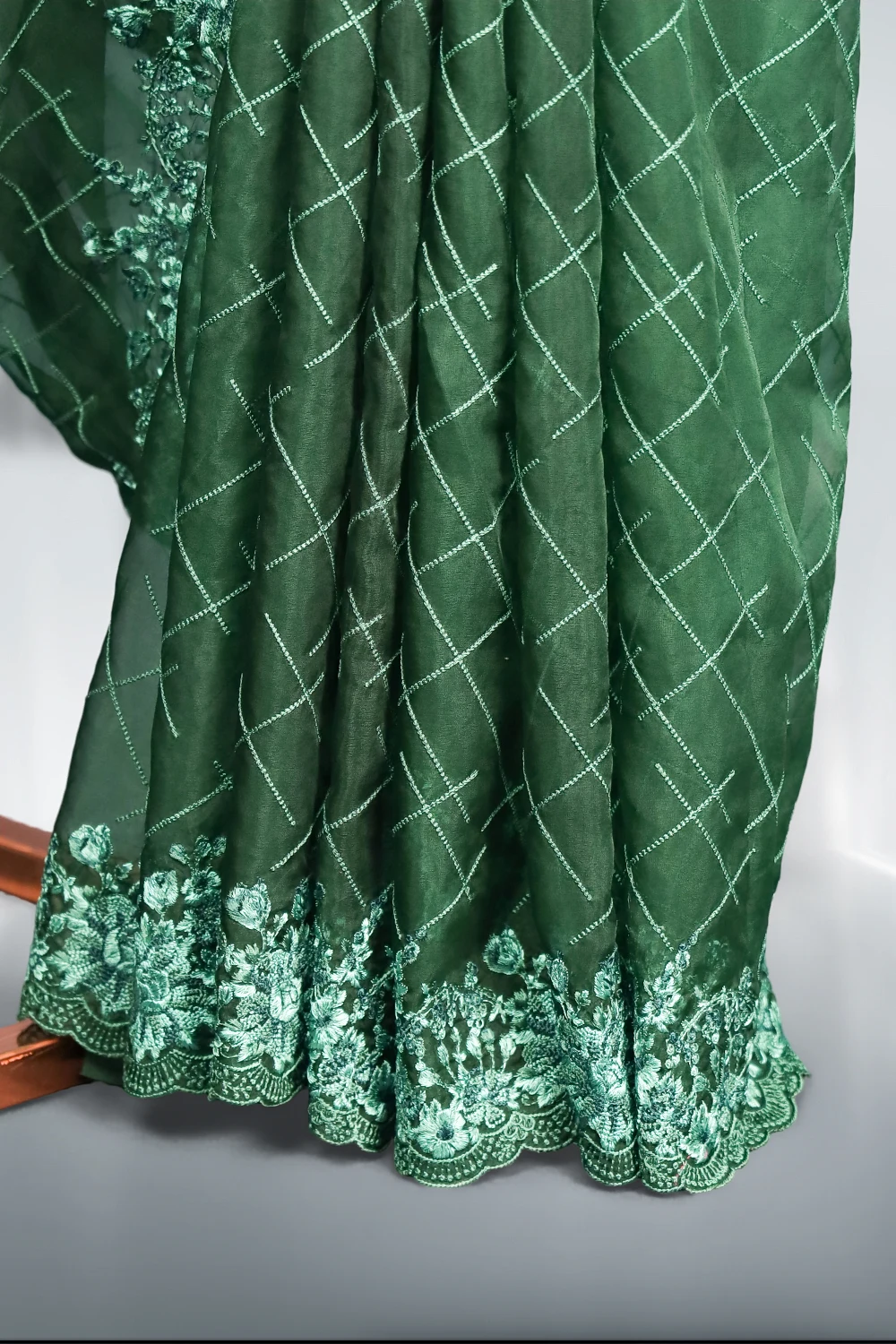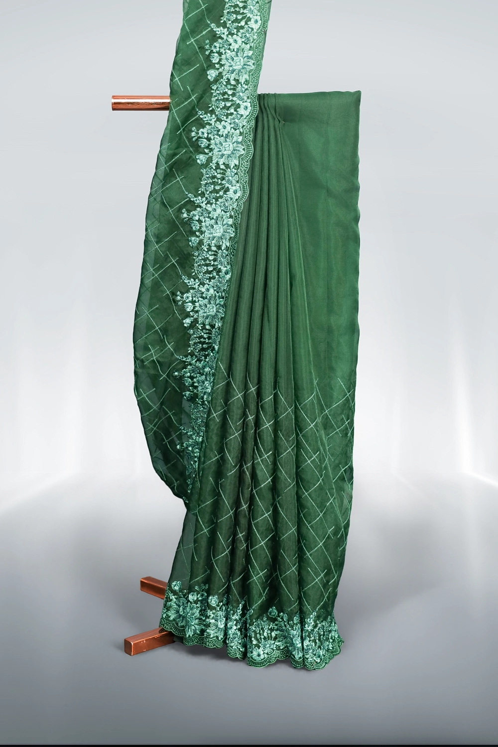 Bottle Green Organza Saree