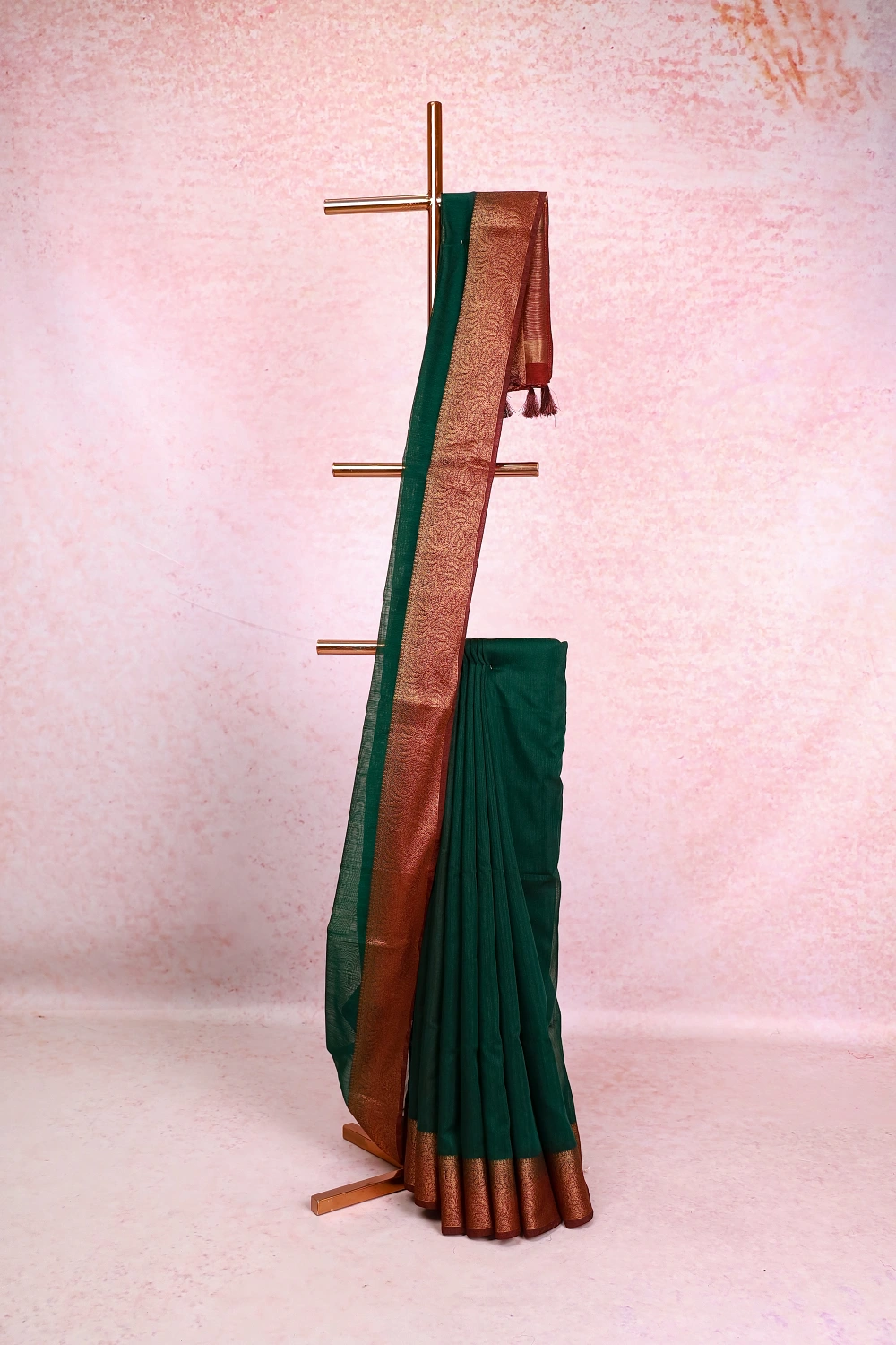 Bottle Green Semi Jute Saree