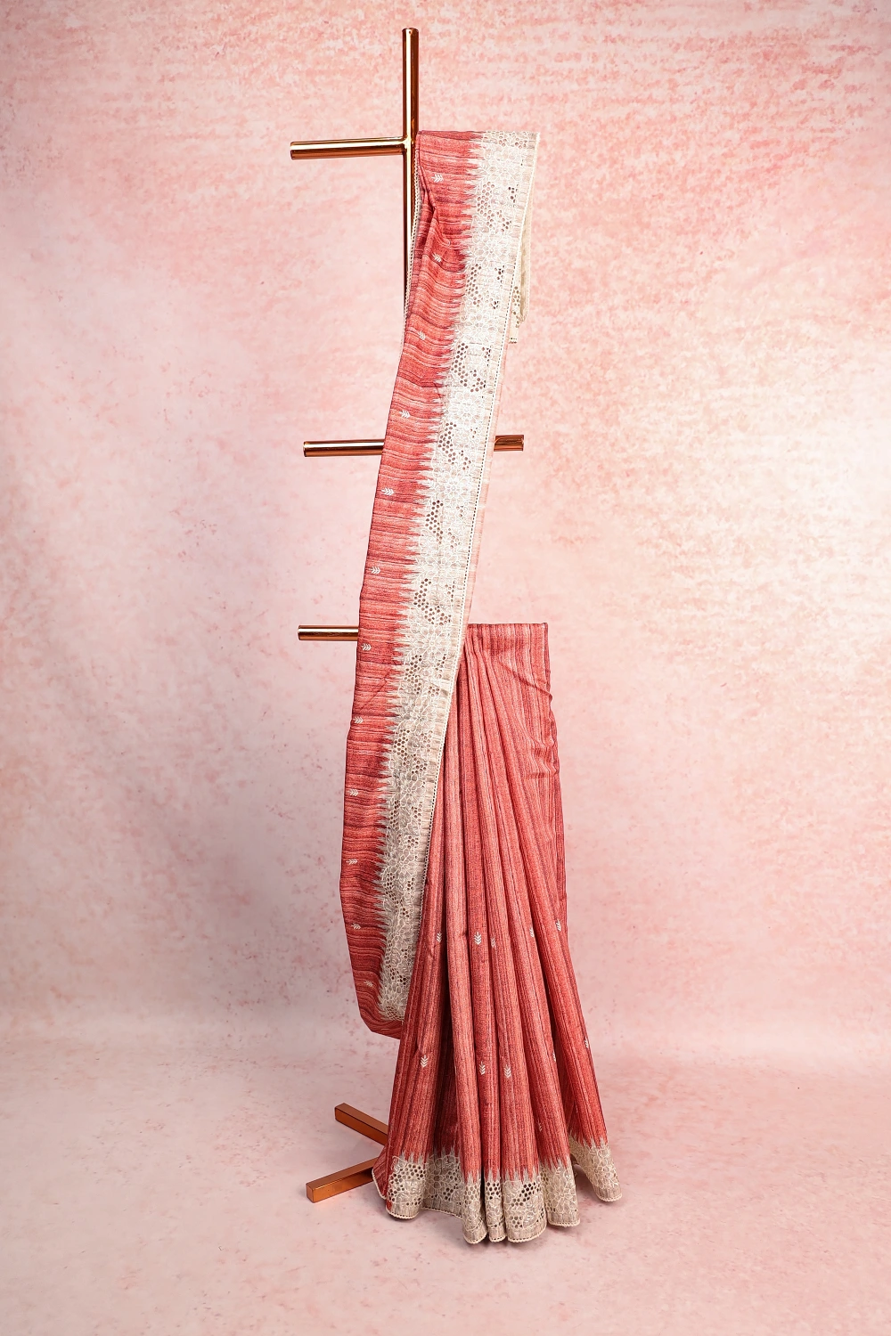 Brick Color Semi Tussar Saree