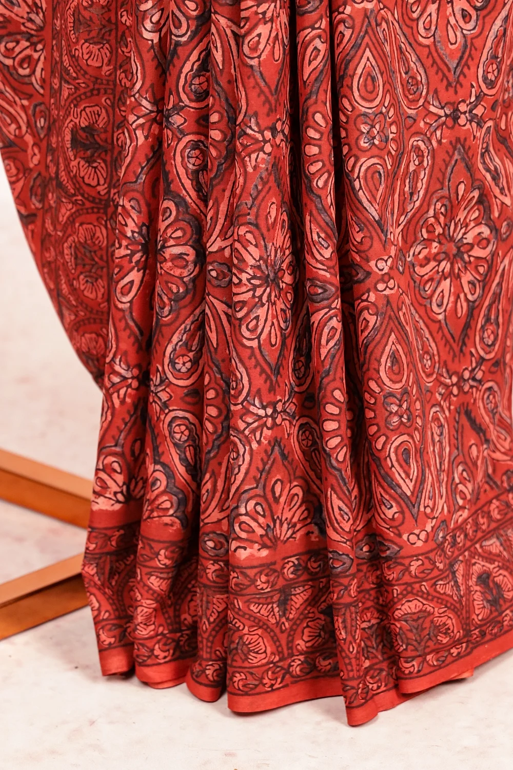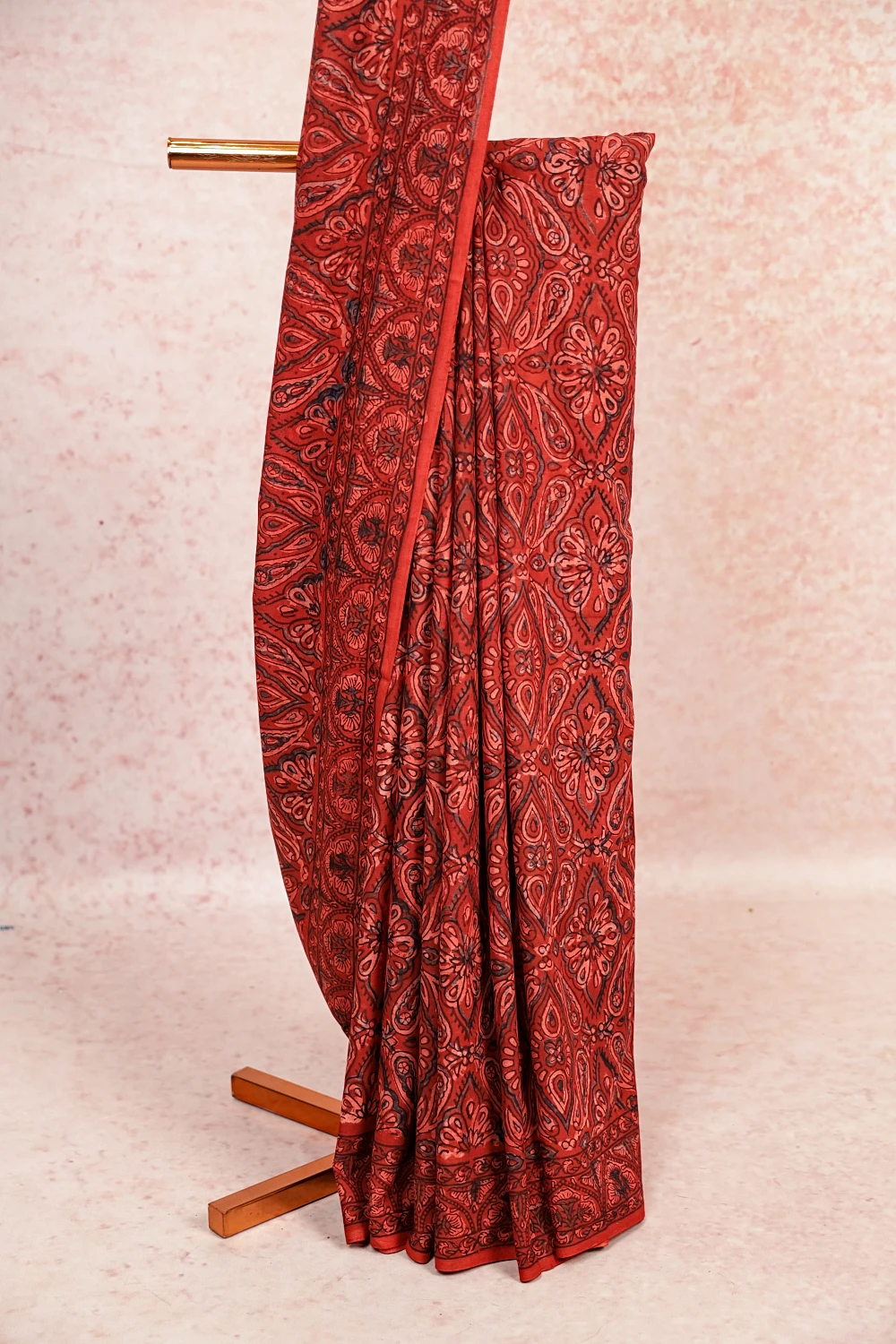 Brick Colour Cotton Printed Saree With Printed Border. Includes Unstitched Blouse