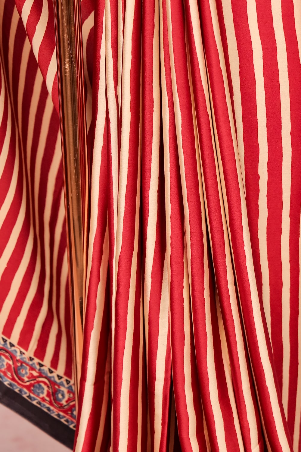Brick Red Semi Modal Lines Saree with Printed Border. Unstiched Blouse Piece