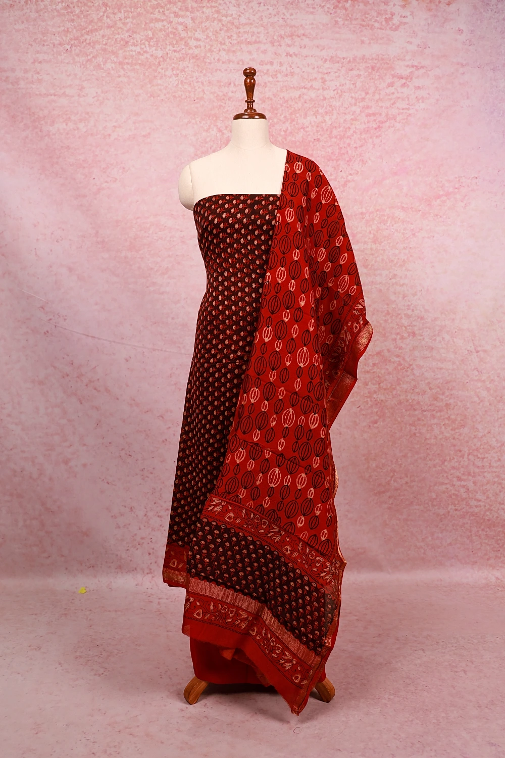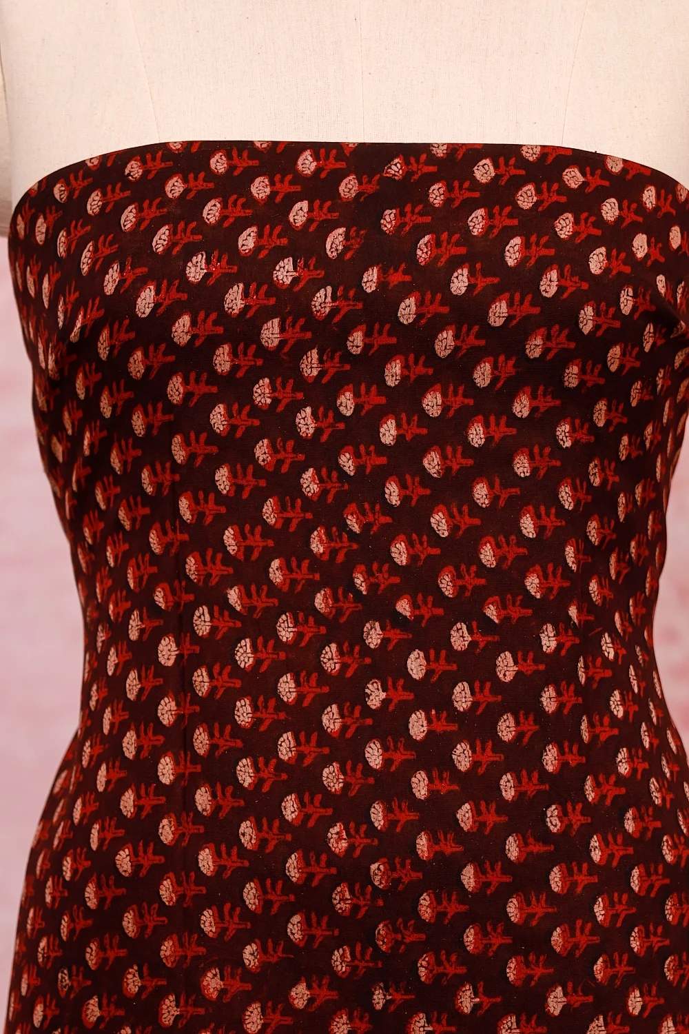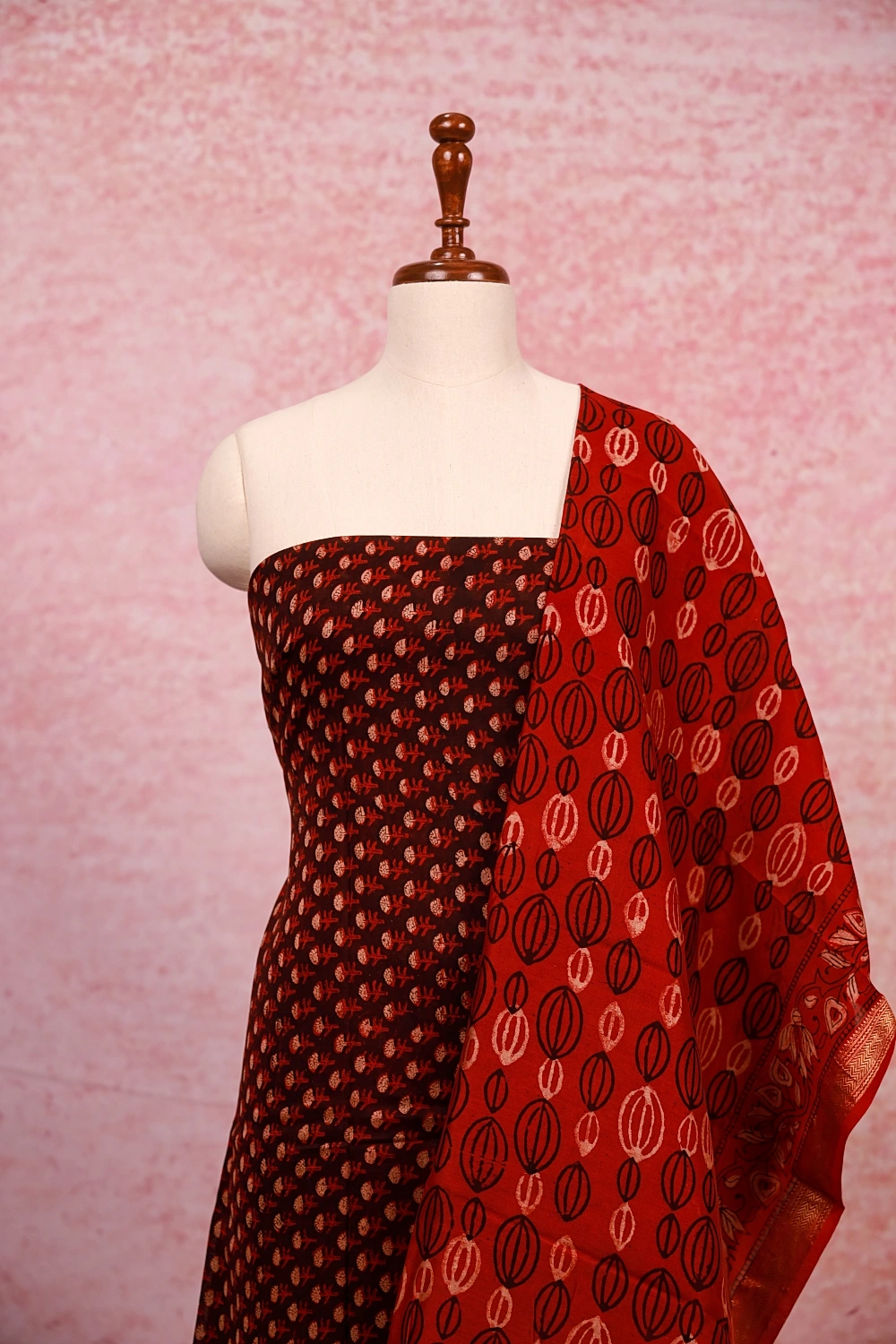 Brown Cotton Printed Unstitched Churidar Material. Includes Dupatta.