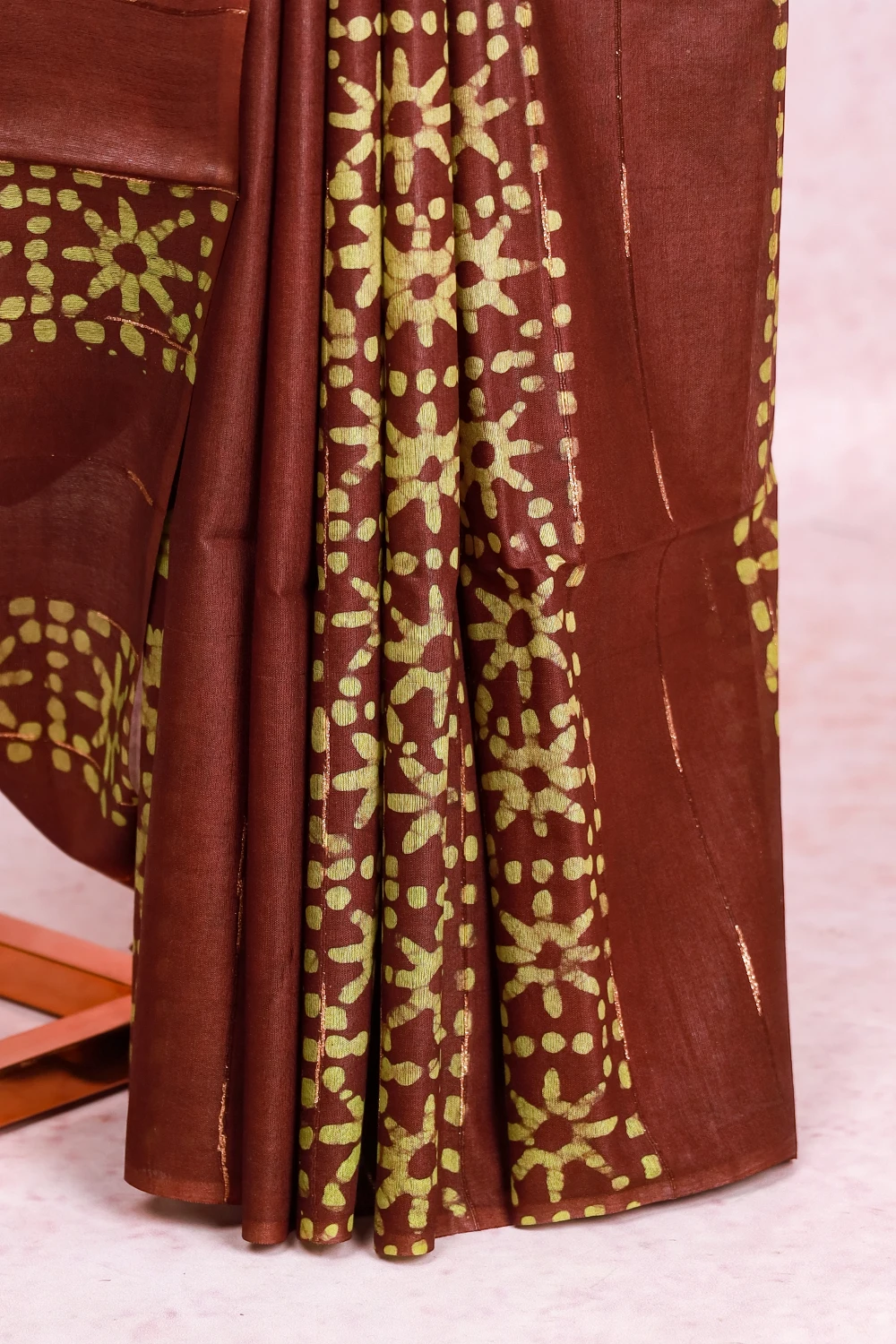 Brown Semi Tussar Bandhani Print Saree Without Border. Includes Unstitched Blouse