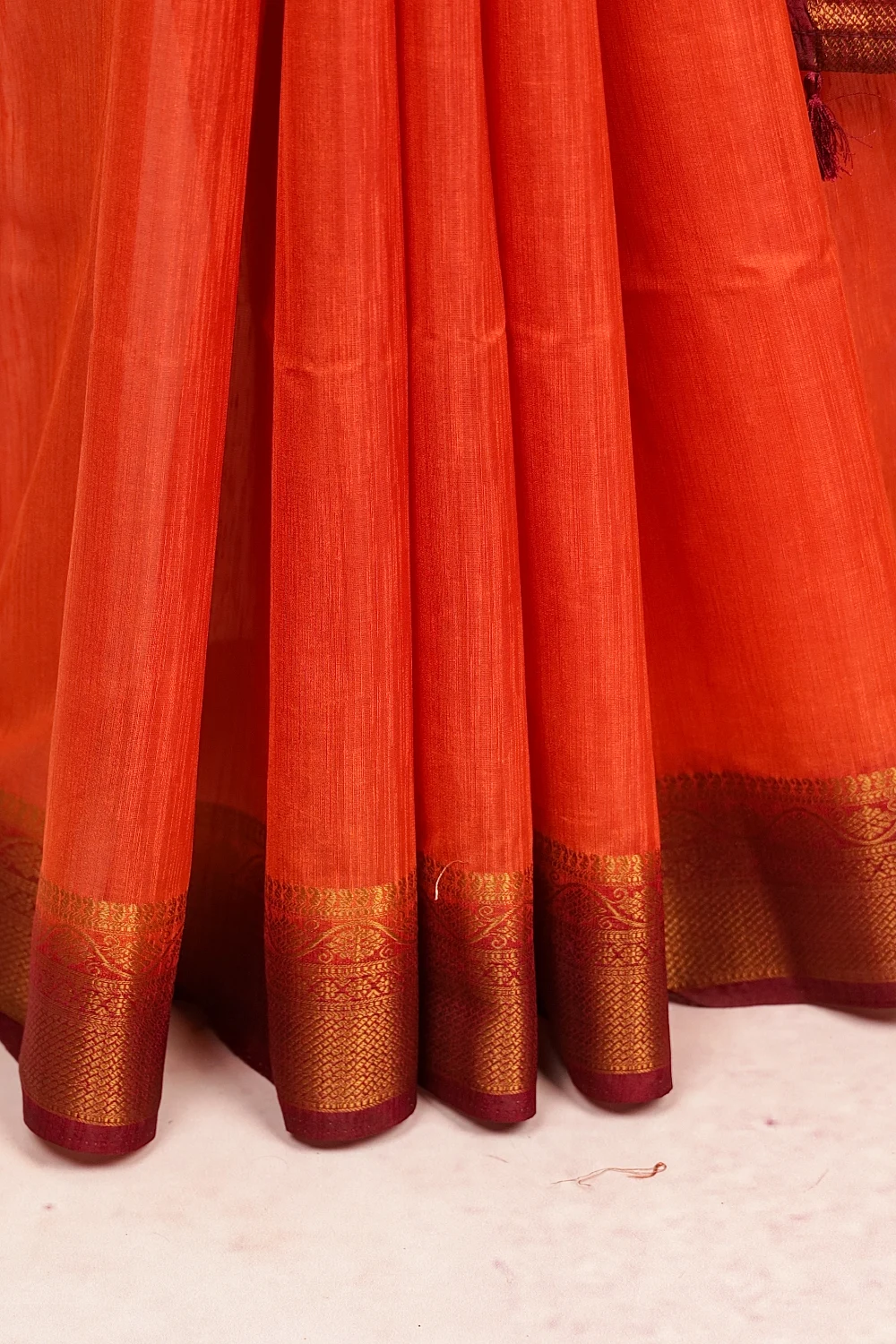 Burnt Orange Semi Jute Plain Saree With Designer Border. Includes Unstitched Blouse
