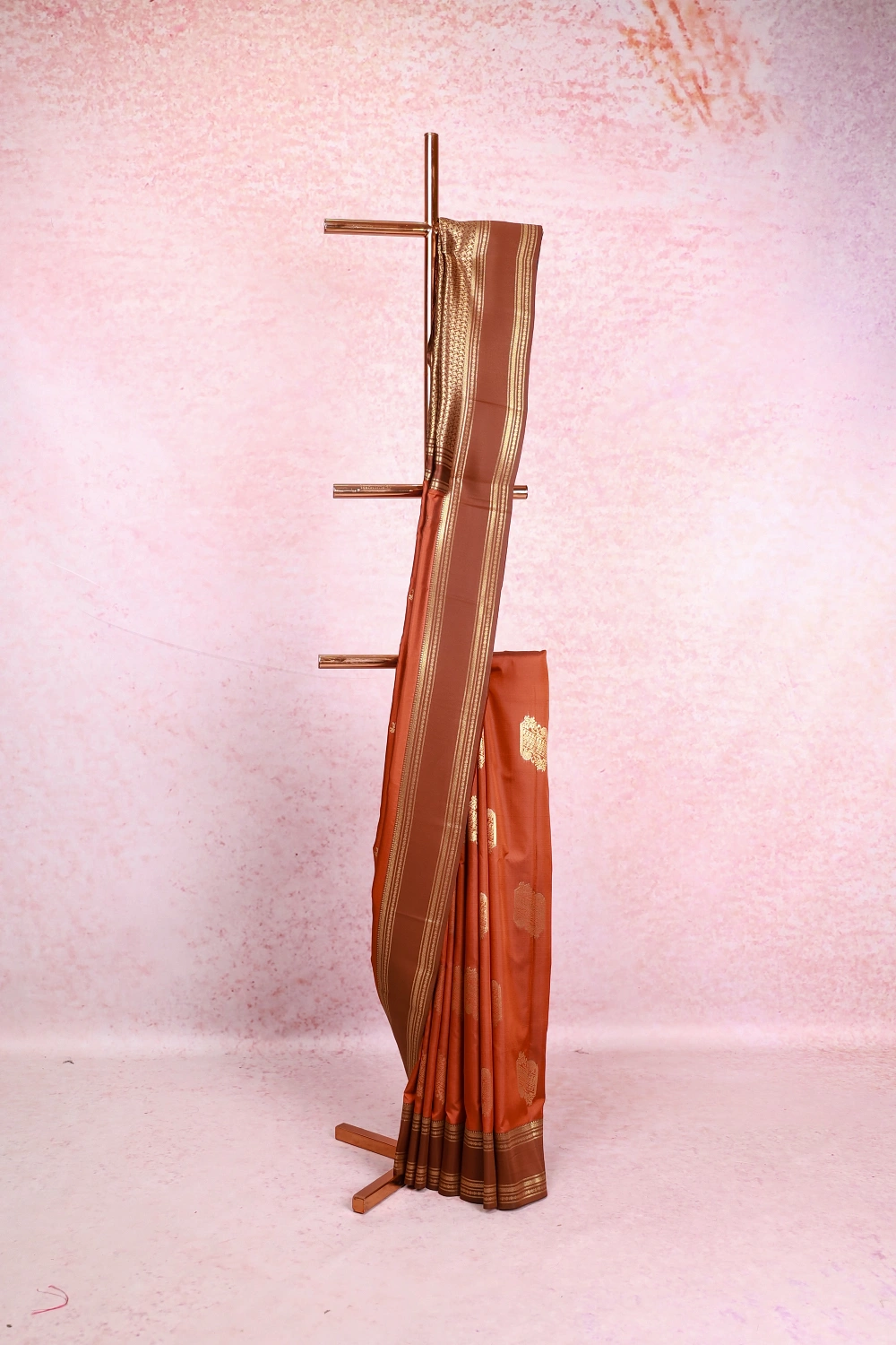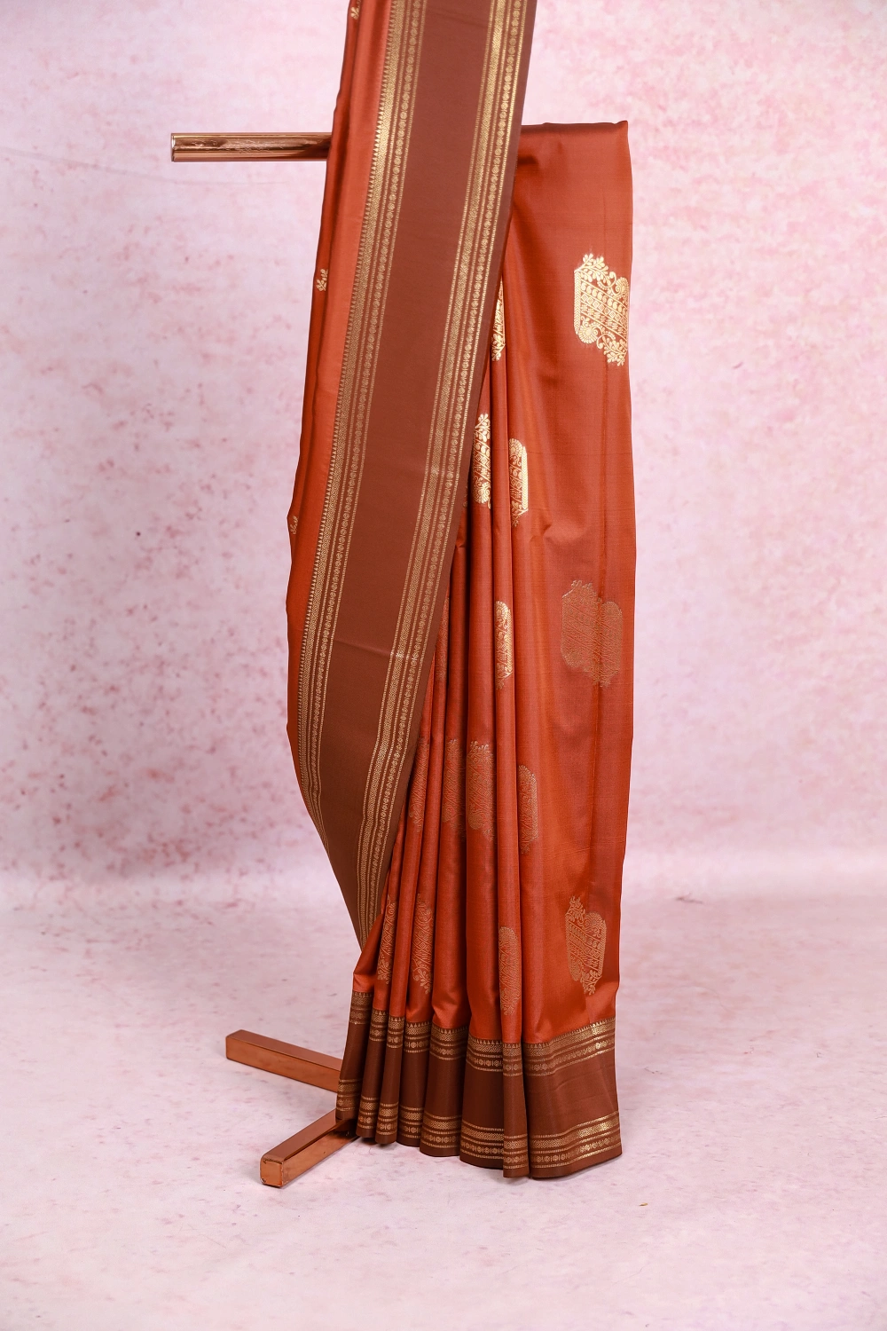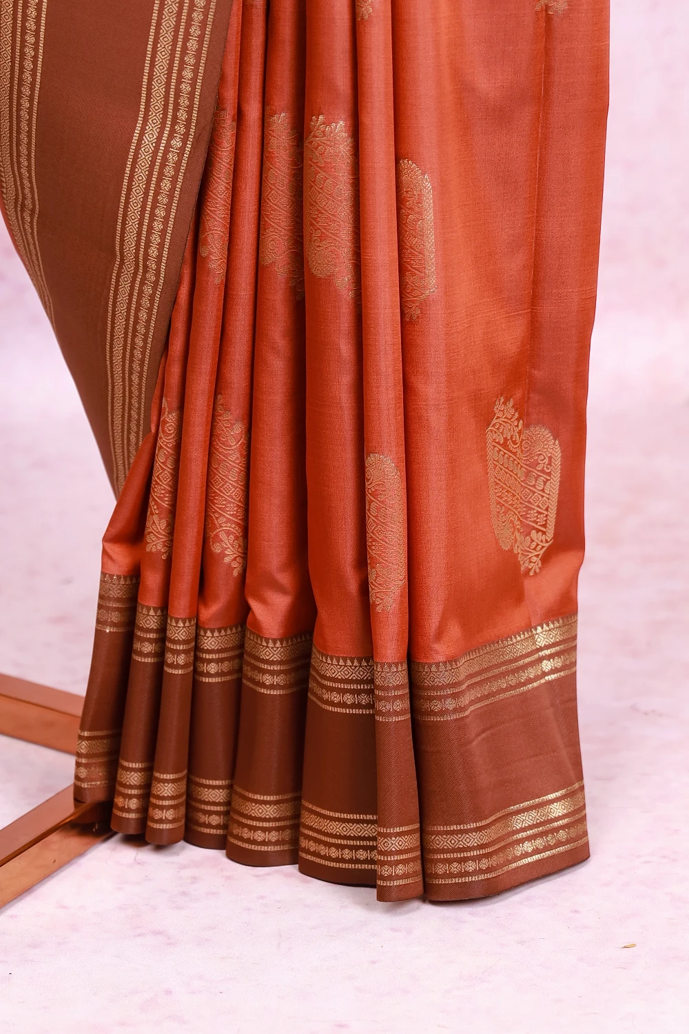 Burnt Orange Semi Silk Saree