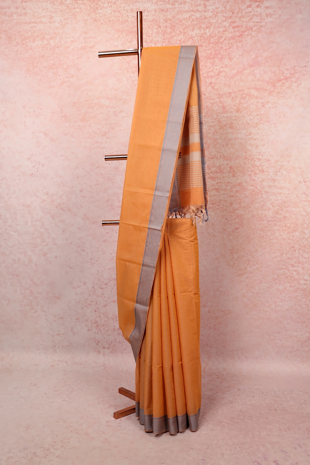 Carrot Color Pure Cotton Saree with Unstiched Blouse Piece
