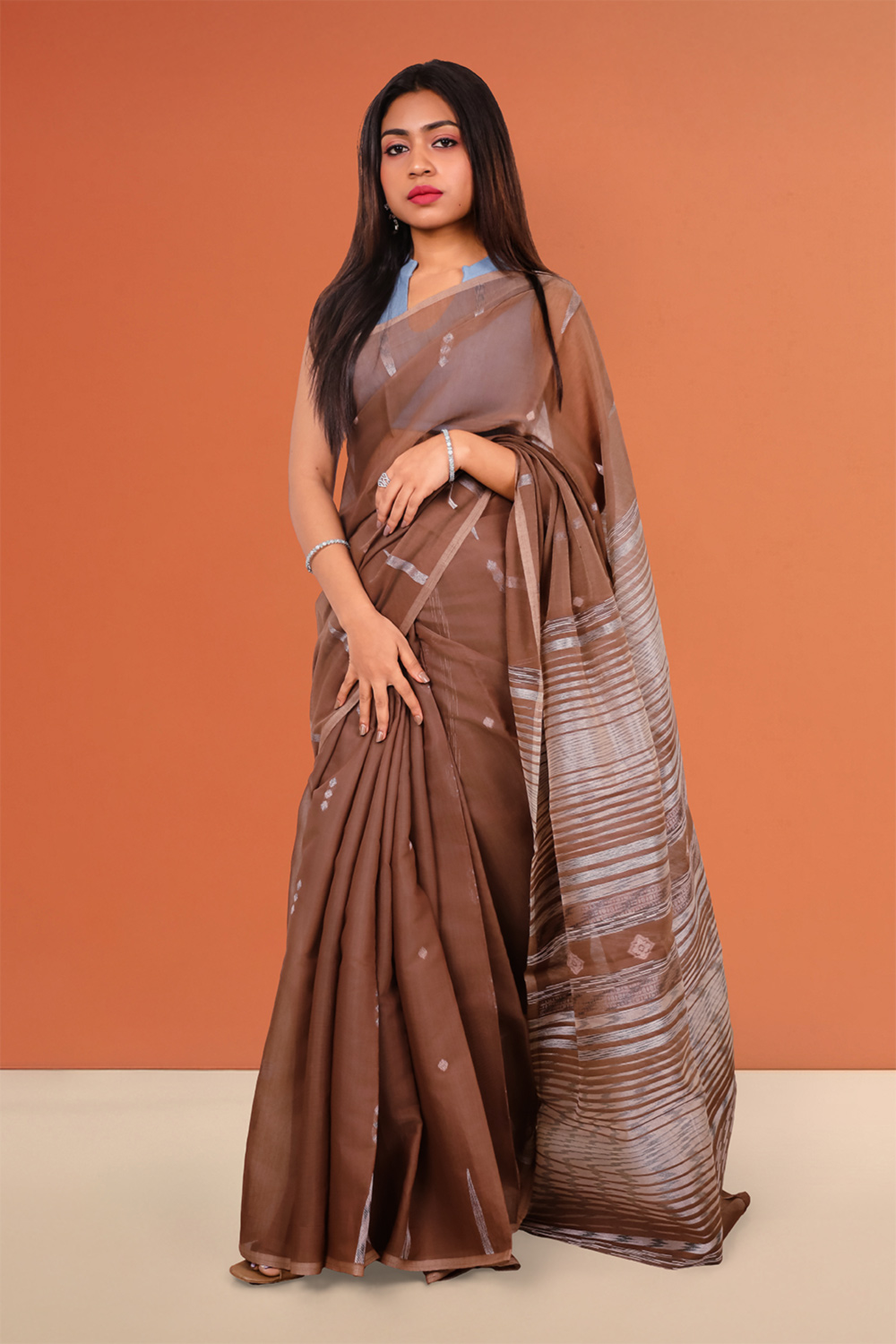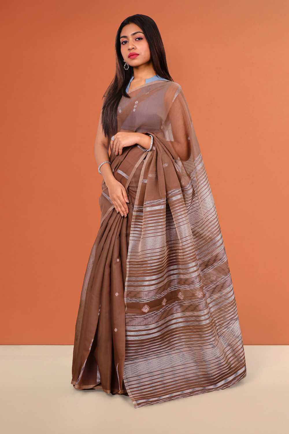 Chocolate Cotton Silk Saree