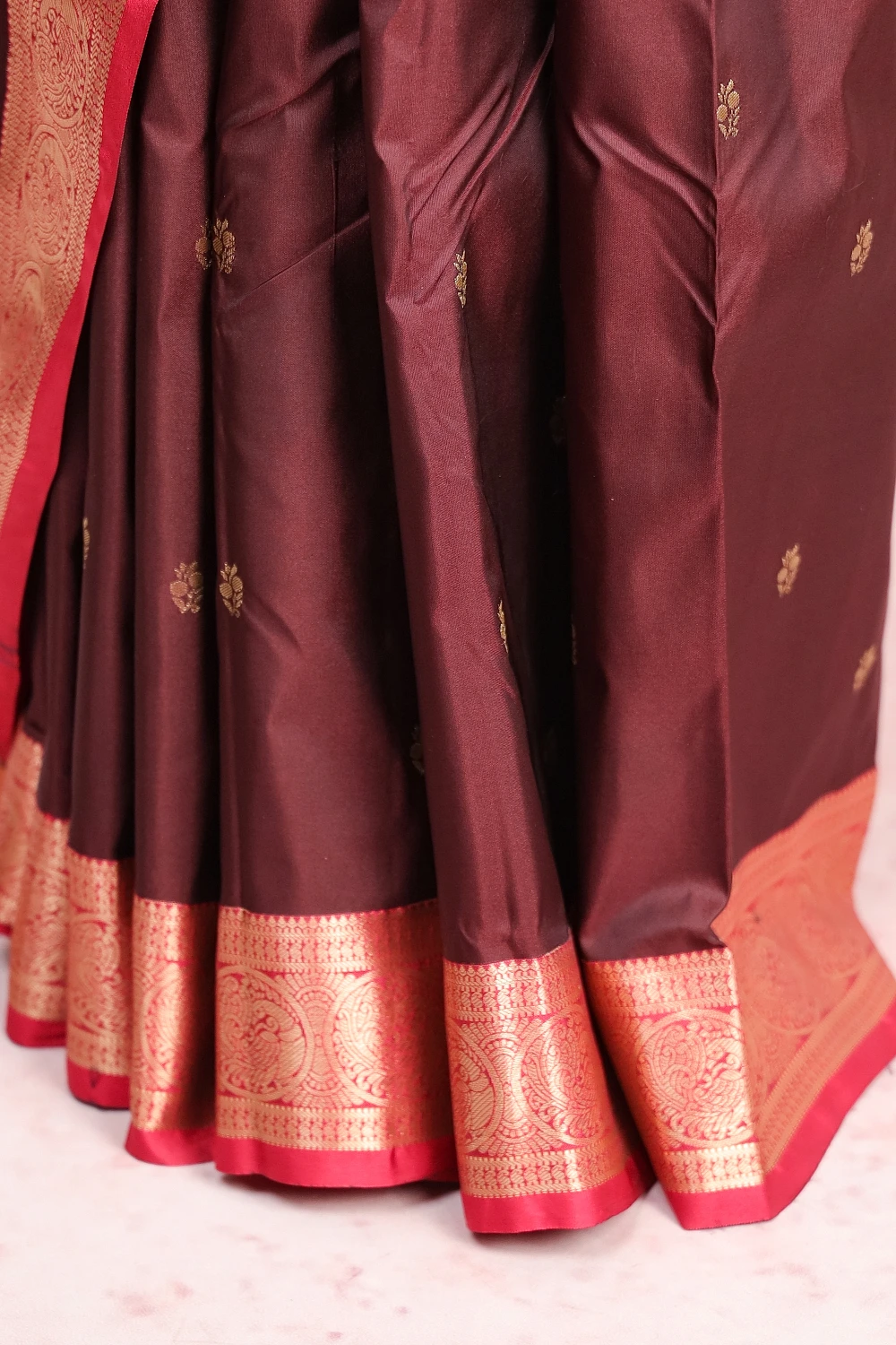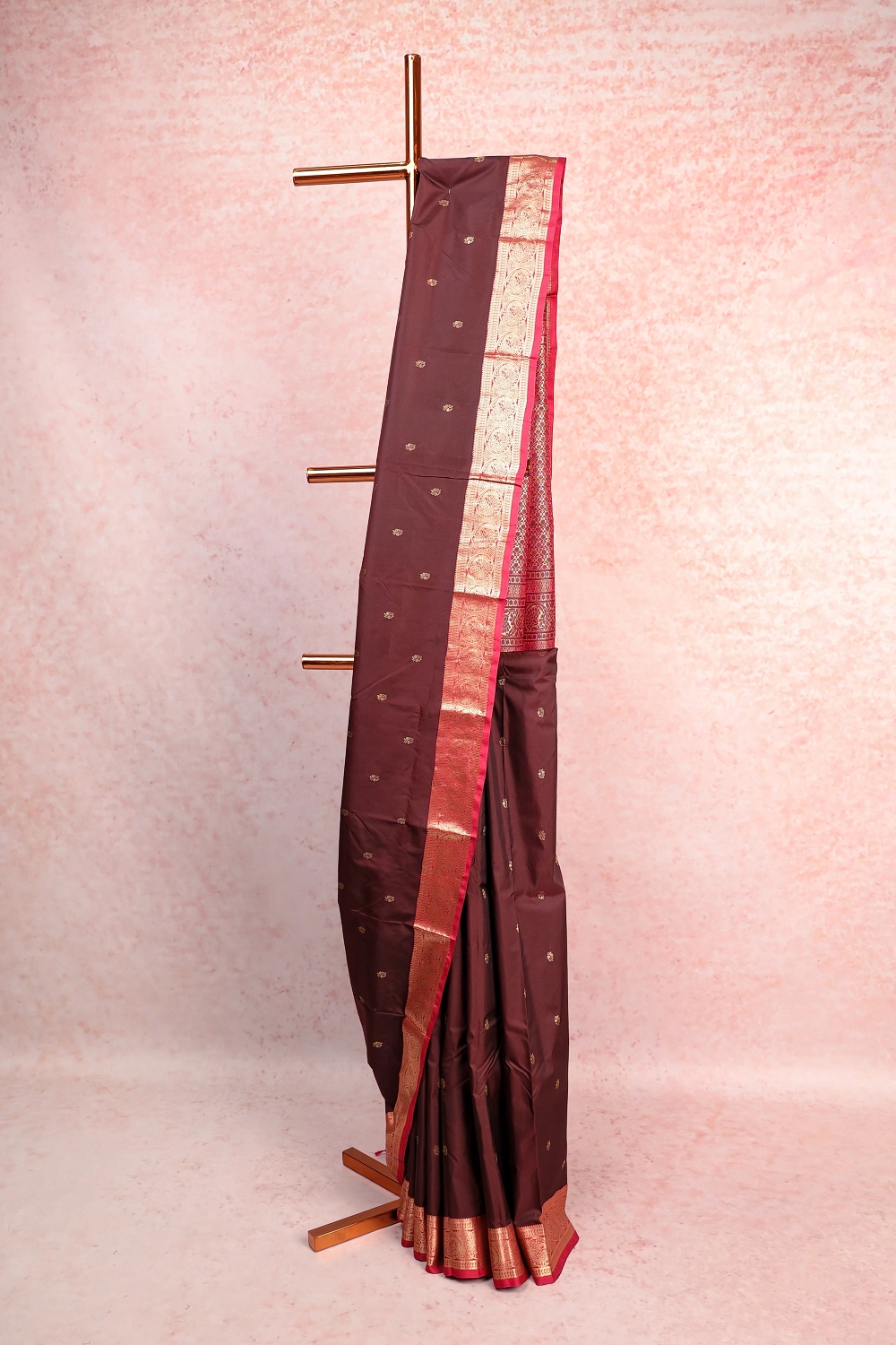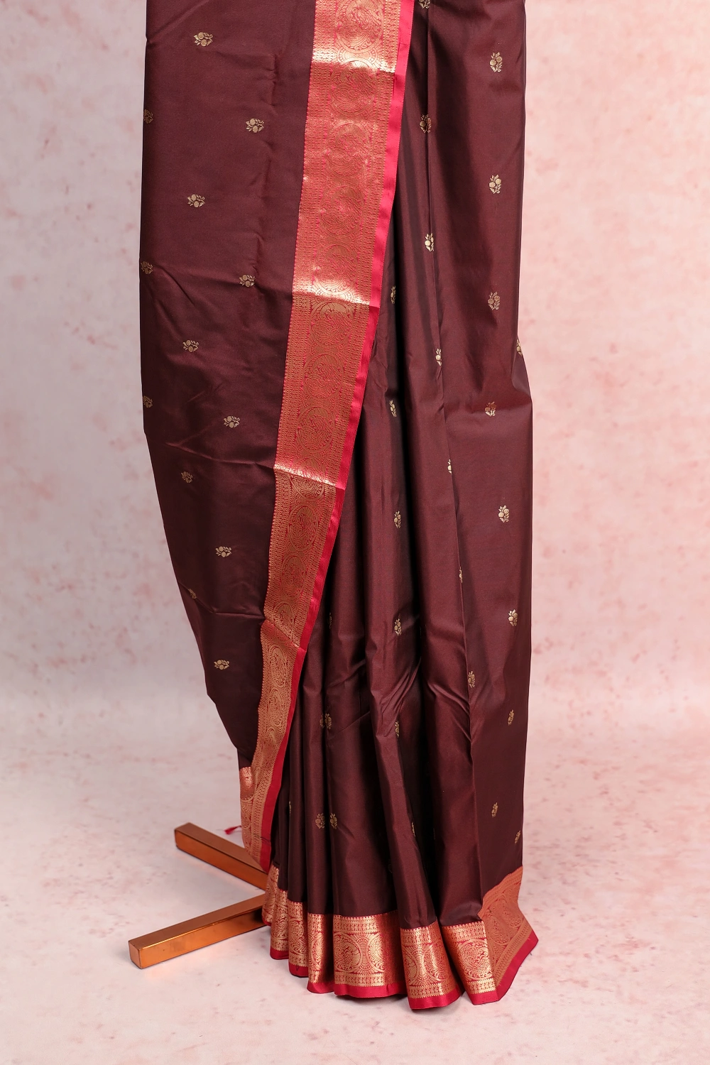 Coffee Brown Kancheepuram Semi Silk Butta Saree with Designer Border. Includes Un stitched Blouse