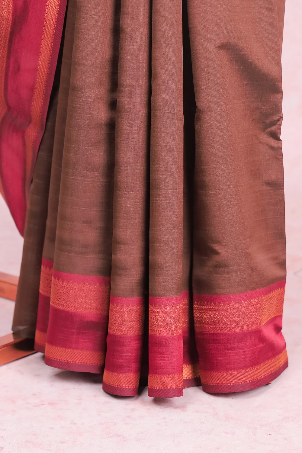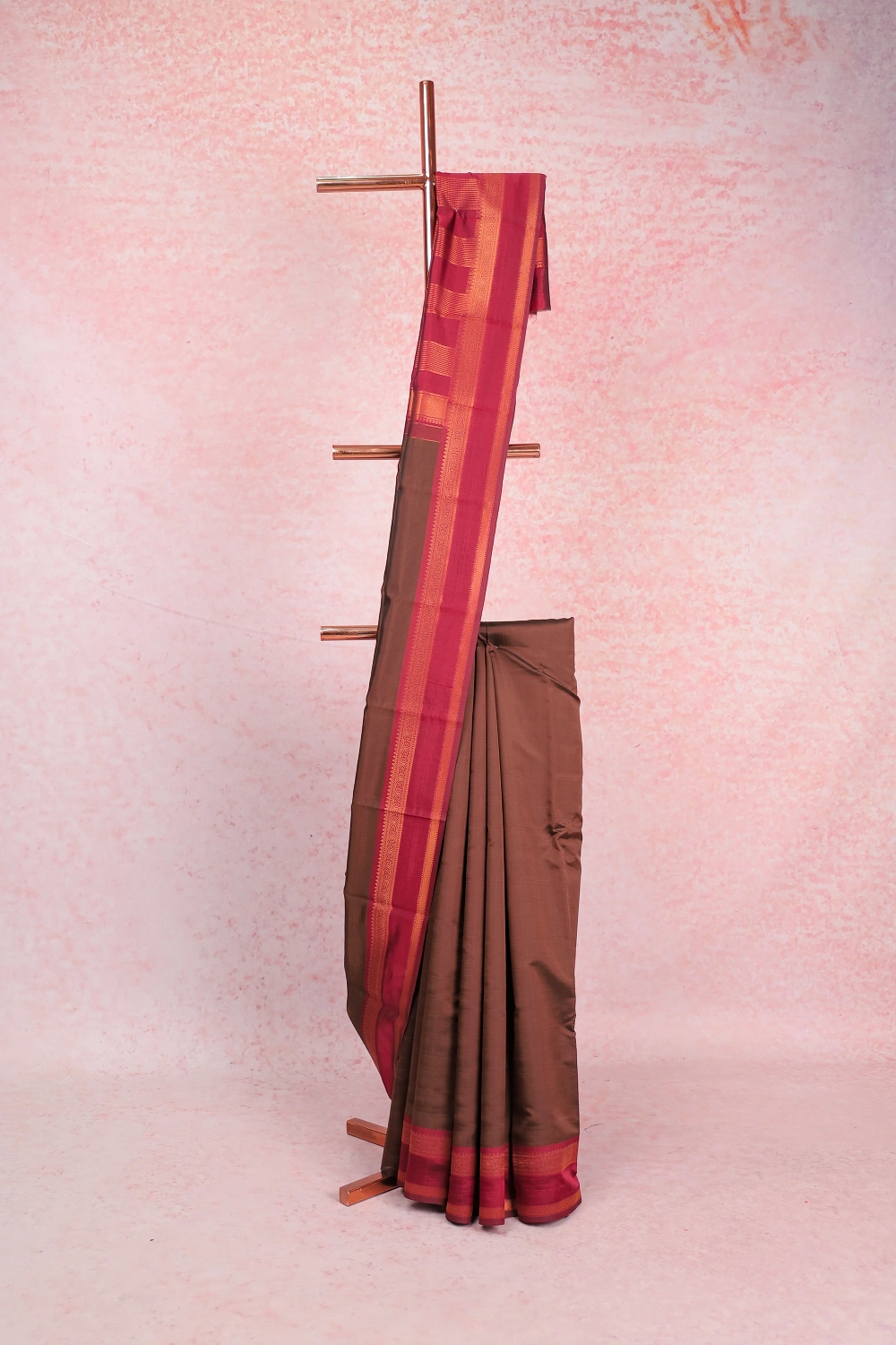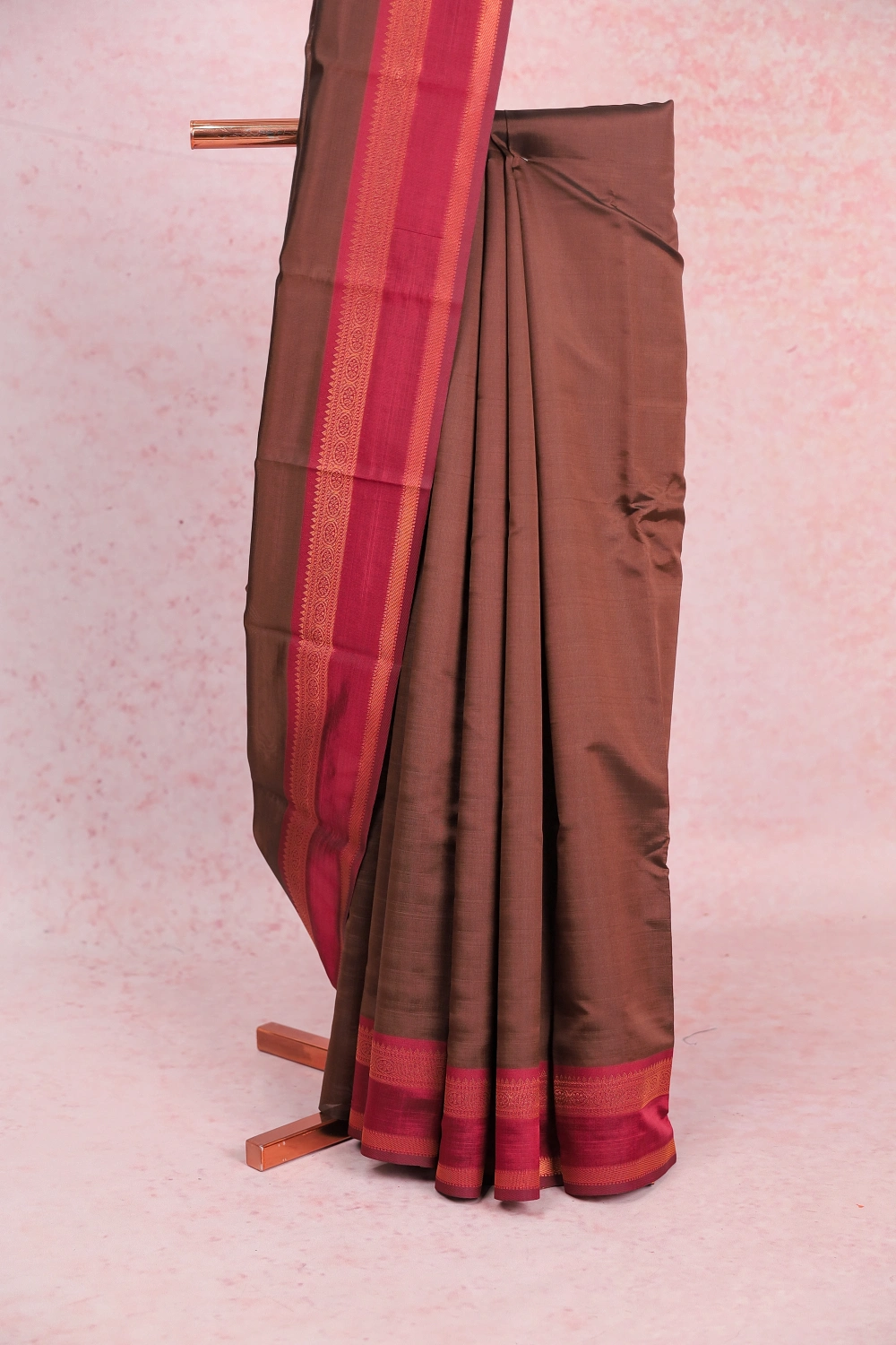 Coffee Brown Semi Silk Plain Saree with Designer Border. Includes Unstitched Blouse