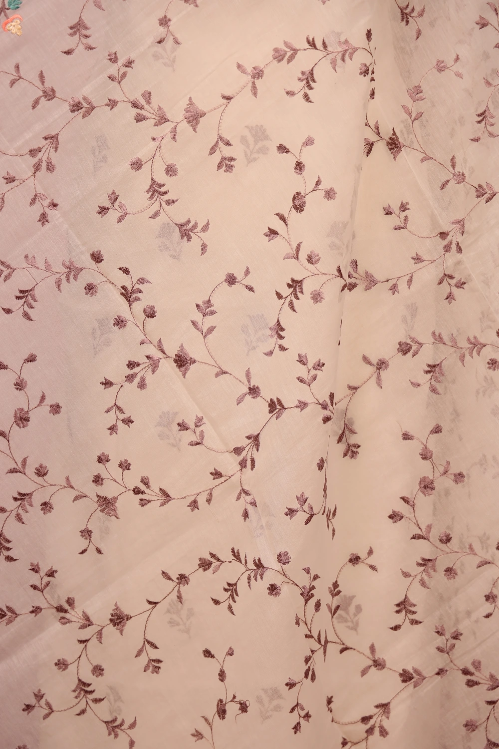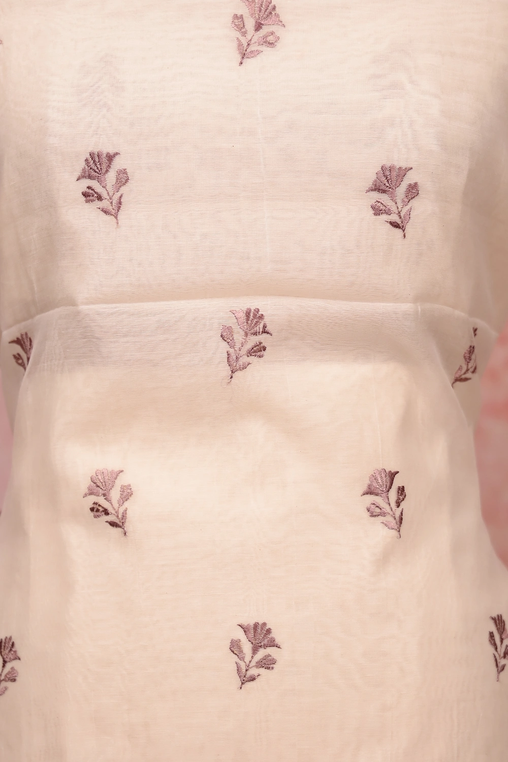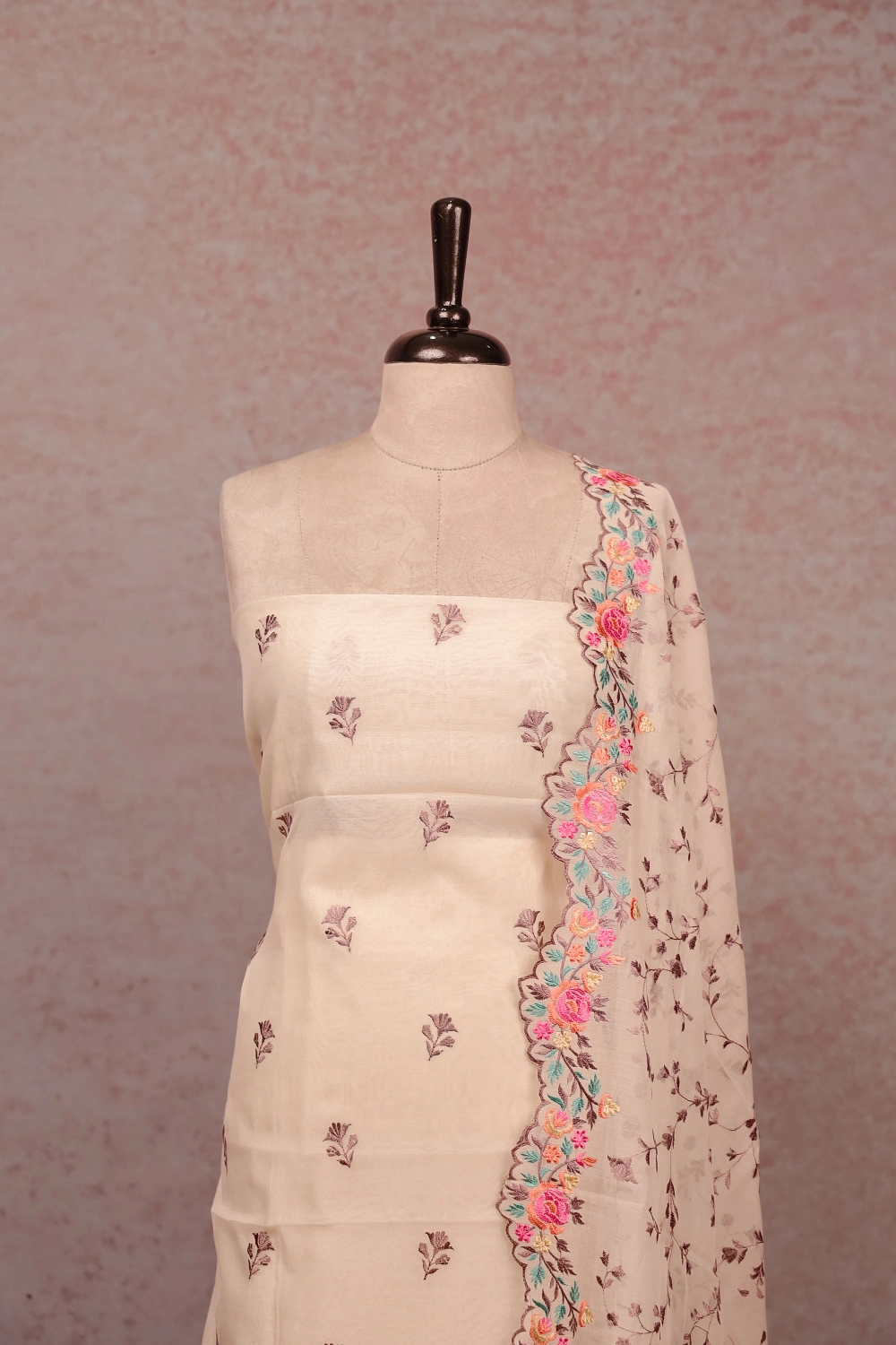 Cream Chanderi Embroidery Unstitched Churidar Material. Includes Dupatta.