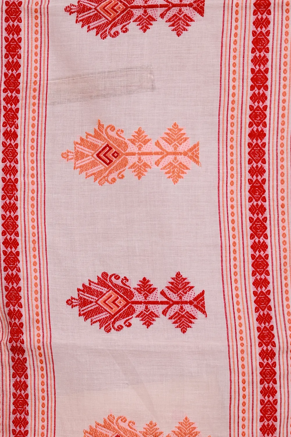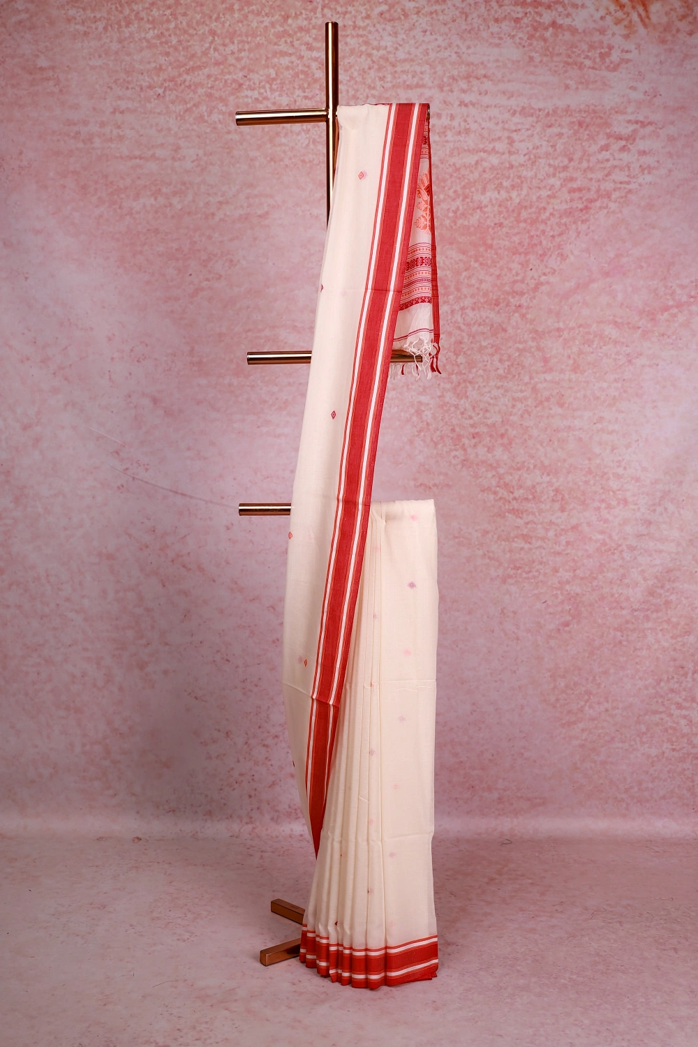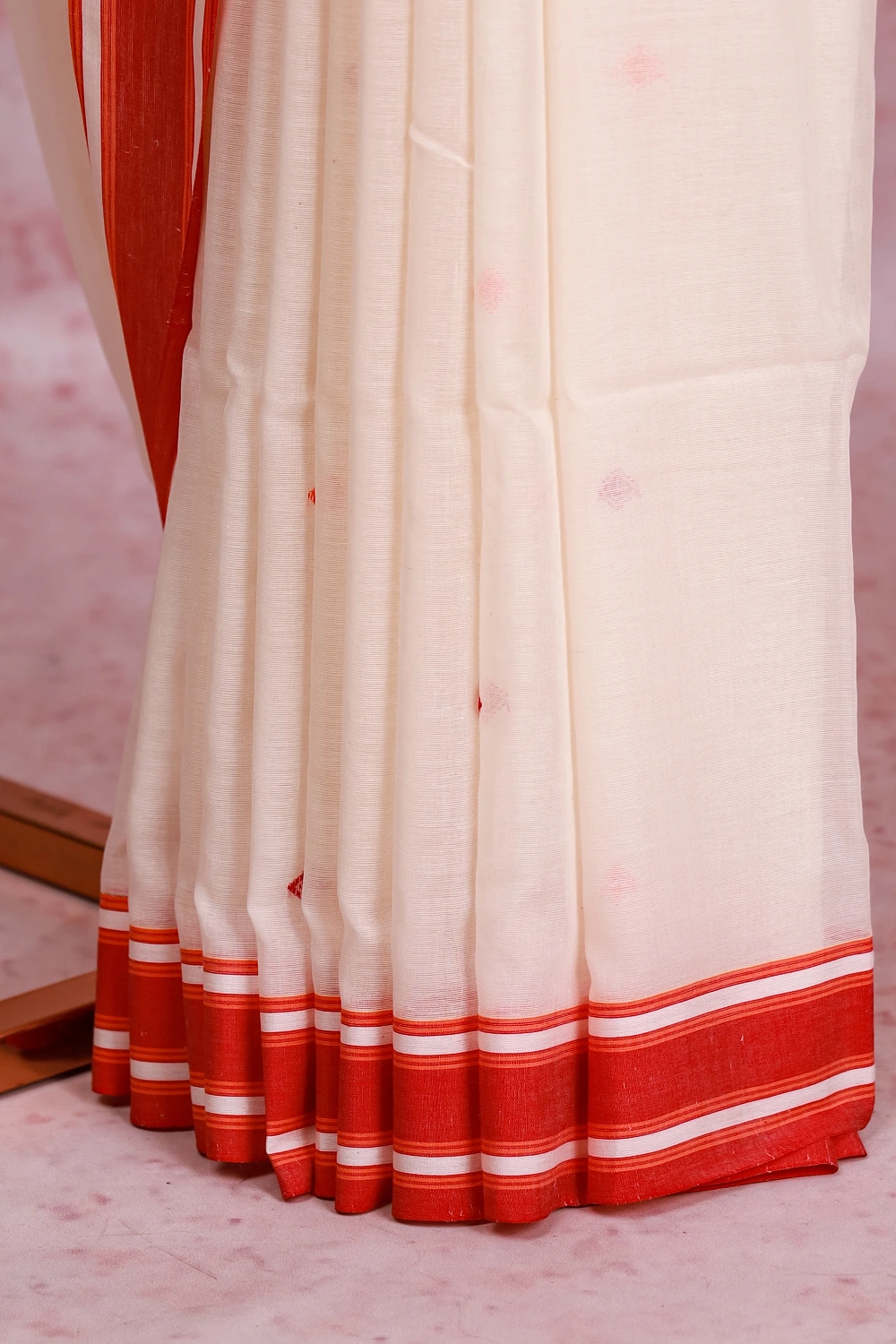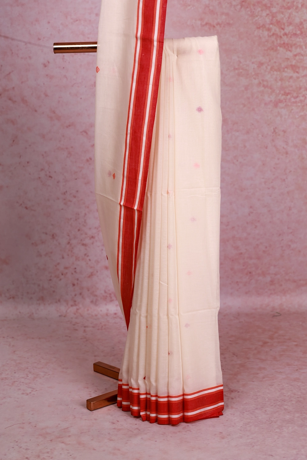 Cream Cotton Thread Butta Saree With Contrast Colour Border.Includes Un Stitched Blouse
