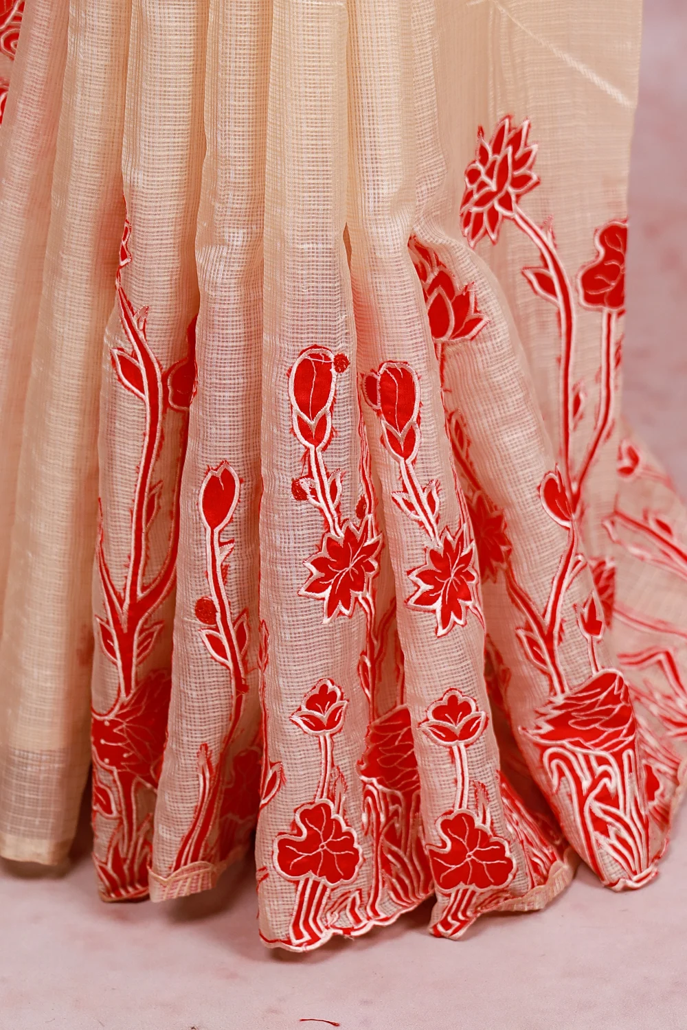 Cream Linen Kota Saree