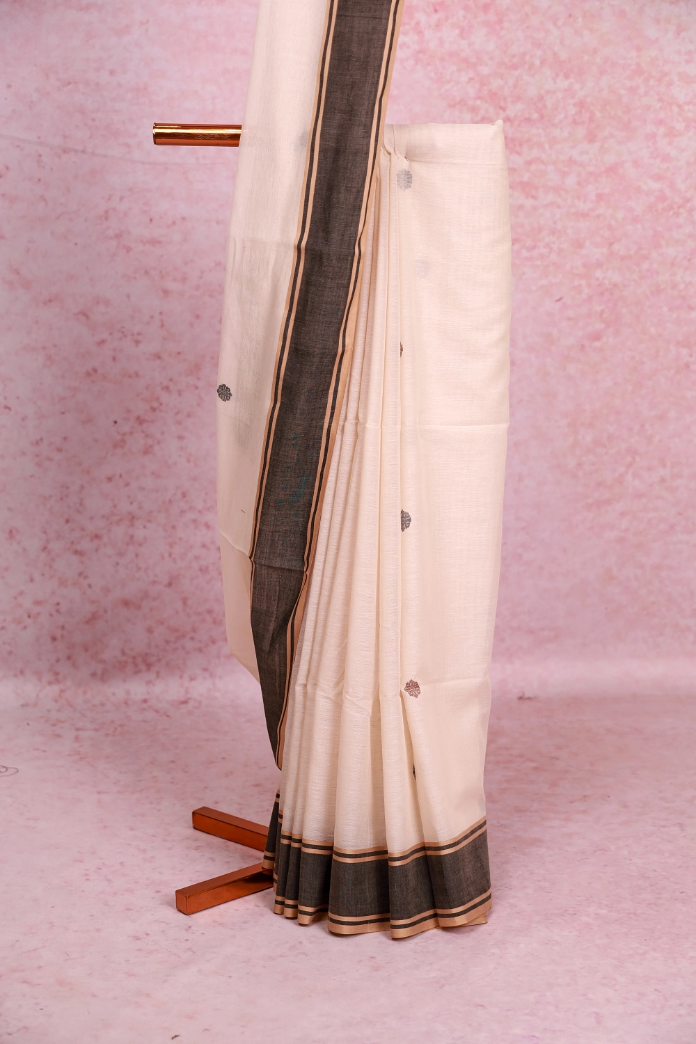 Cream Mul Cotton Saree