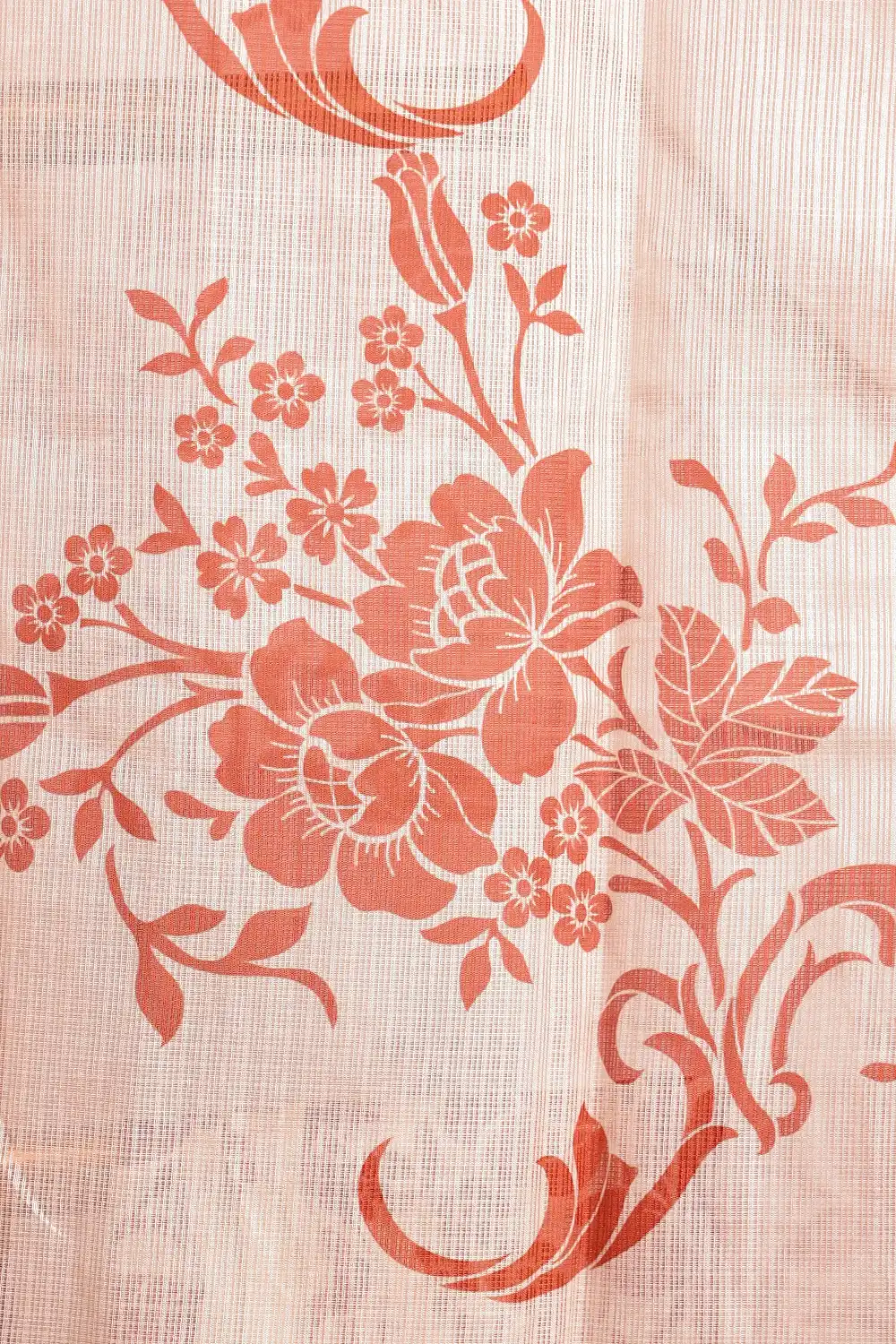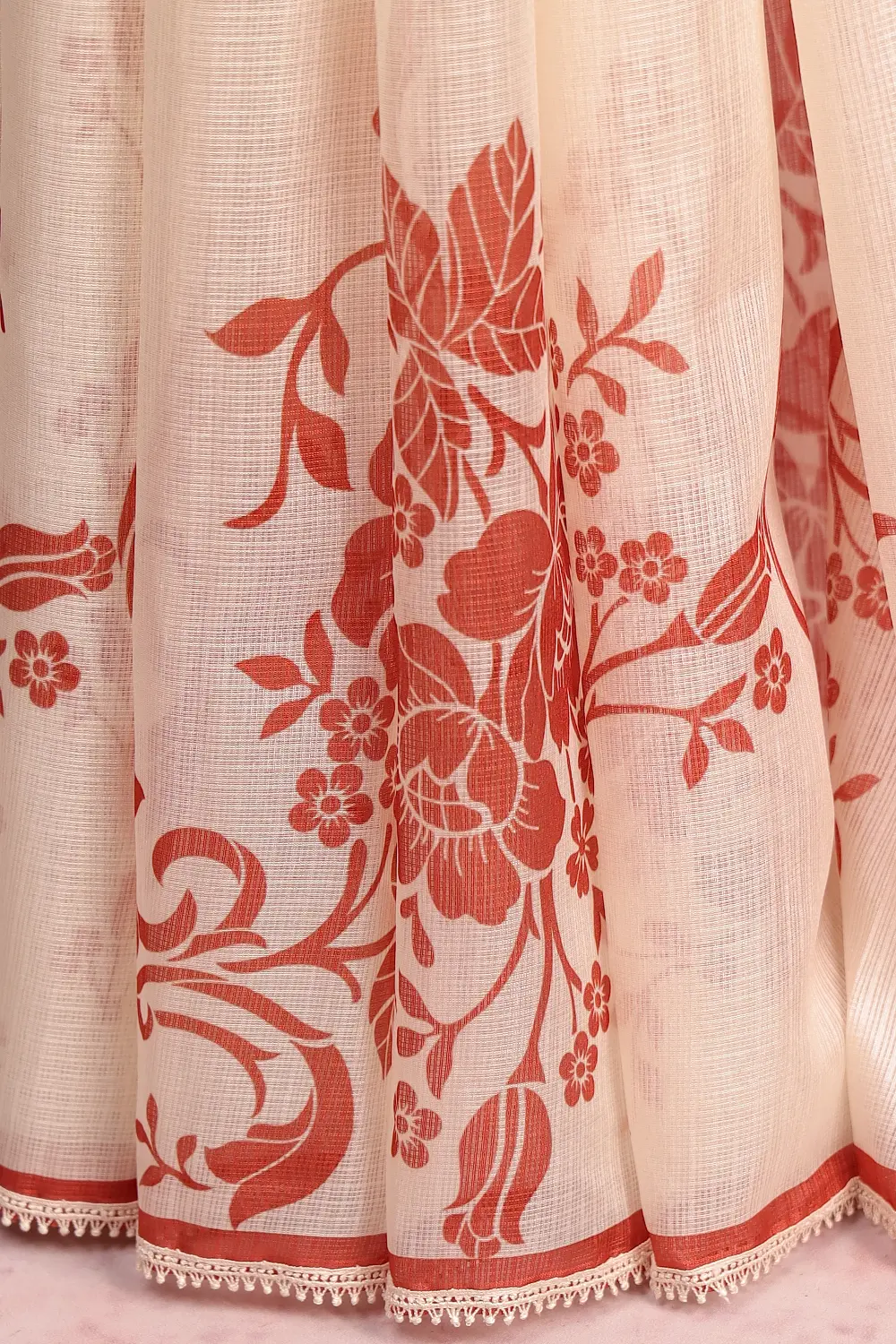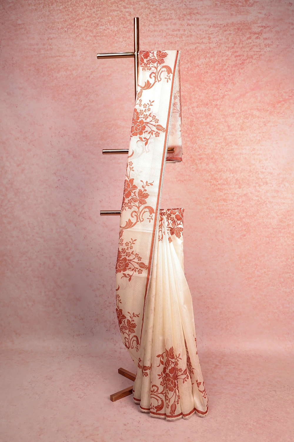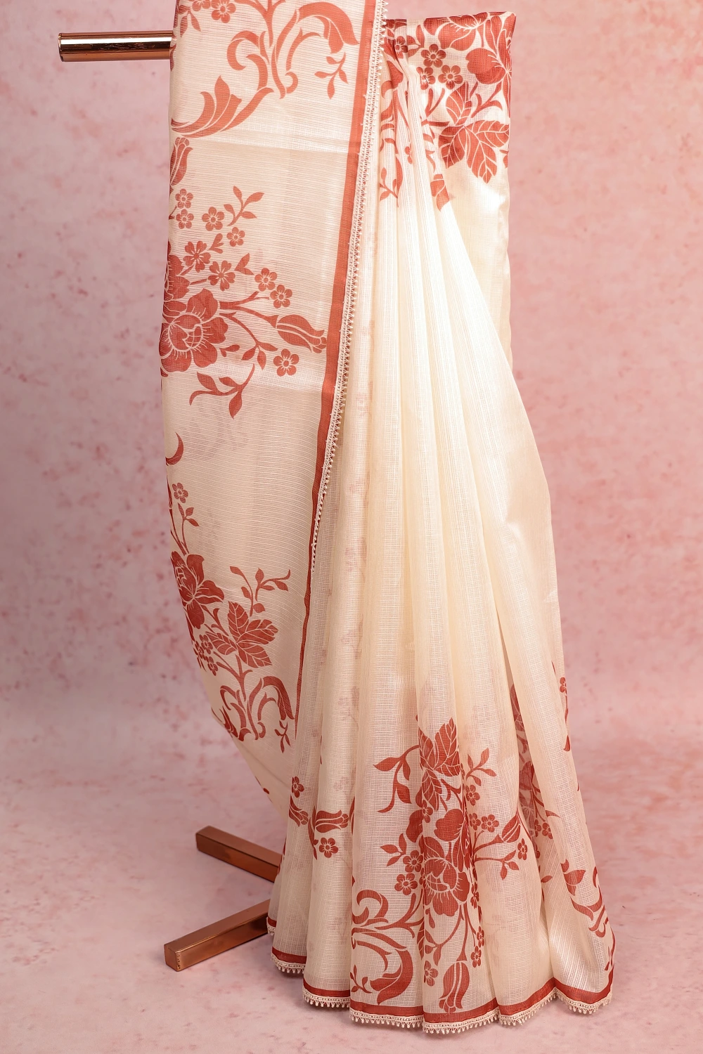 Cream Net Kota Printed with Self Border. Includes Un stitched Blouse