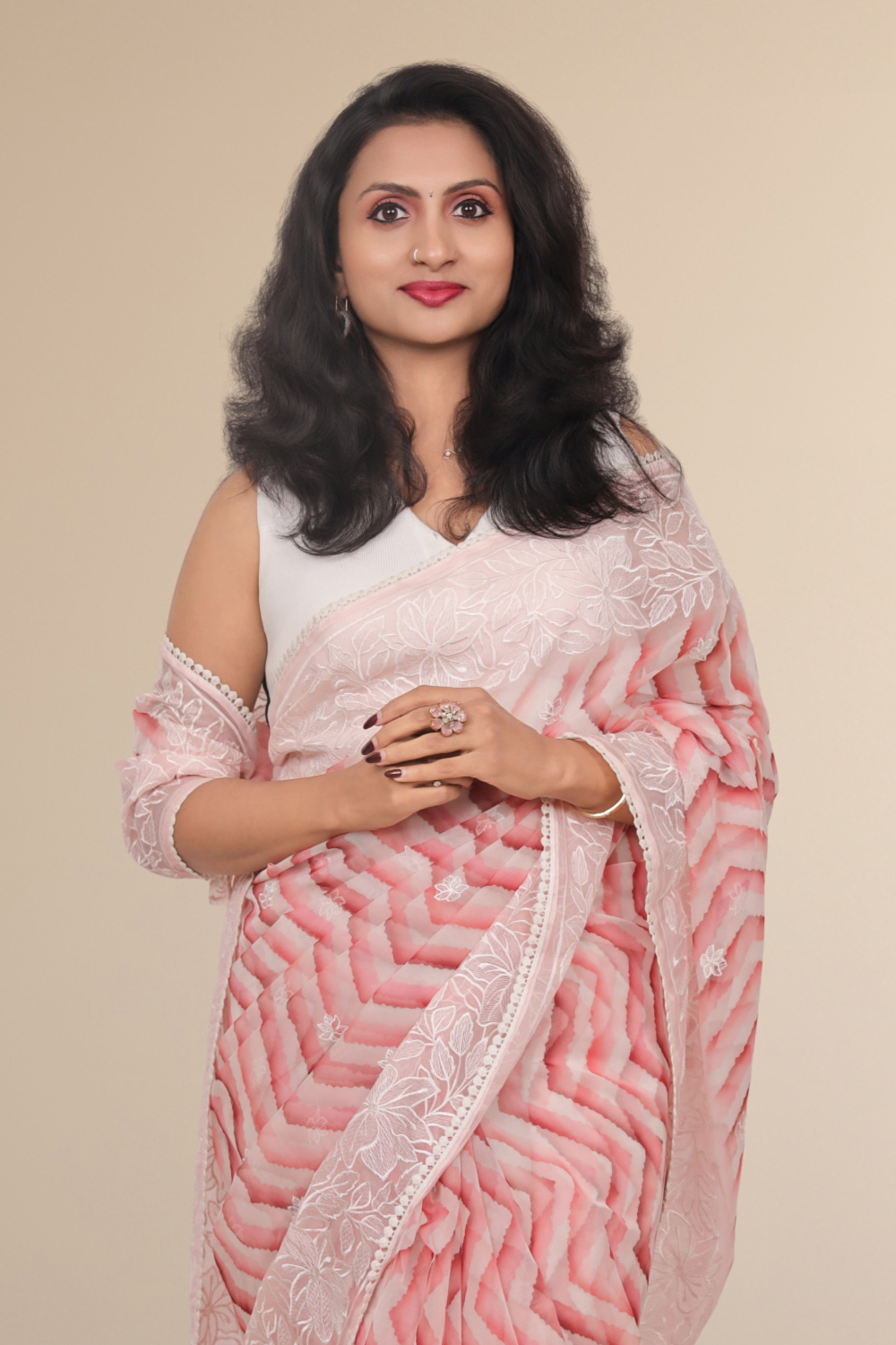 Cream Organza Saree