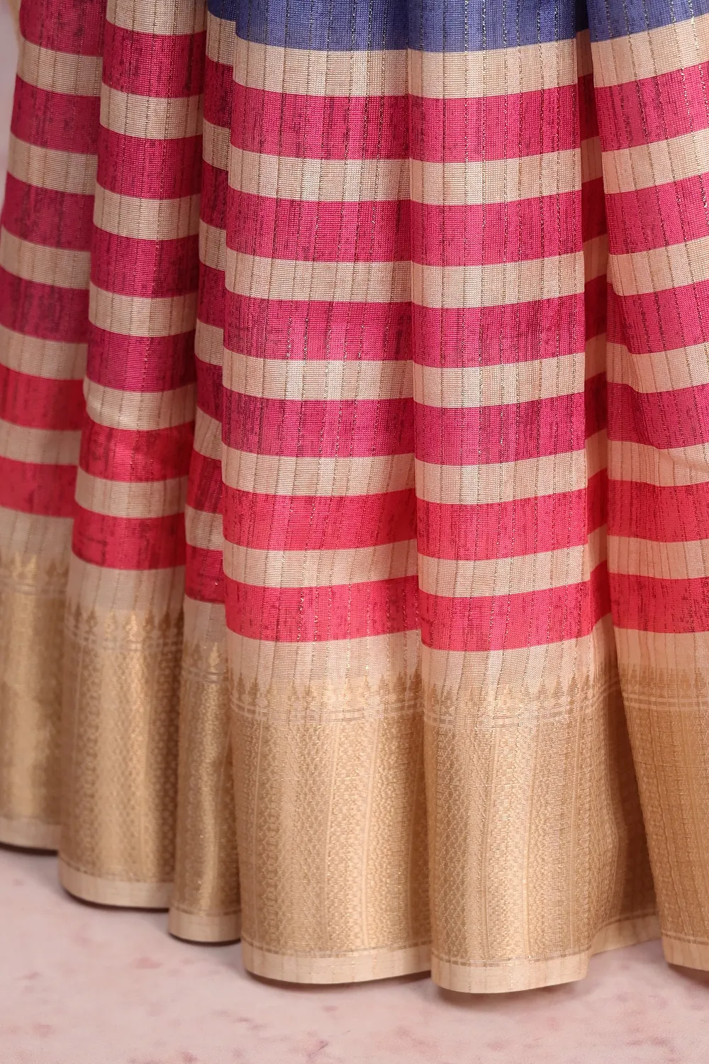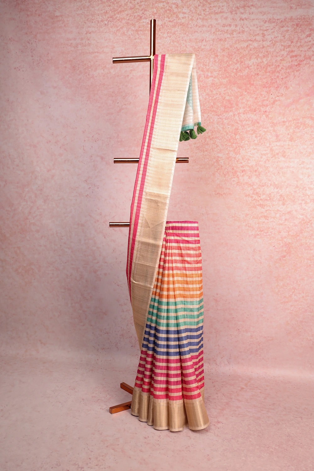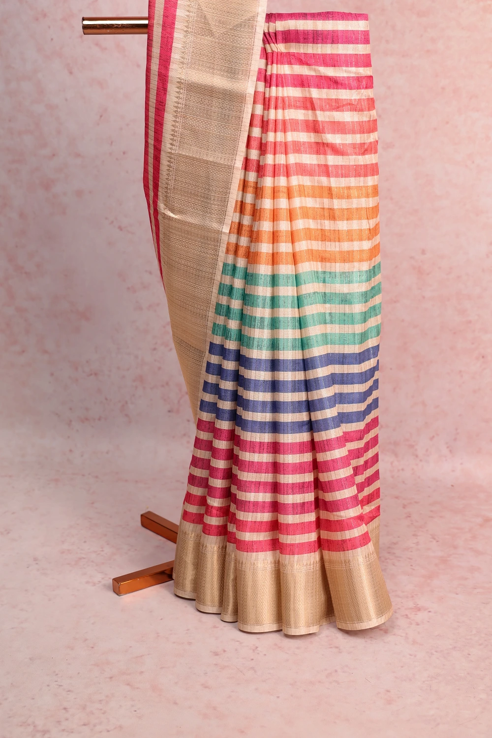 Cream Semi Jute Lines Saree with Self Border. Includes Un stitched Blouse