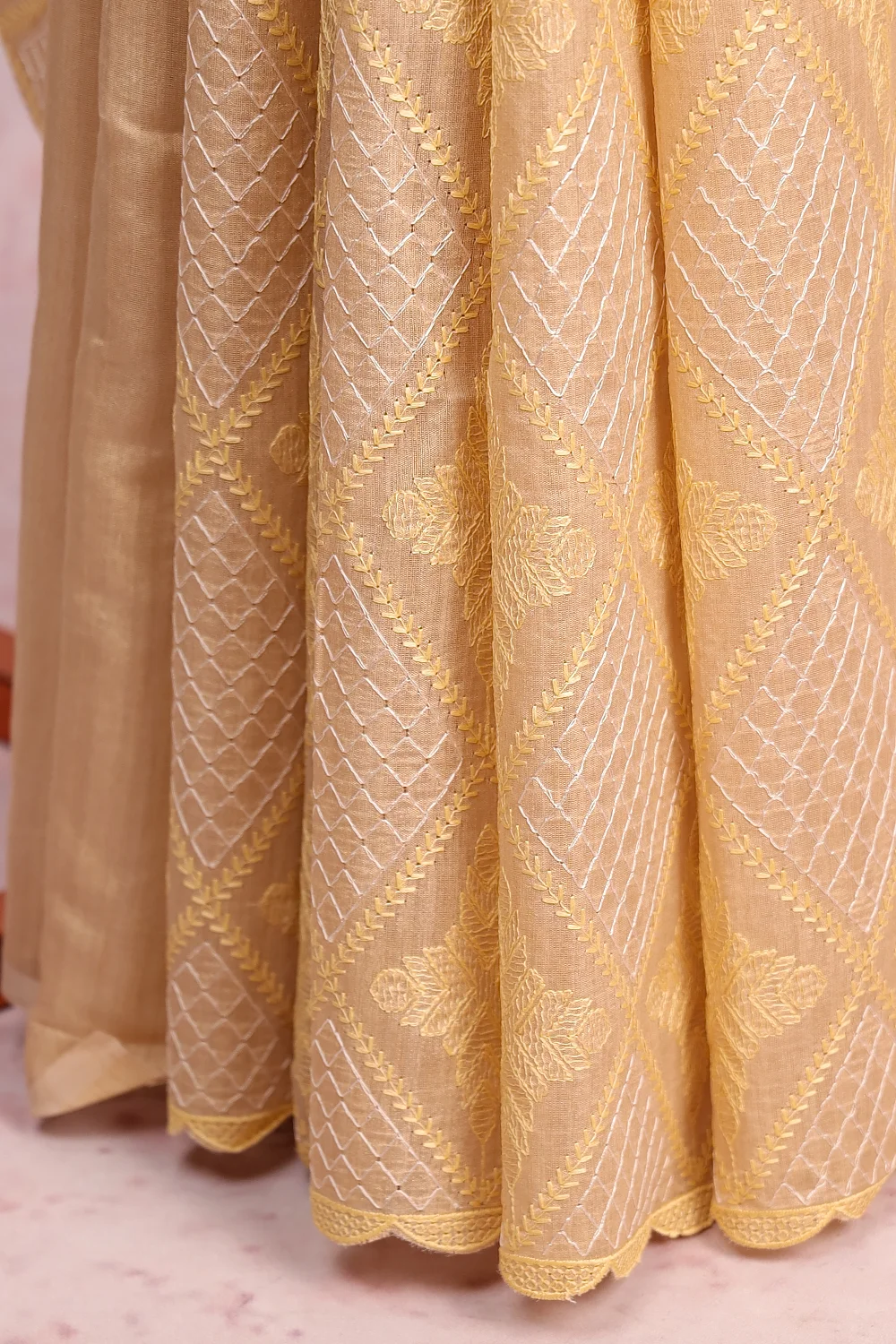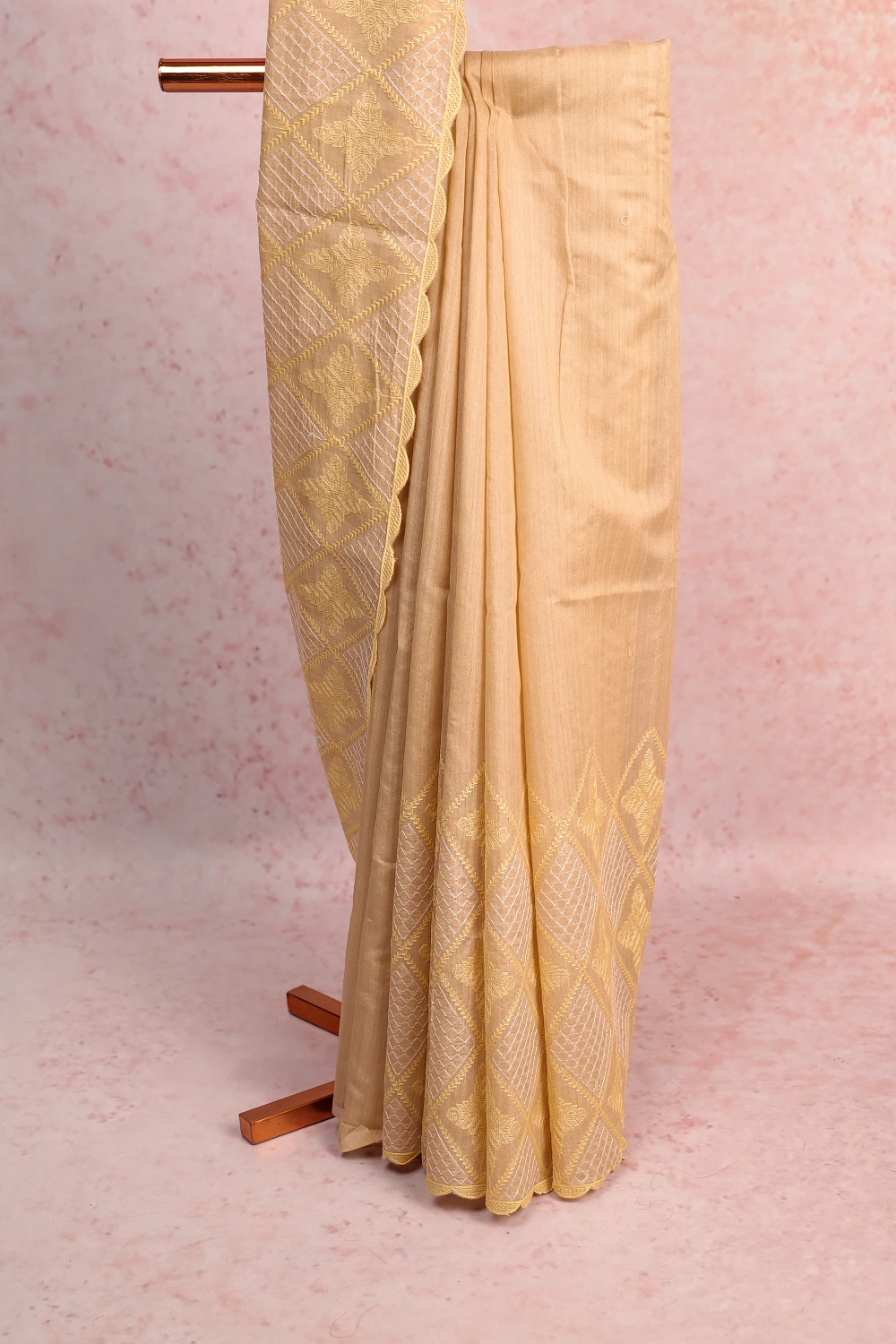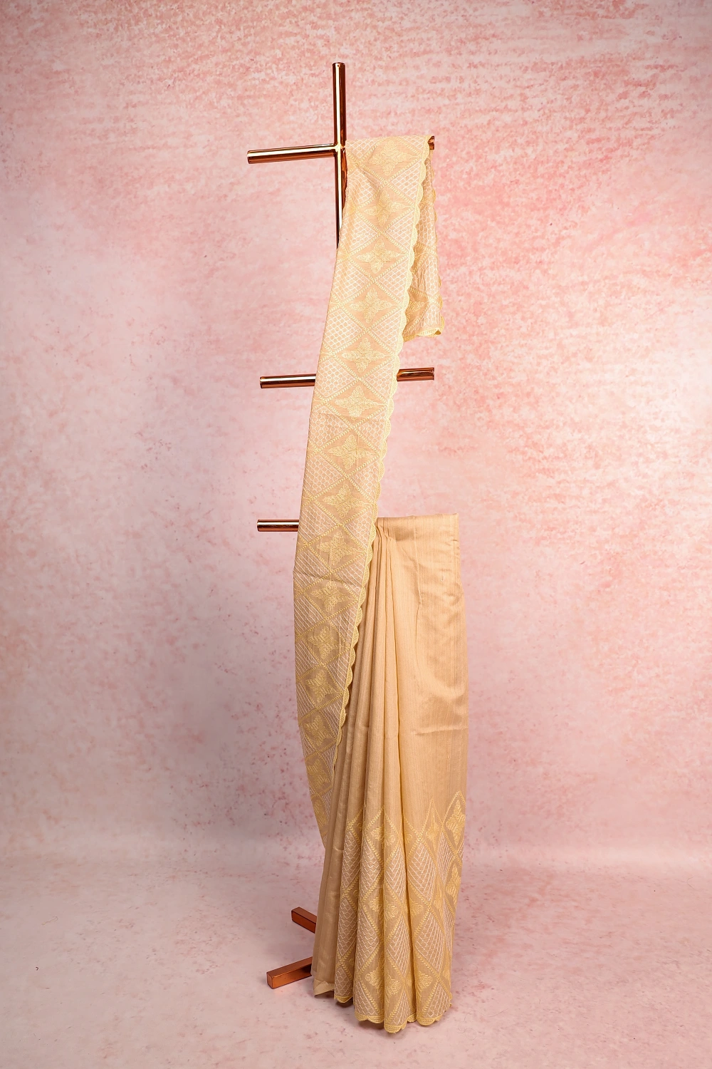 Cream Semi Jute Embroidary Saree with Self Border. Includes Un stitched Blouse