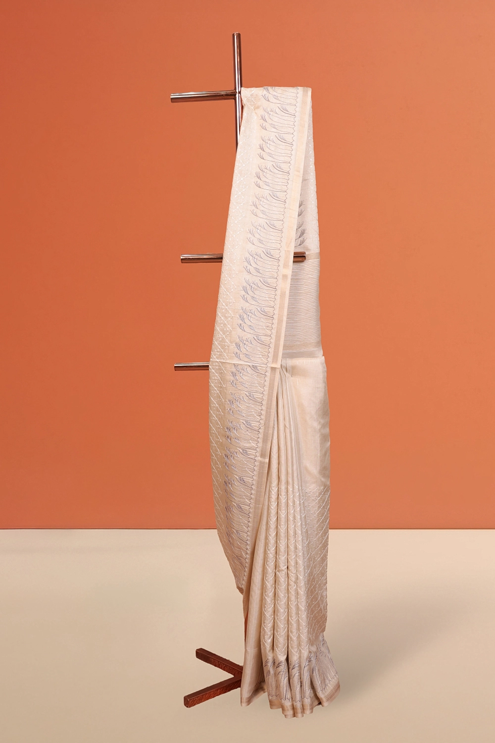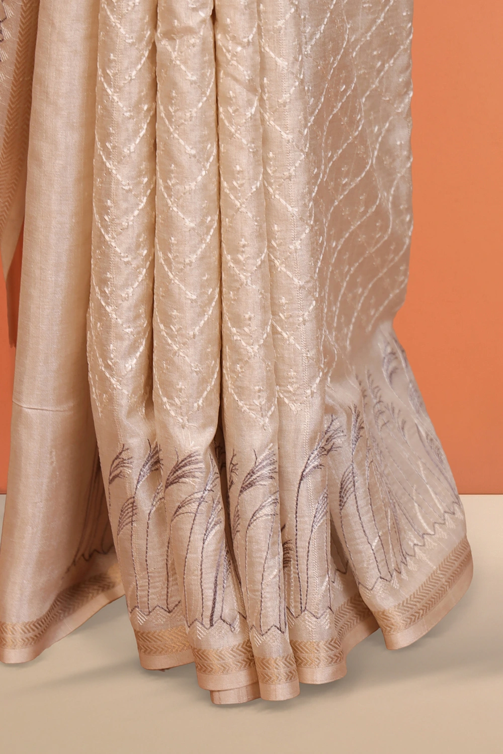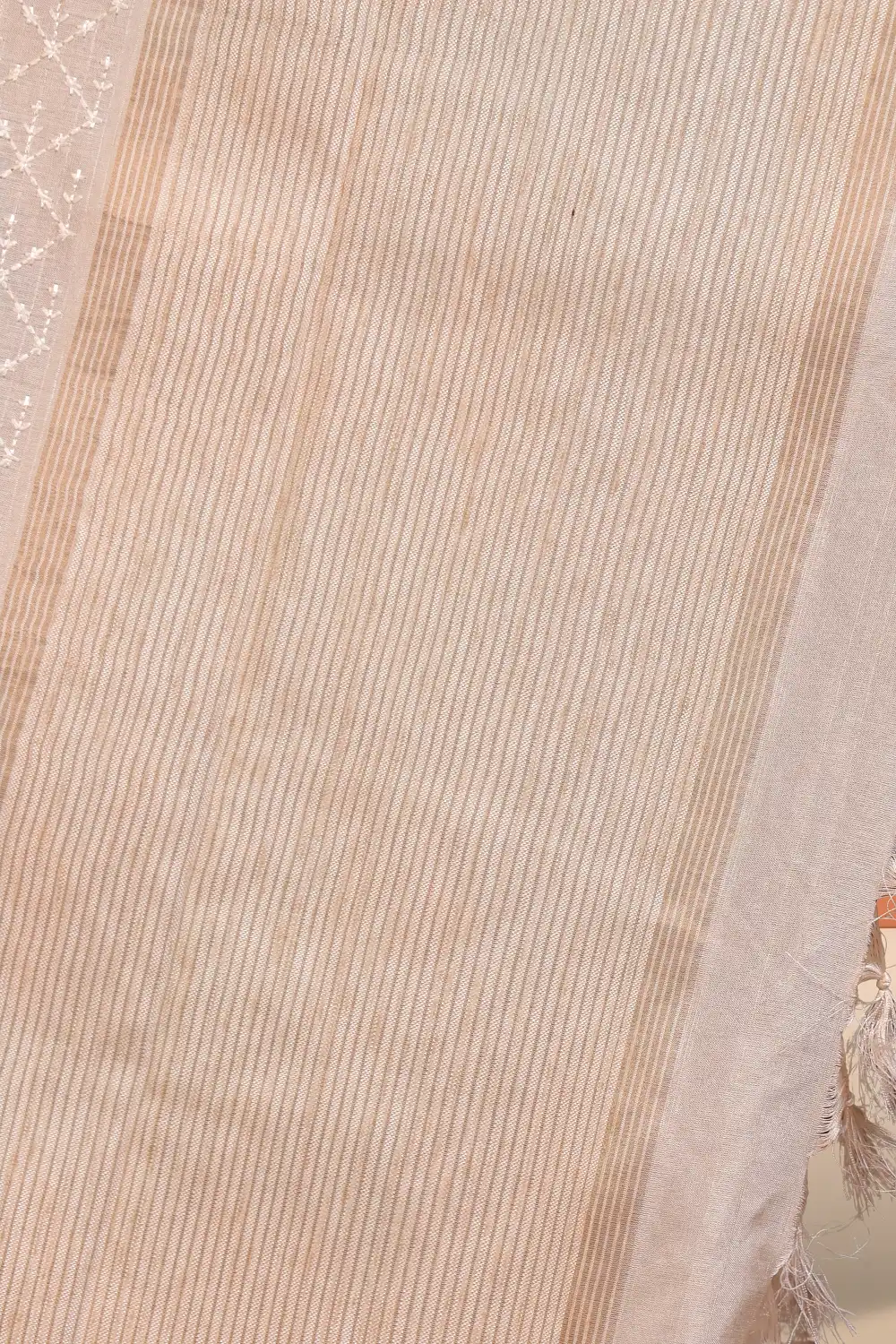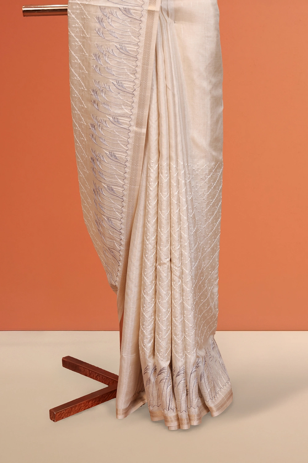 Cream Semi Jute Embroidary Saree With Small Border. Includes Unstitched Blouse