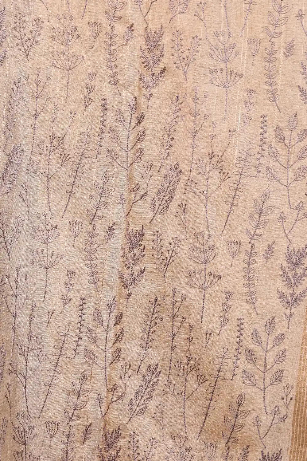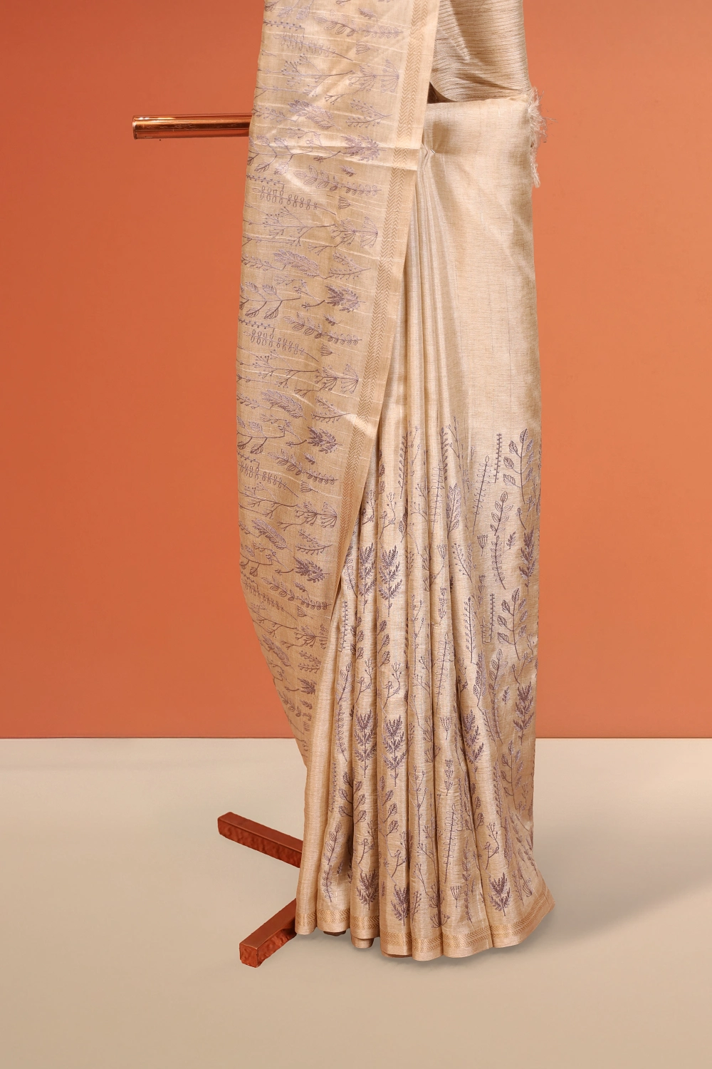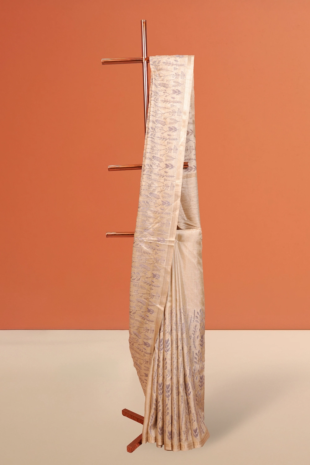 Cream Semi Jute Embroidary Saree With Small Border. Includes Unstitched Blouse