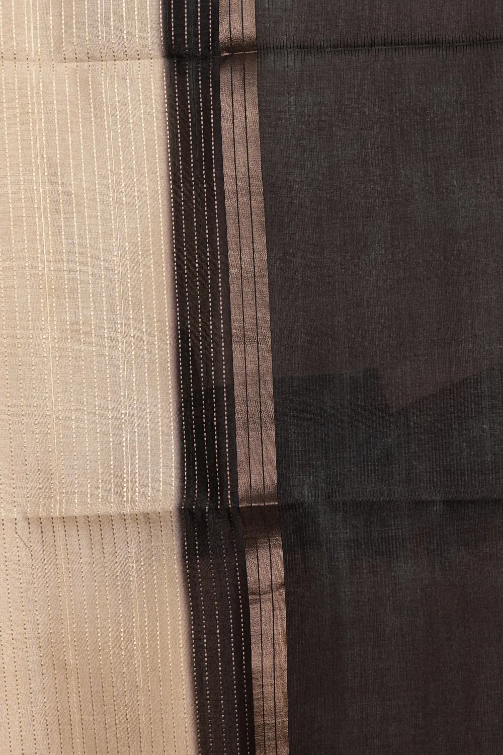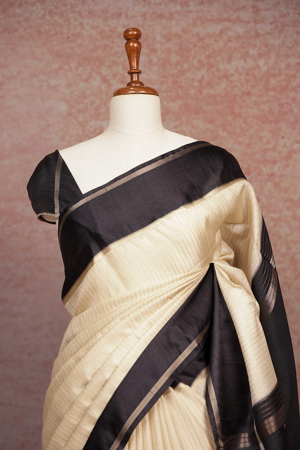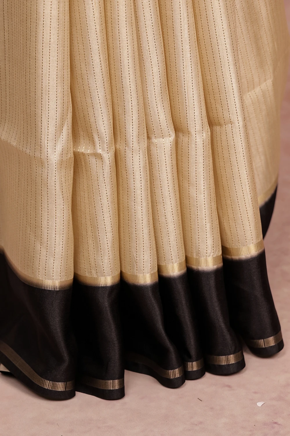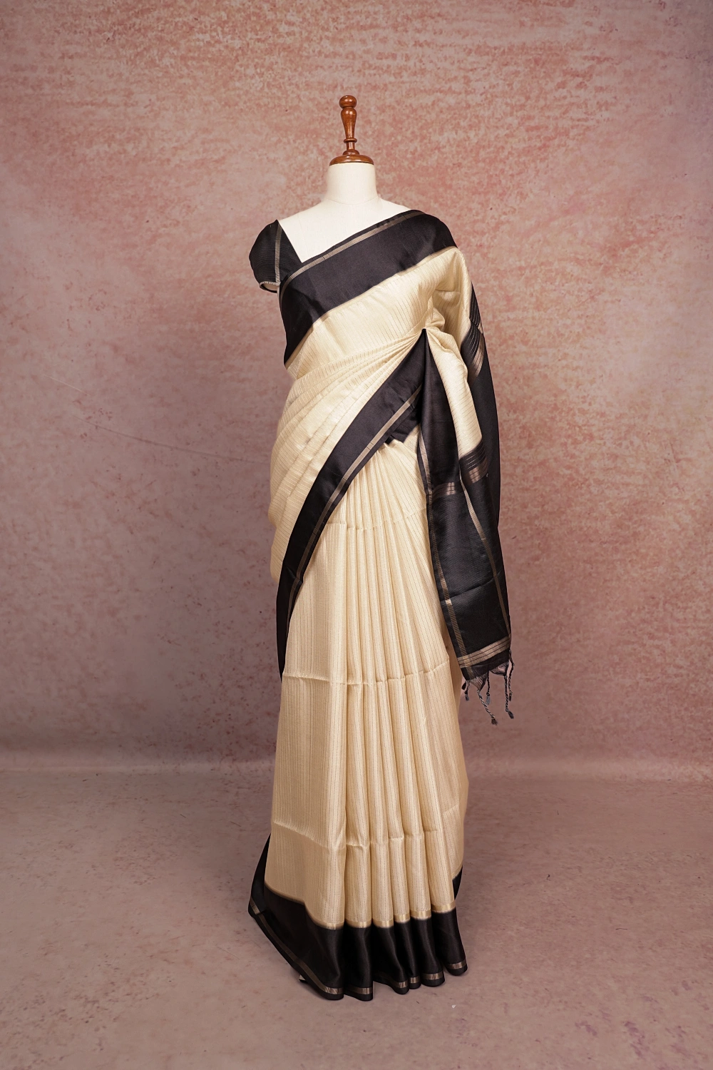 Cream Semi Jute Line Design Saree with Plain Border. Includes Unstitched Blouse