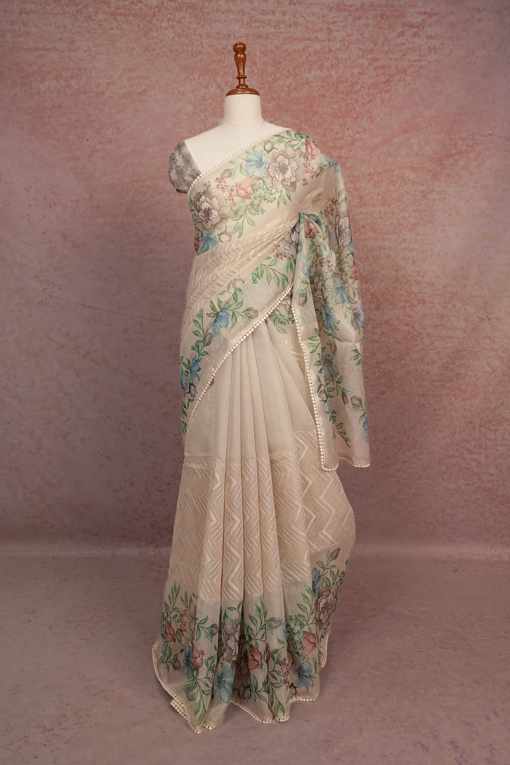Cream Semi Tissue Saree