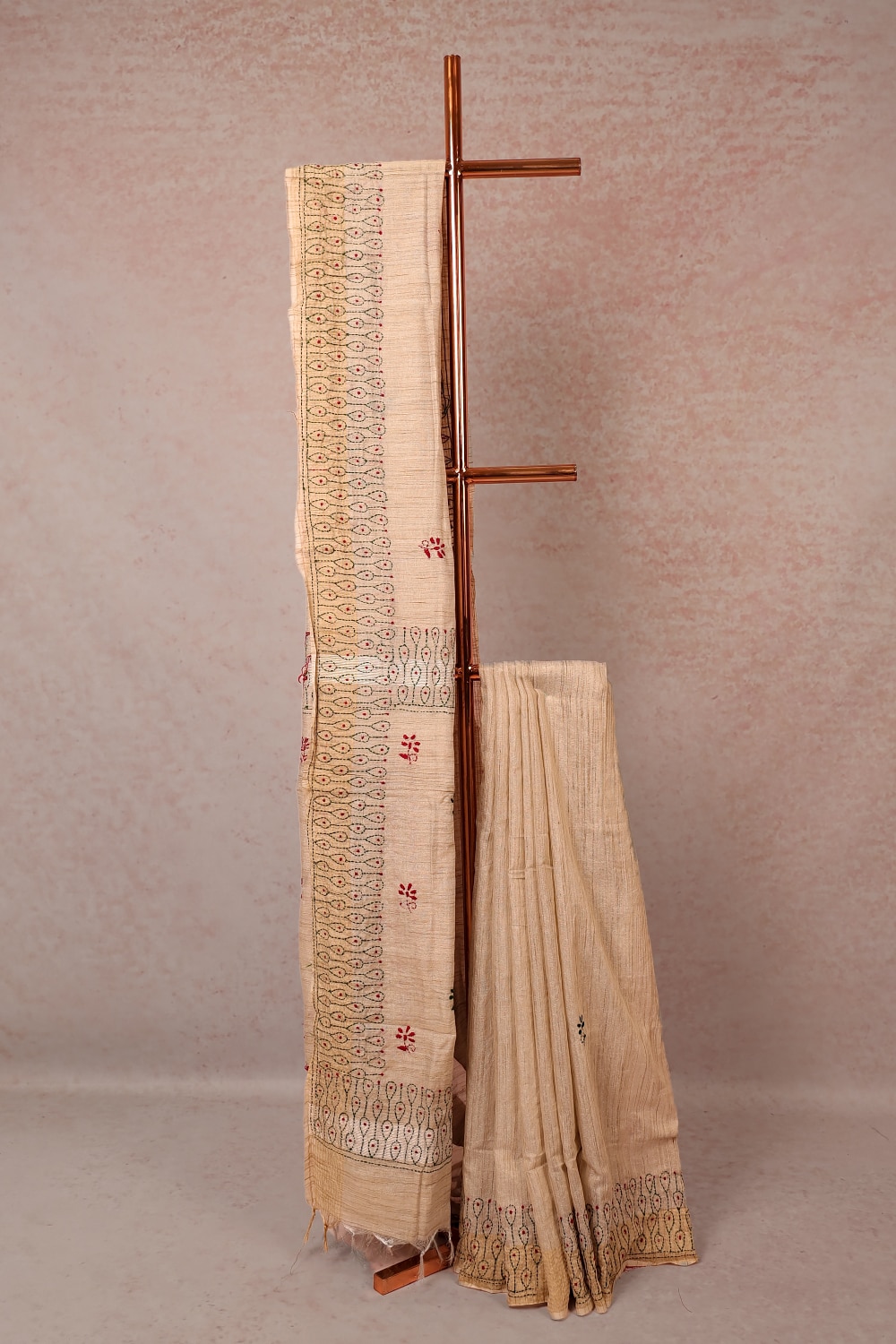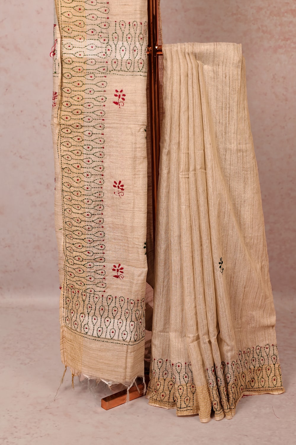 Cream Semi Tissue Butta Saree with Thread Border. Unstiched Blouse Piece